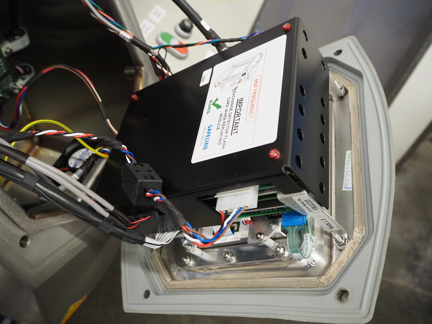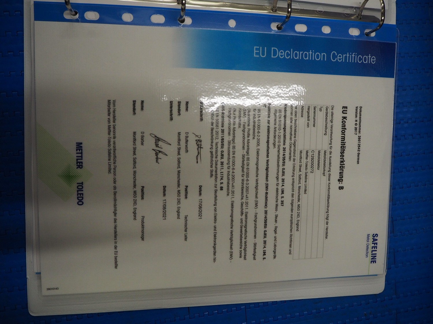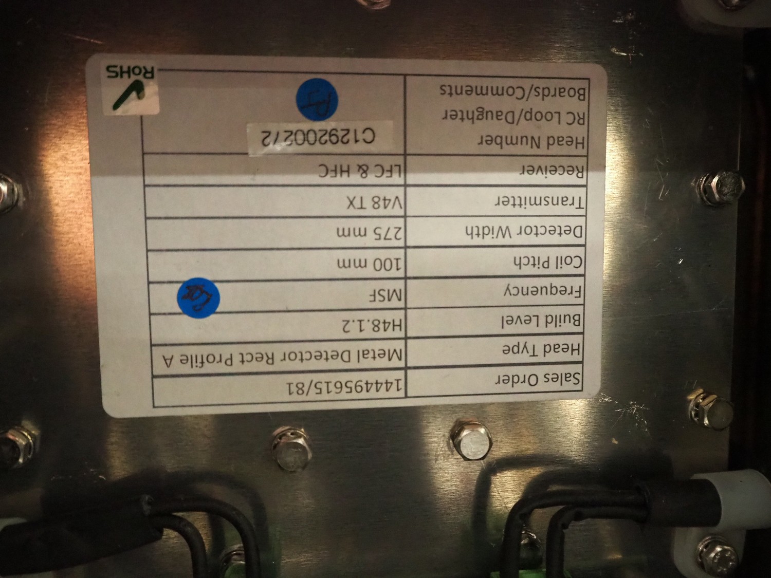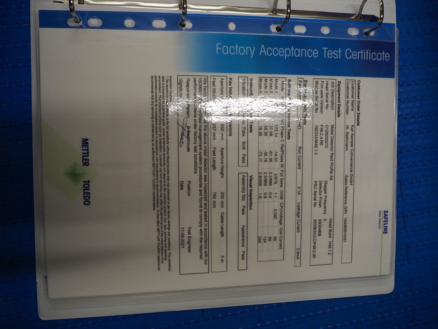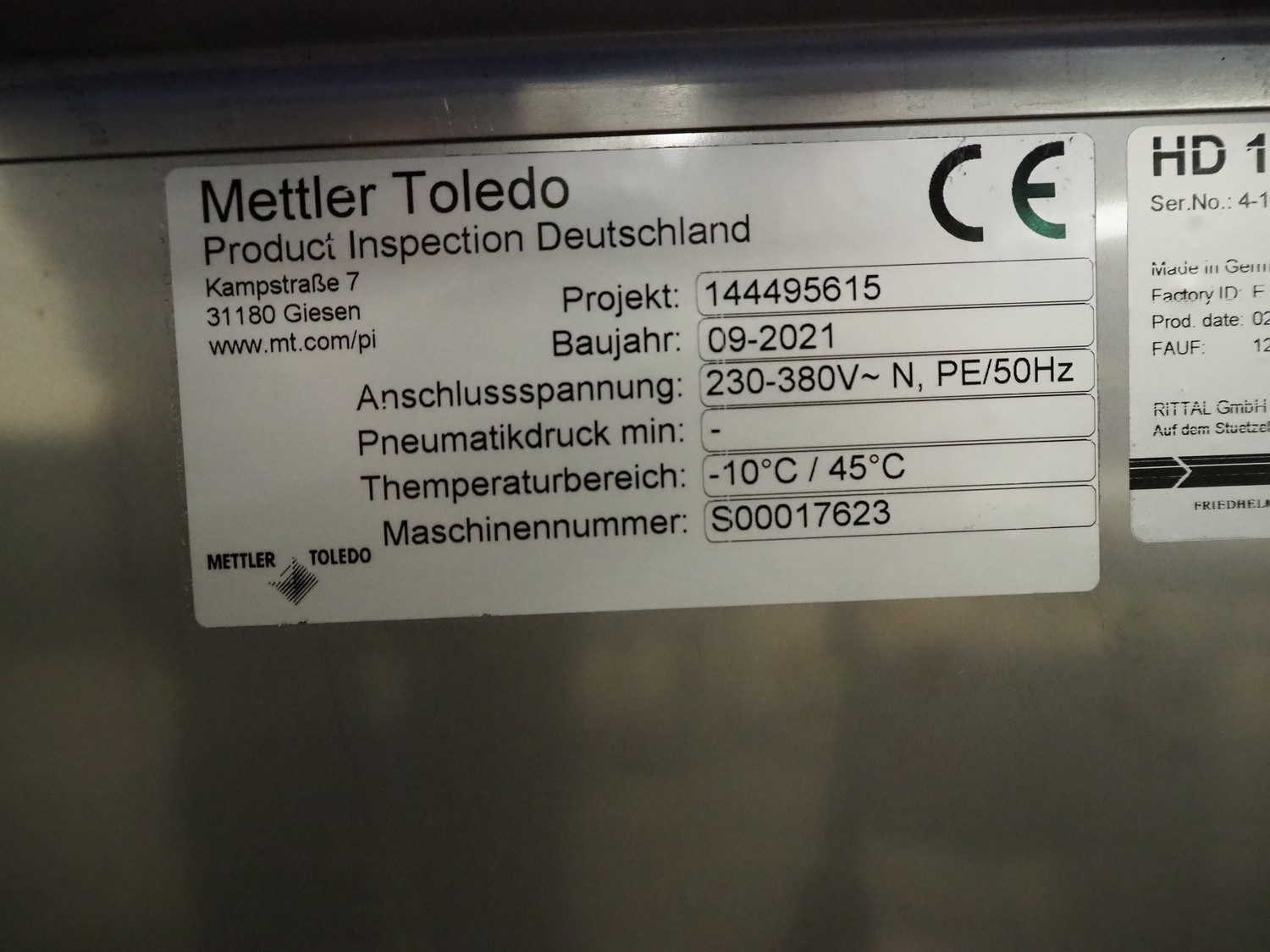 Mettler Toledo GmbH mobile metal detector, type: Metalldetektor, serial number: C129200272, year of construction: 09-2021, plastic belt, belt width: 500 mm, clearance: 550 mm x 170 mm, total dimensions: 1600 mm x 1200 mm x 1430 mm.