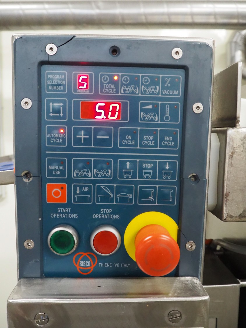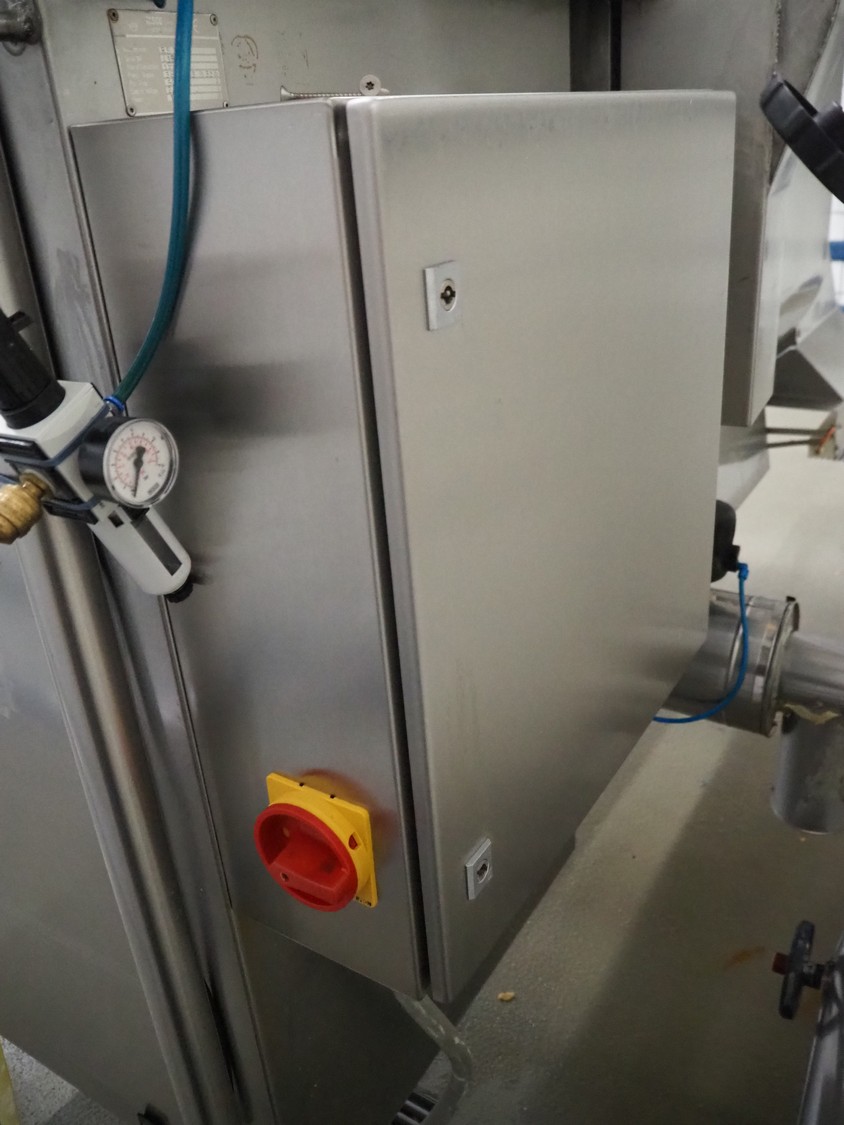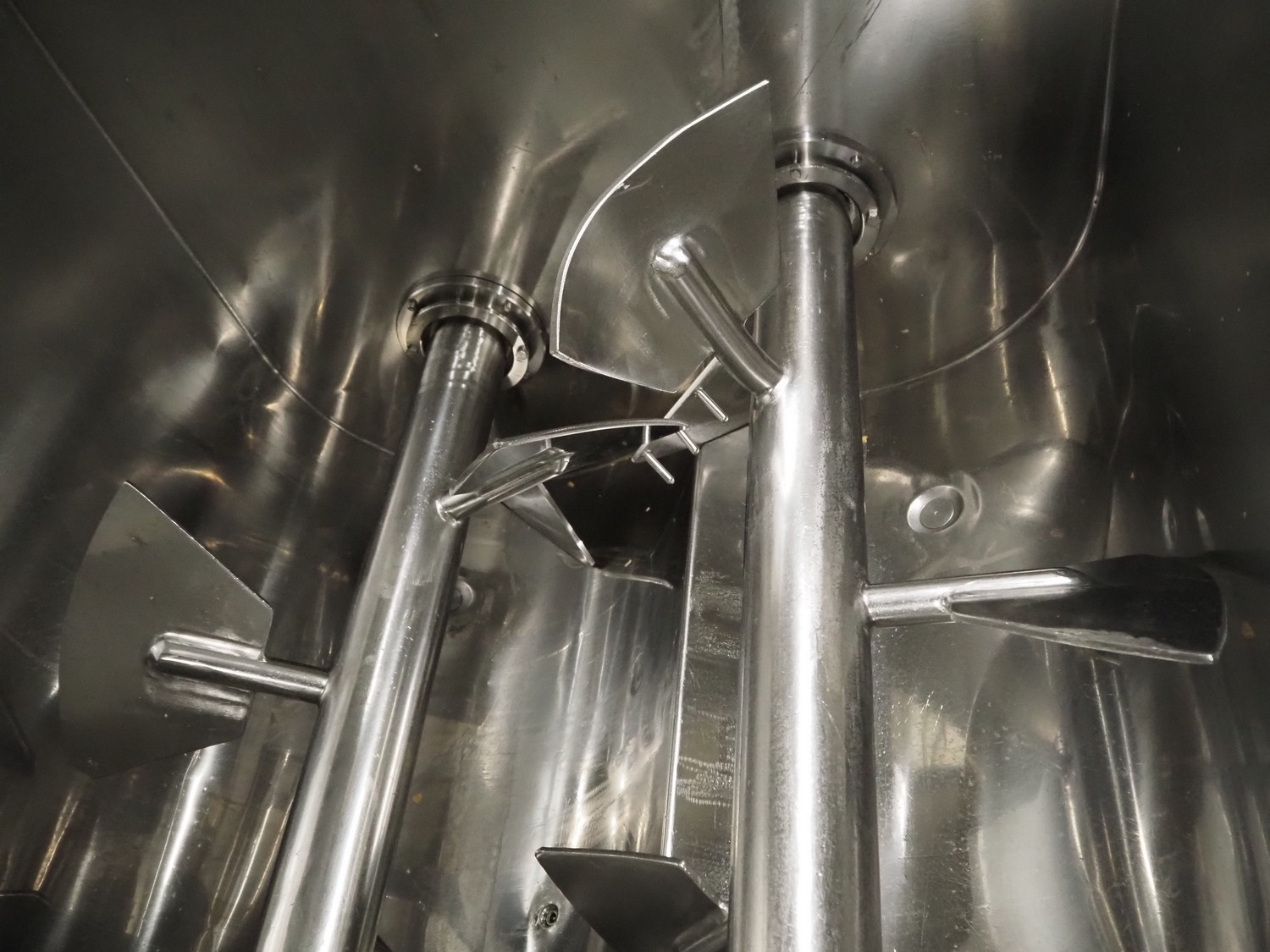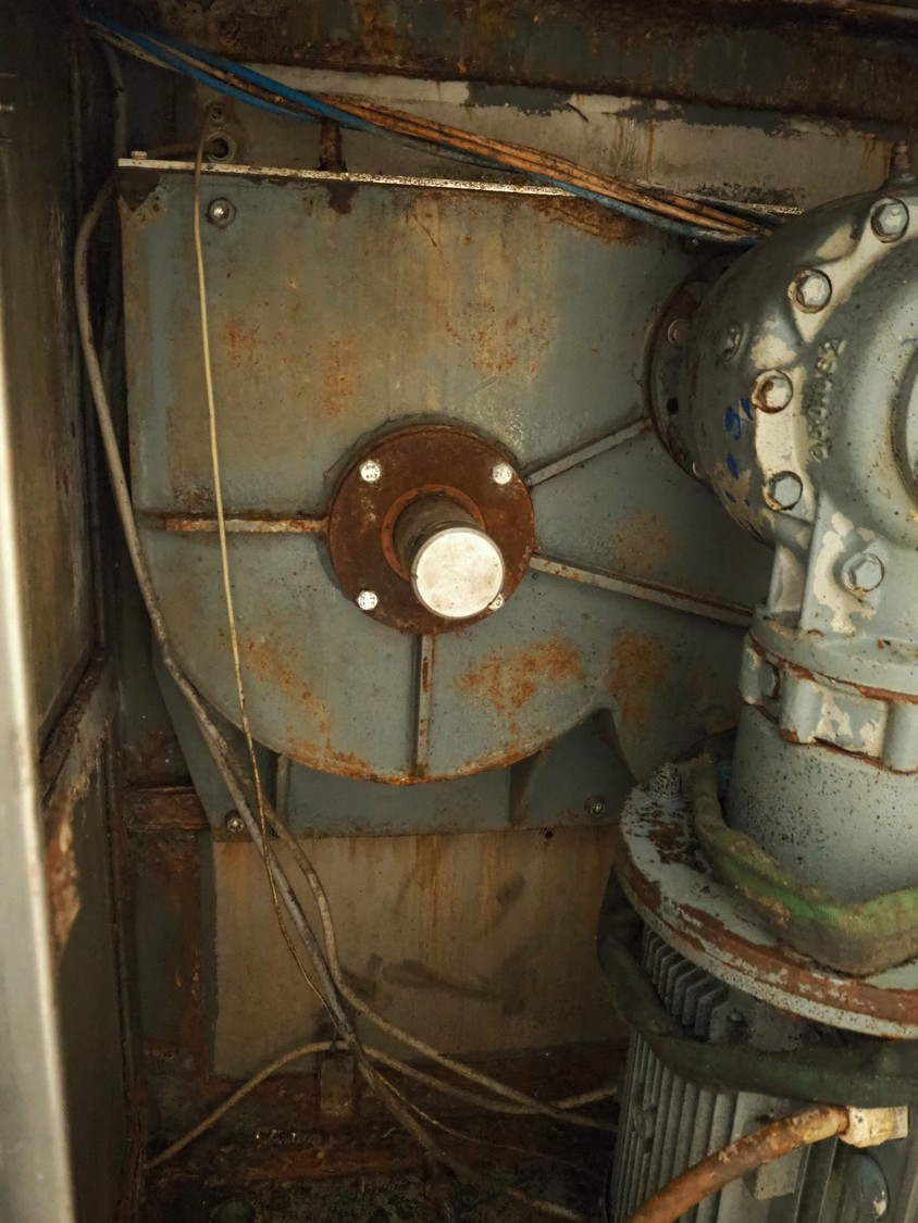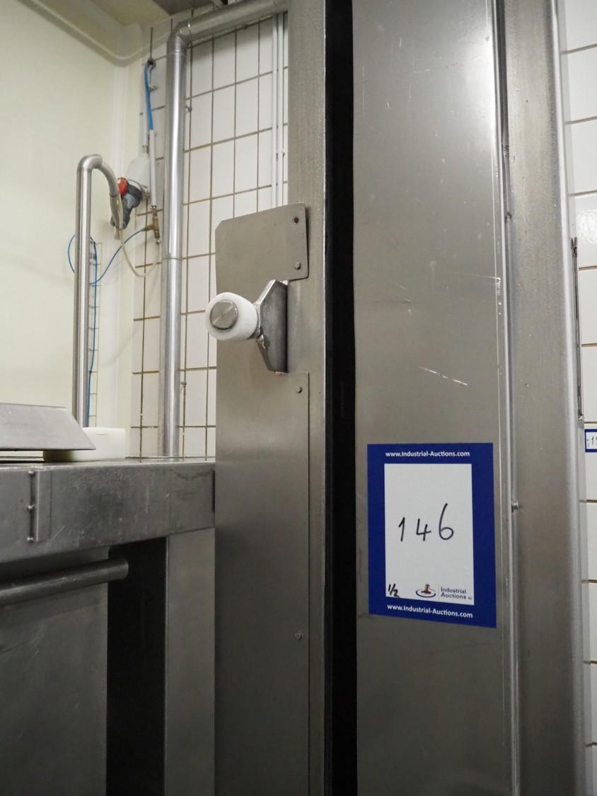 Risco double shaft paddle mixer with lifter for 200 liter meat bins, model: RS 1300, serial number: 1395007, year of construction: 1997, 380 V, 3 Ph, 50 Hz, 15 kW, steam injection, volume: 1300 liter, lifting height: 1900 mm, dimensions lifter: 1200 mm x 650 mm x 2750 mm, dimensions mixer: 3100 mm x 1100 mm x 1800 mm.