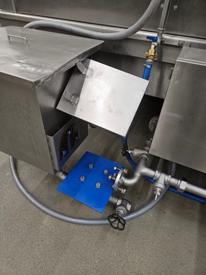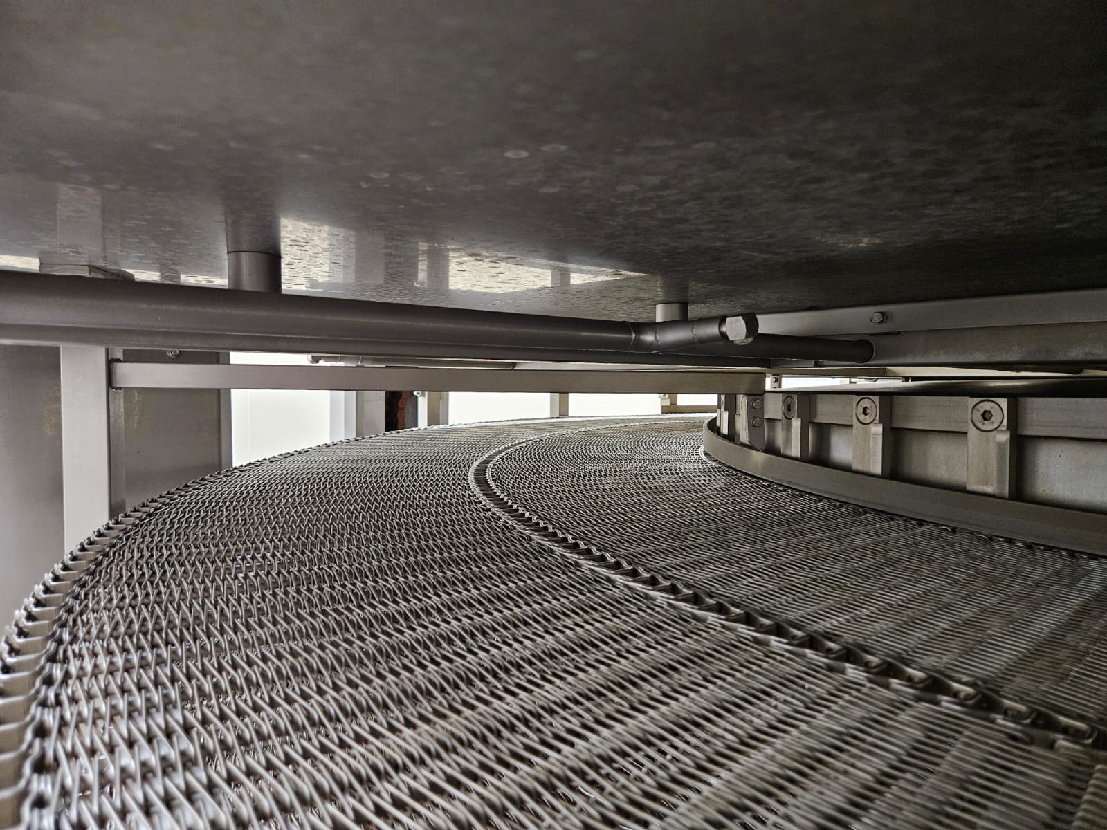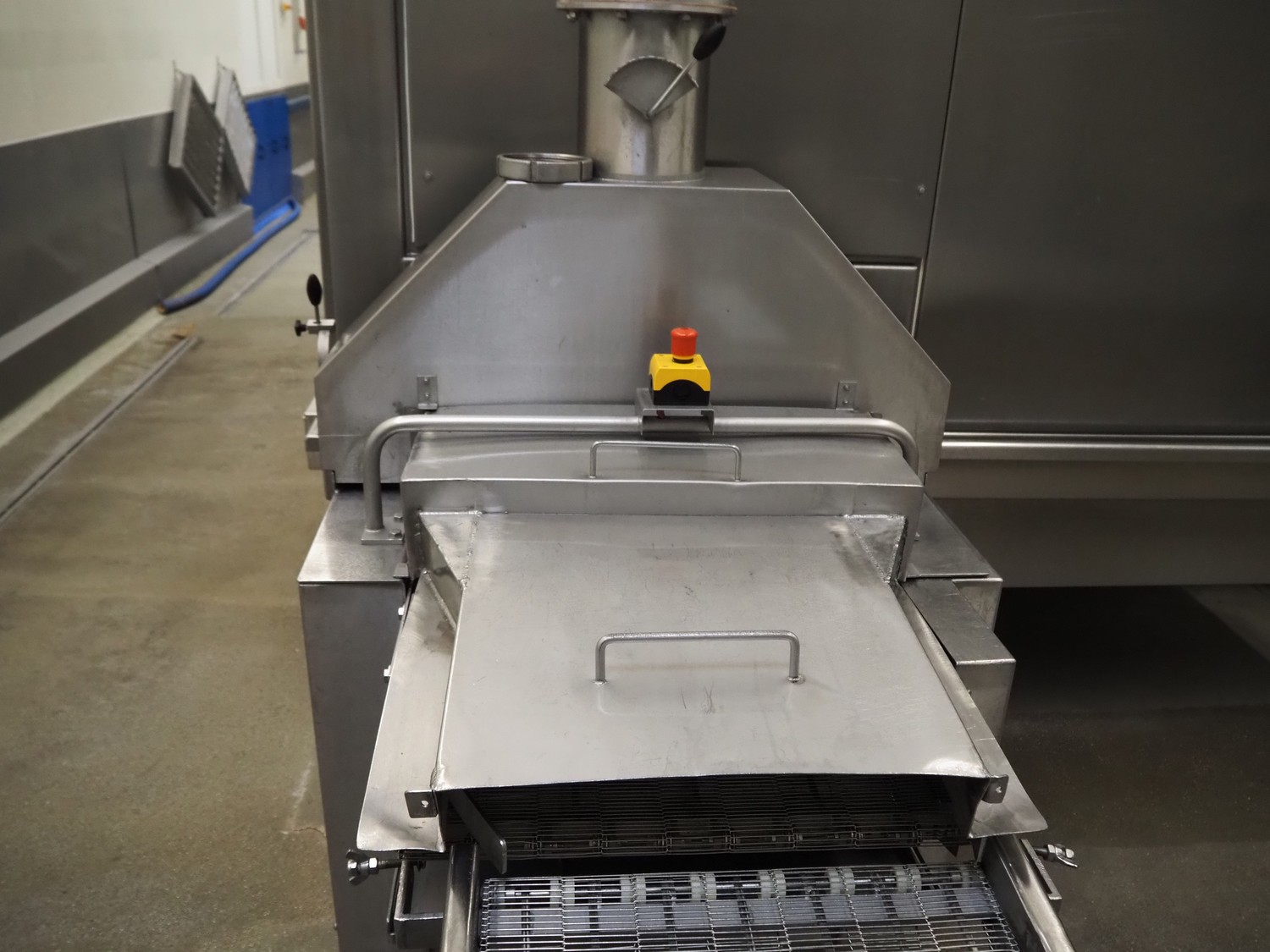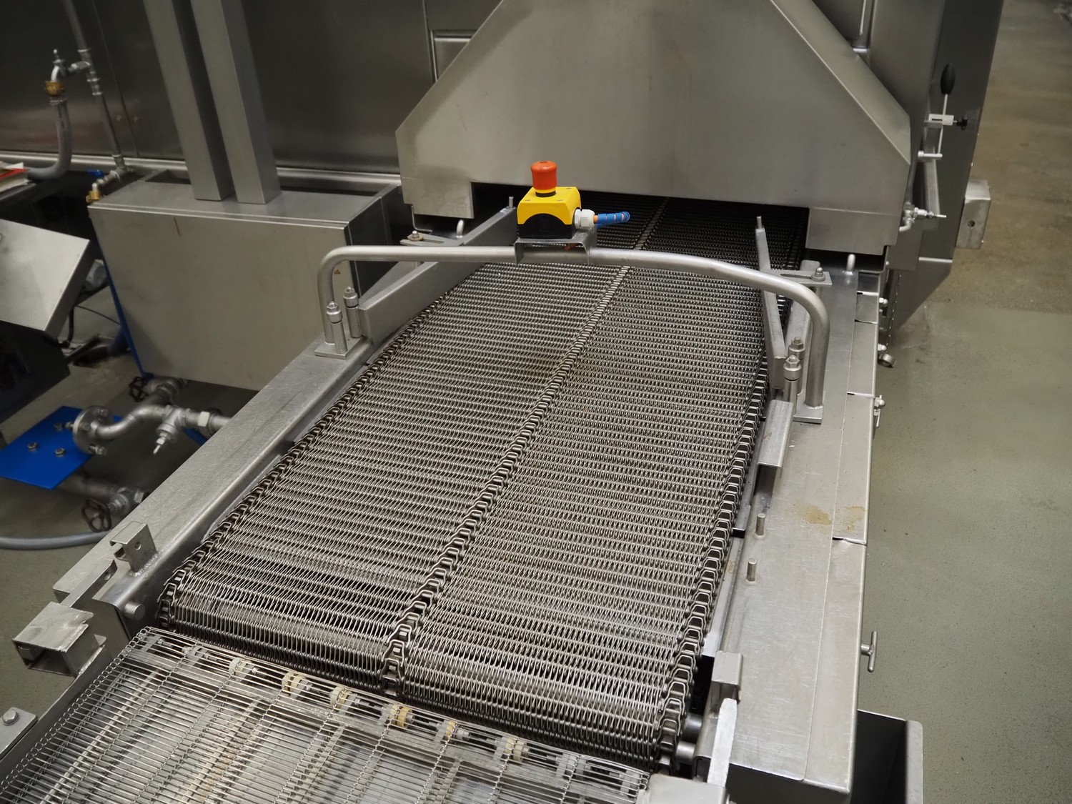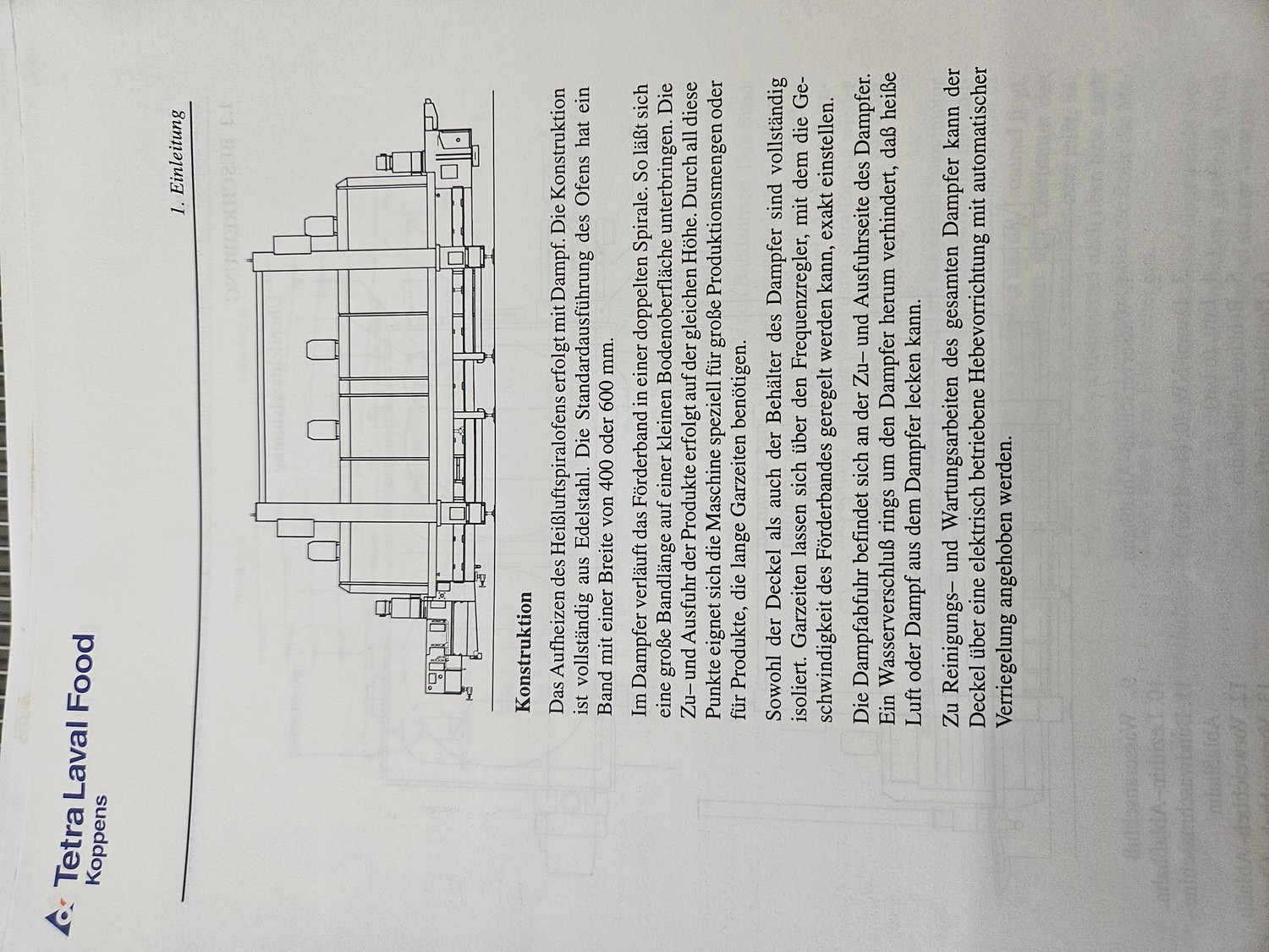 Koppens Machinefabriek B.V. steam heated twin drum spiral oven, type: STS 600/10-100, machine number: STS 600/10-100-46, 380 V, 3 Ph, 50 Hz, 56.73 A, 26.81 kW, weight: 14750 kg, 2 x 5 floors, total belt width: 660 mm, usable belt width: 600 mm, s/s mesh outfeed belt, belt width: 600 mm, total dimensions spiral oven: 9250 mm x 3900 mm x 4300 mm, dimensions switch cabinet: 2000 mm x 400 mm x 2000 mm. Covers spiral oven damaged at lifting points.