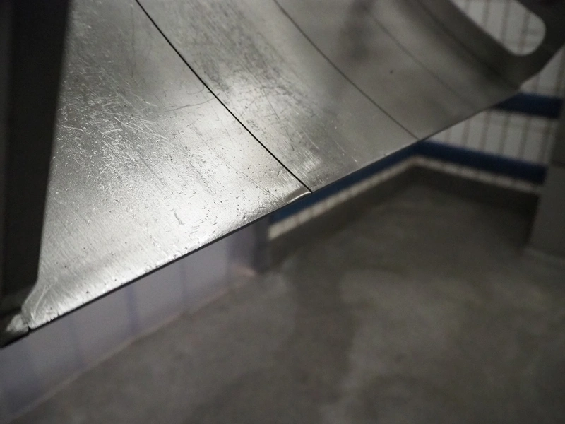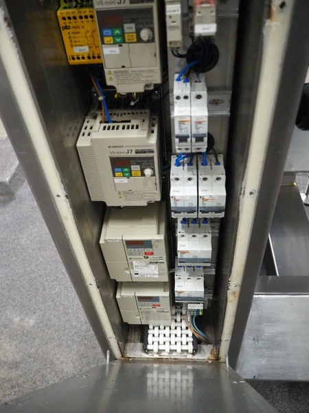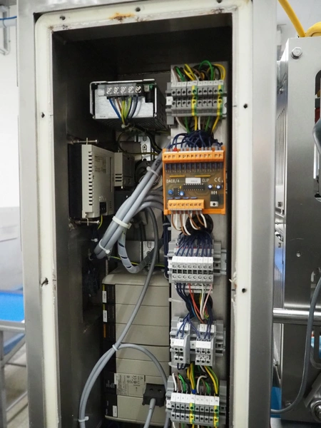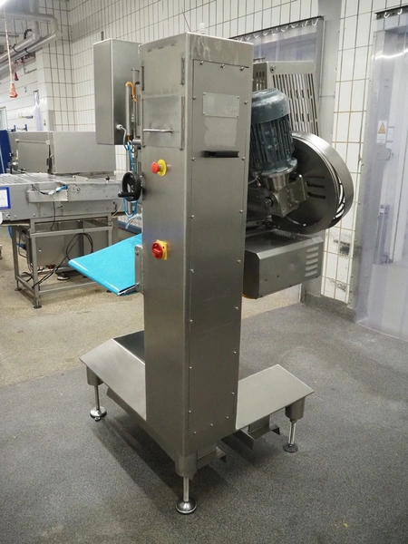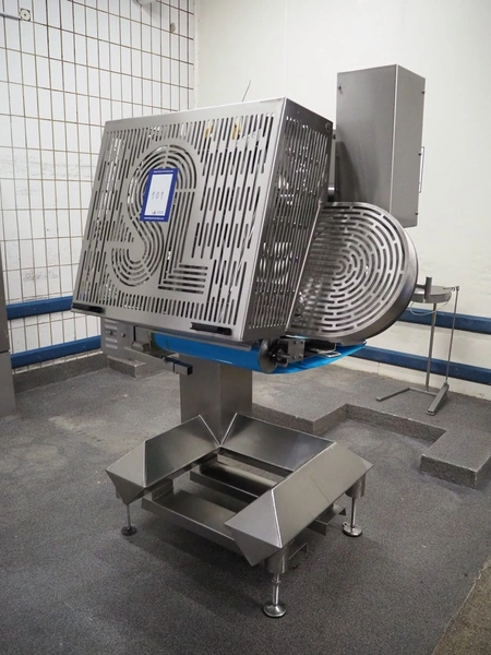 Selo slicer, type: SL slicer, number: 018, year of construction: 2004, 400 V, 3 Ph, 50 Hz, 4 kW, working width: 600 mm, plastic belt, belt width: 560 mm, total dimensions: 1600 mm x 1350 mm x 2150 mm.