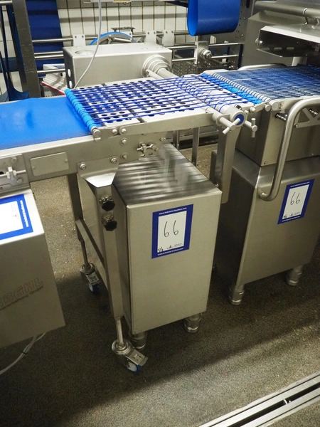 - Weber Maschinenbau GmbH product scanner, type: CPS100, number: CPS01001-10005, year of construction: 2016, weight: 720 kg, plastic belt, belt width: 520 mm, total dimensions: 1500 mm x 950 mm x 1950 mm.