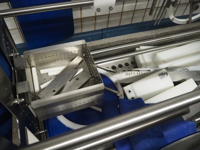 - s/s tool trolley with various parts, amongst other knifes, grippers and belts. - Complete revision in 2023.