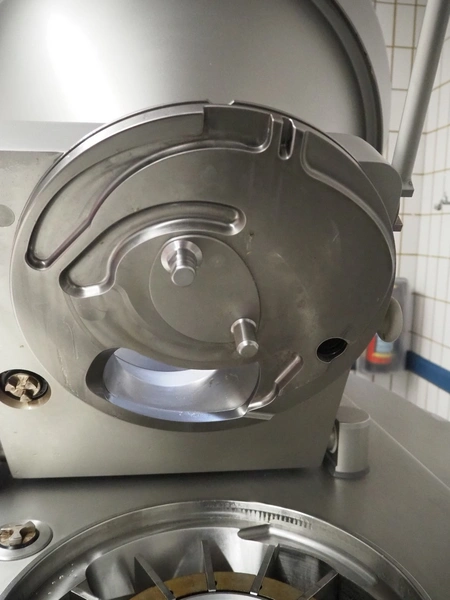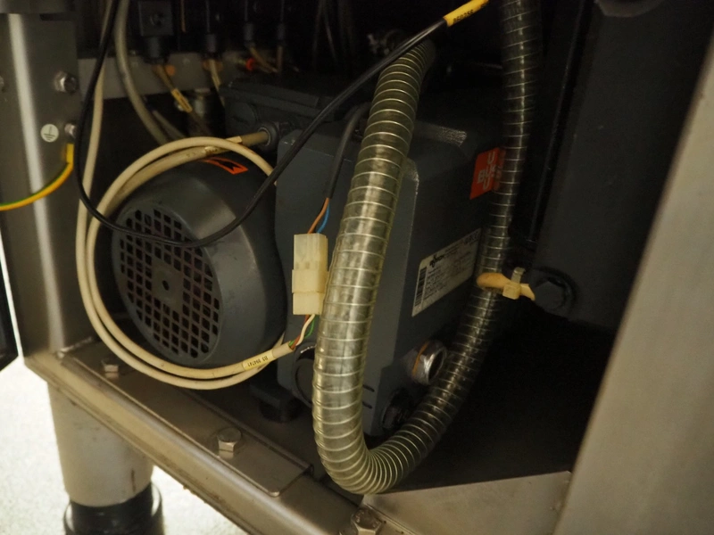 Handtmann vacuum filling machine with lifter for 200 liter meat bins, type: VF630, number: 28079, year of construction: 2010, 400 V, 50 Hz, 18.0 A, 12.5 kW, Busch vacuum pump, type: KB 0040 D IZO, serial number: DEM122060546, year of construction: 2002, capacity: 48 m³ per hour, dimensions: 2000 mm x 1400 mm x 2200 mm. Complete overhauled by Handtmann in 2022.
