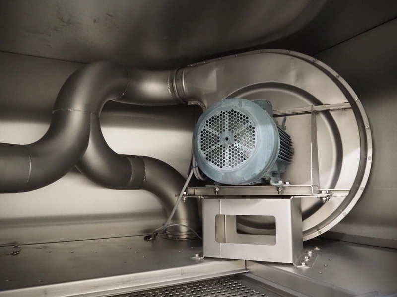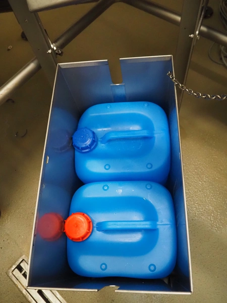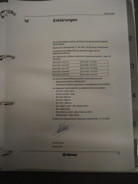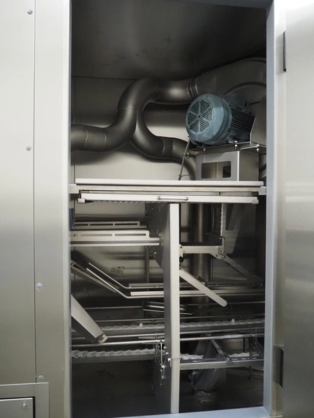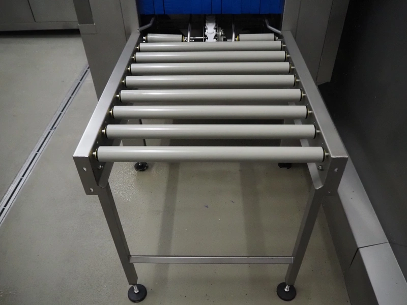 Elpress crate washing and drying machine with infeed and outfeed roller conveyors, type: 83101150, serial number: 43729, year of construction: 2023-8, 400 V, 3 Ph, 50 Hz, 32 A, 12 kW, maximum temperature: 70°C, plastic rollers, roller width: 700 mm, clearance: 750 mm x 470 mm, dimensions crate washer: 2500 mm x 1000 mm x 1650 mm, dimensions crate dryer: 1950 mm x 1450 mm x 2800 mm.