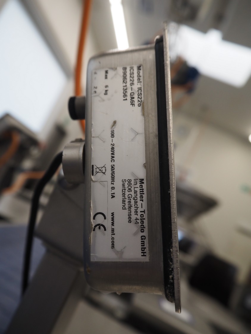 2 Mettler Toledo GmbH weighing scales, model: (2x) ICS226, 100-40 V, 50/60 Hz, 0.1 A, maximum weight: 6 kg, d= 2 g, dimensions: (2x) 350 mm x 320 mm x 400 mm.