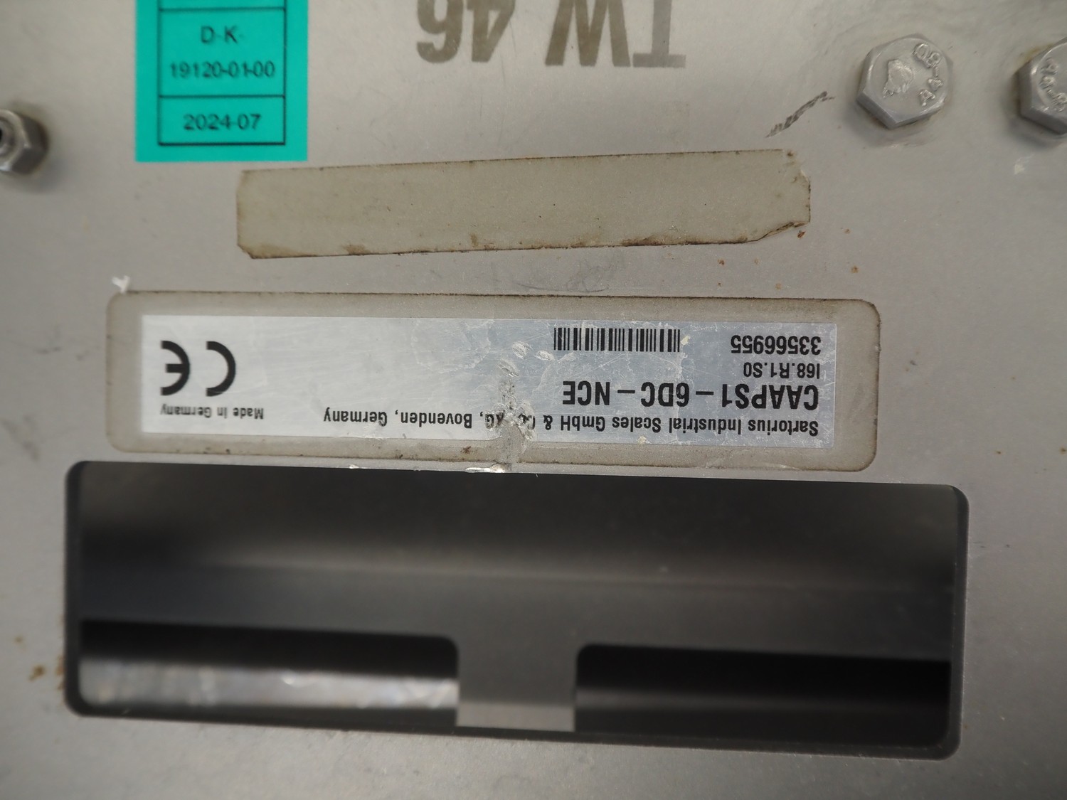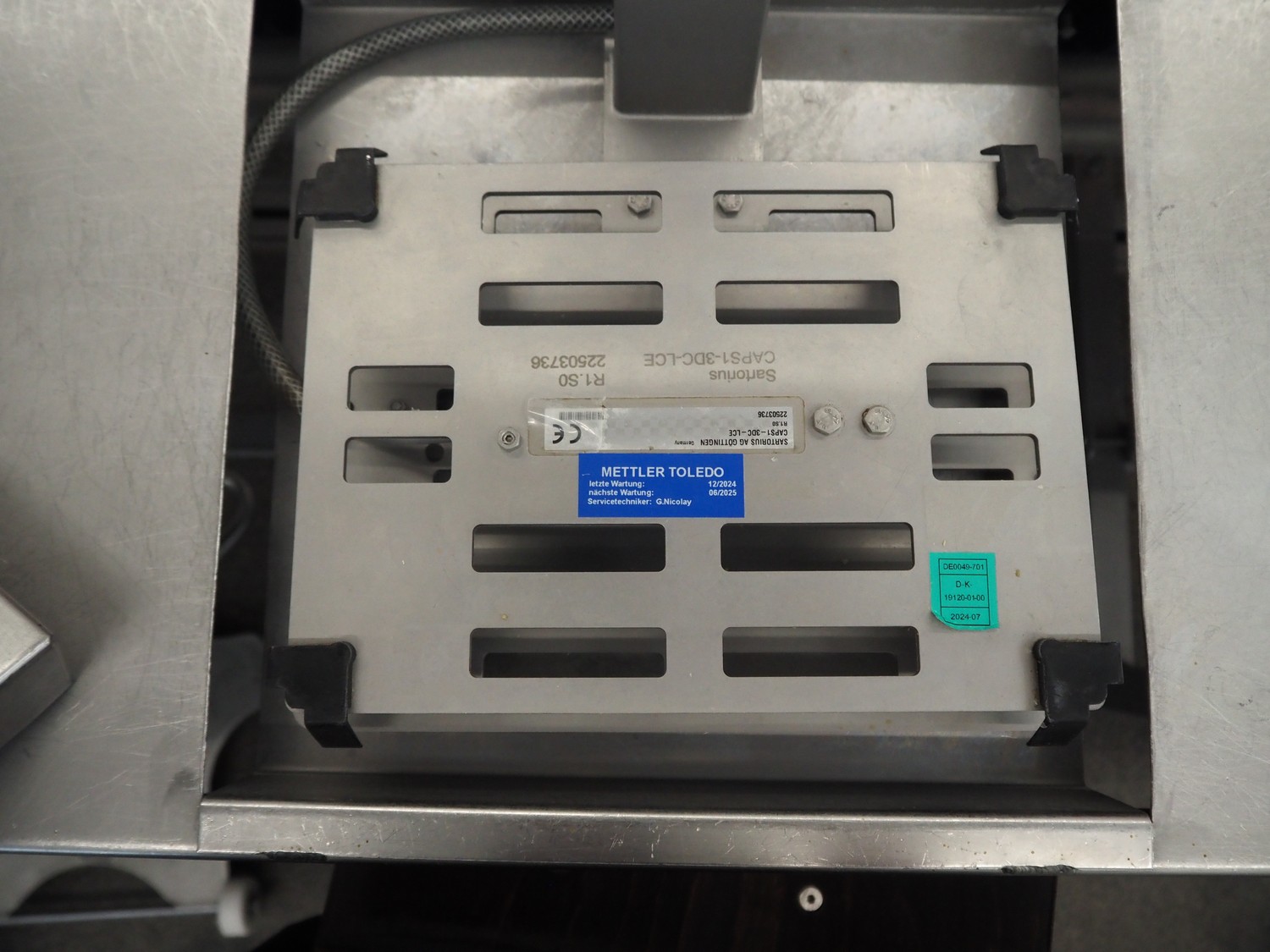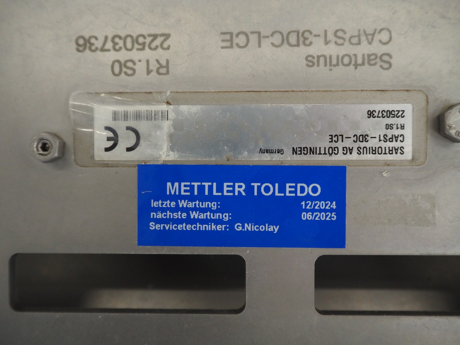 2 Sartorius weighing scales, (1x) type: CAPS1-3DC-LCE, maximum weight: 6 kg, minimum weight: 20 g, e=d= 1 g and (1x) type: CAAPS1-6DC-NCE, dimensions: (2x) 320 mm x 320 mm x 500 mm.
