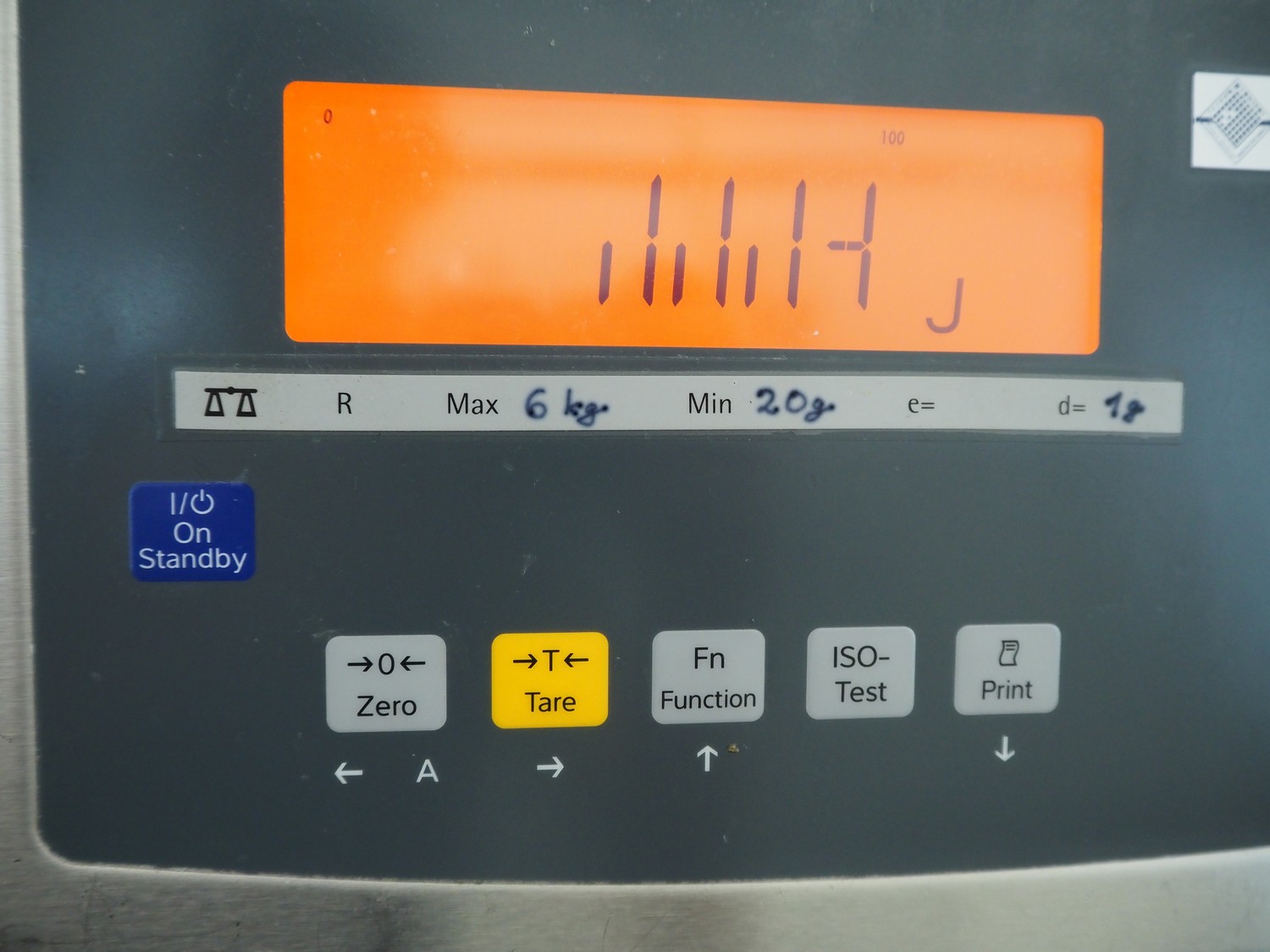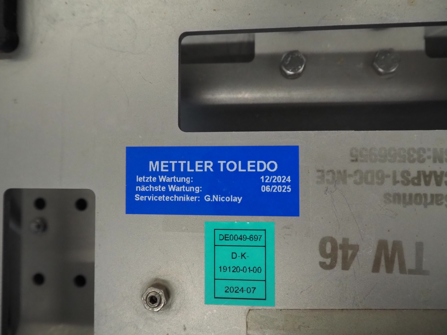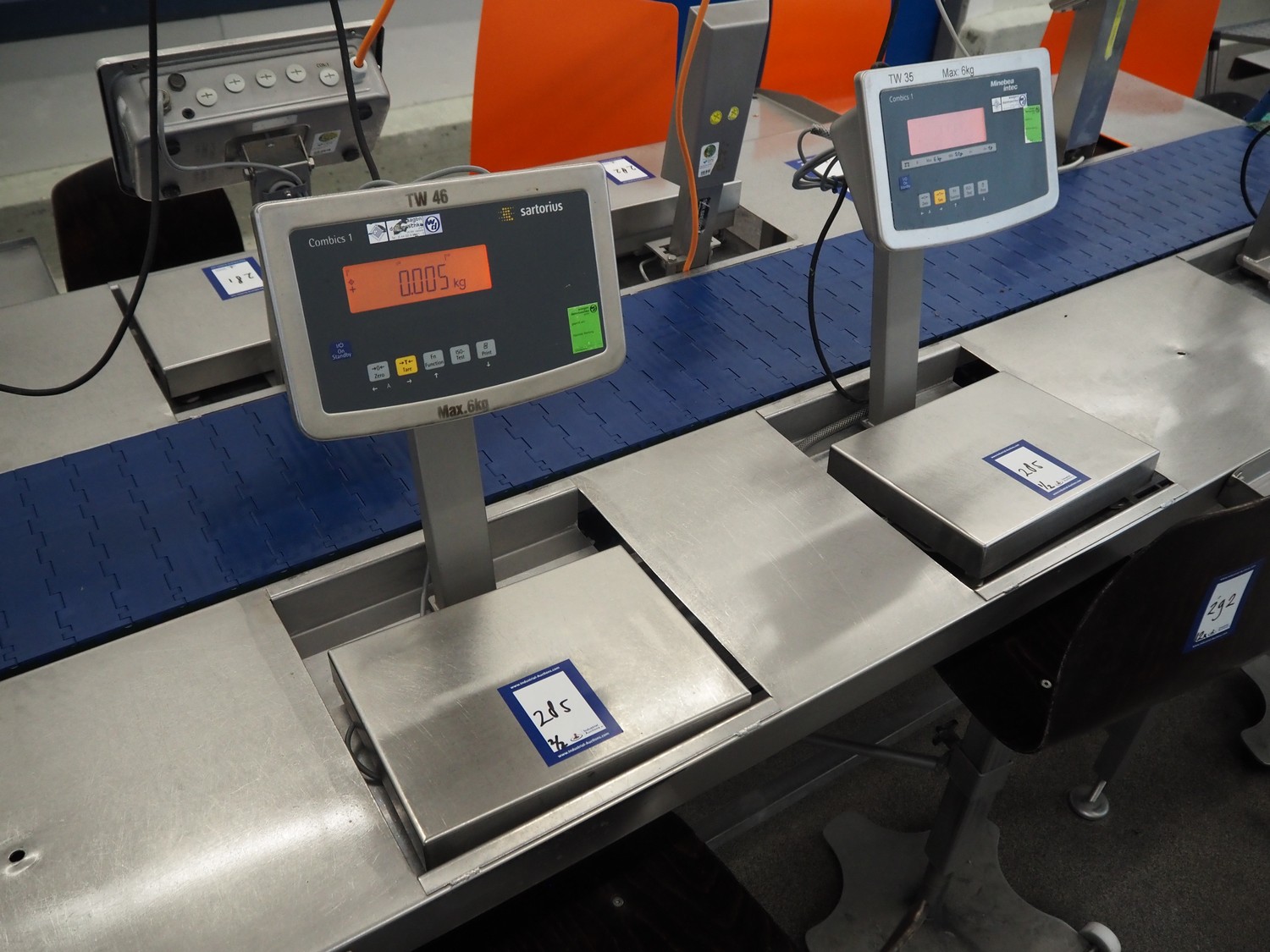 2 Sartorius weighing scales, (1x) type: CAPS1-3DC-LCE, maximum weight: 6 kg, minimum weight: 20 g, e=d= 1 g and (1x) type: CAAPS1-6DC-NCE, dimensions: (2x) 320 mm x 320 mm x 500 mm.