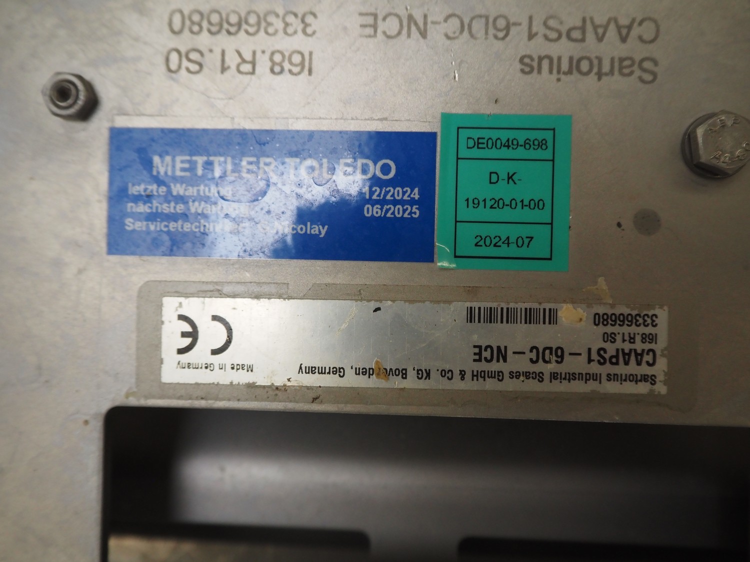 Sartorius weighing scale, type: CAAPS1-6DC-NCE, maximum weight: 3/6 kg, d=1/2 g, dimensions: 320 mm x 320 mm x 500 mm.