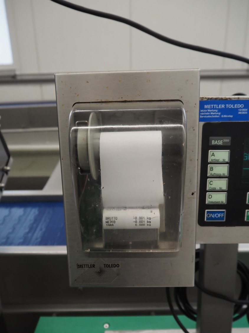 Mettler Toledo GmbH weighing scale with label printer, type: ID7, serial number: 2414683, 100-240 V, 50/60 Hz, 480-240 mA, dimensions: 420 mm x 470 mm x 500 mm.
