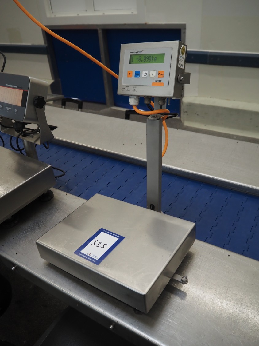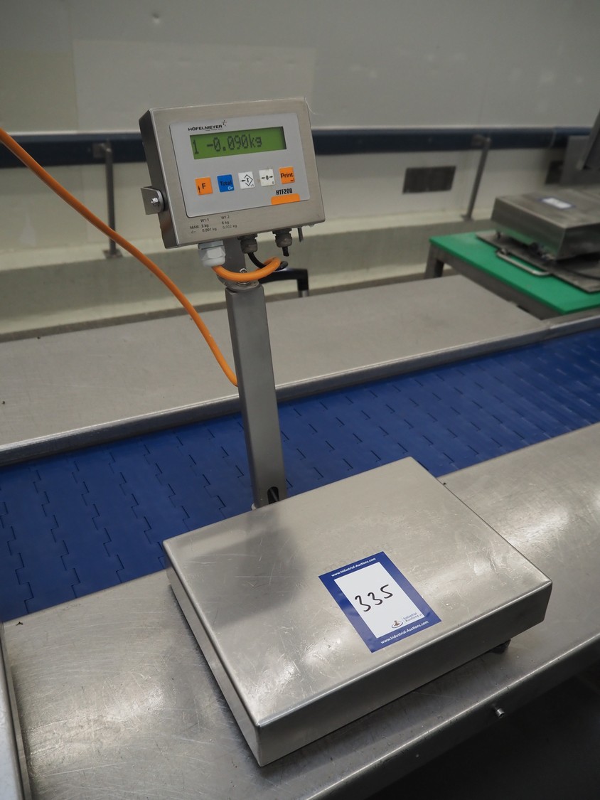 Hӧfelmeyer weighing scale, modell: HIK6DC-E-C39K-HTF200, serial number: 6111844, maximum: 3 / 6 kg, d - 0.001 kg / 0.002 kg, dimensions scale: 320 mm x 240 mm, total dimensions: 320 mm x 350 mm x 520 mm.