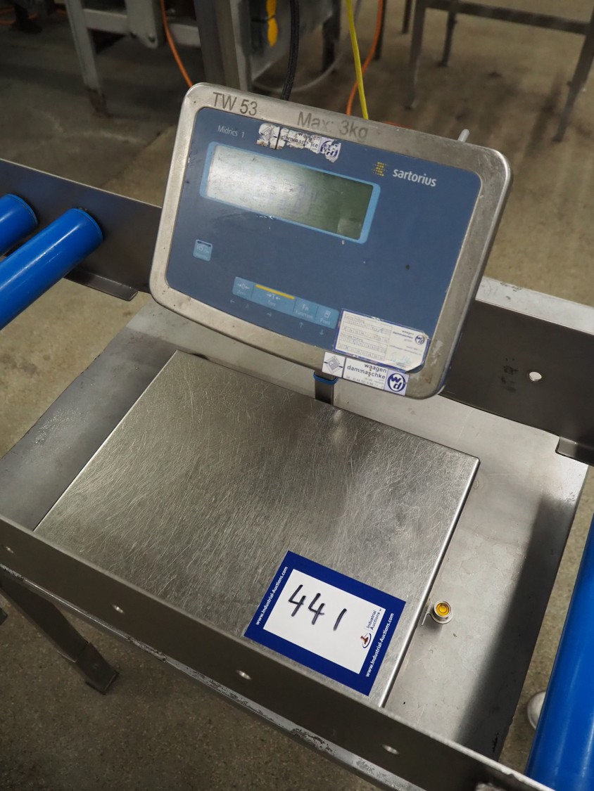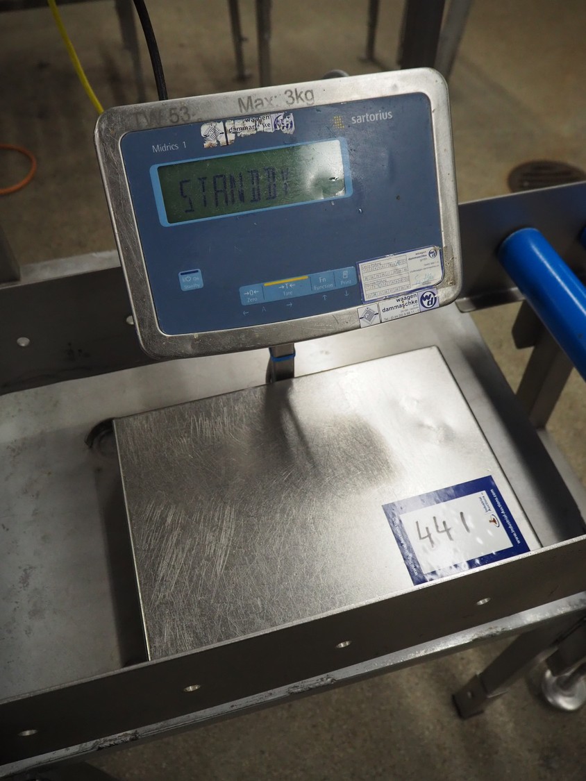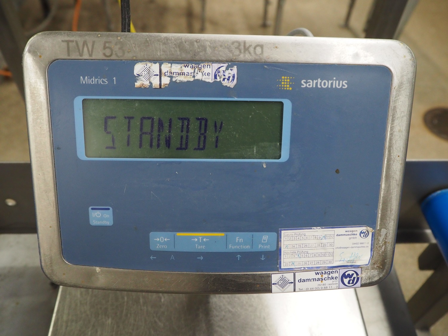 Sartorius weighing scale, scale type: CAAPS1-3DC-BCE, number: 27407895, scale dimensions: 320 mm x 240 mm, total dimensions: 320 mm x 300 mm x 350 mm.