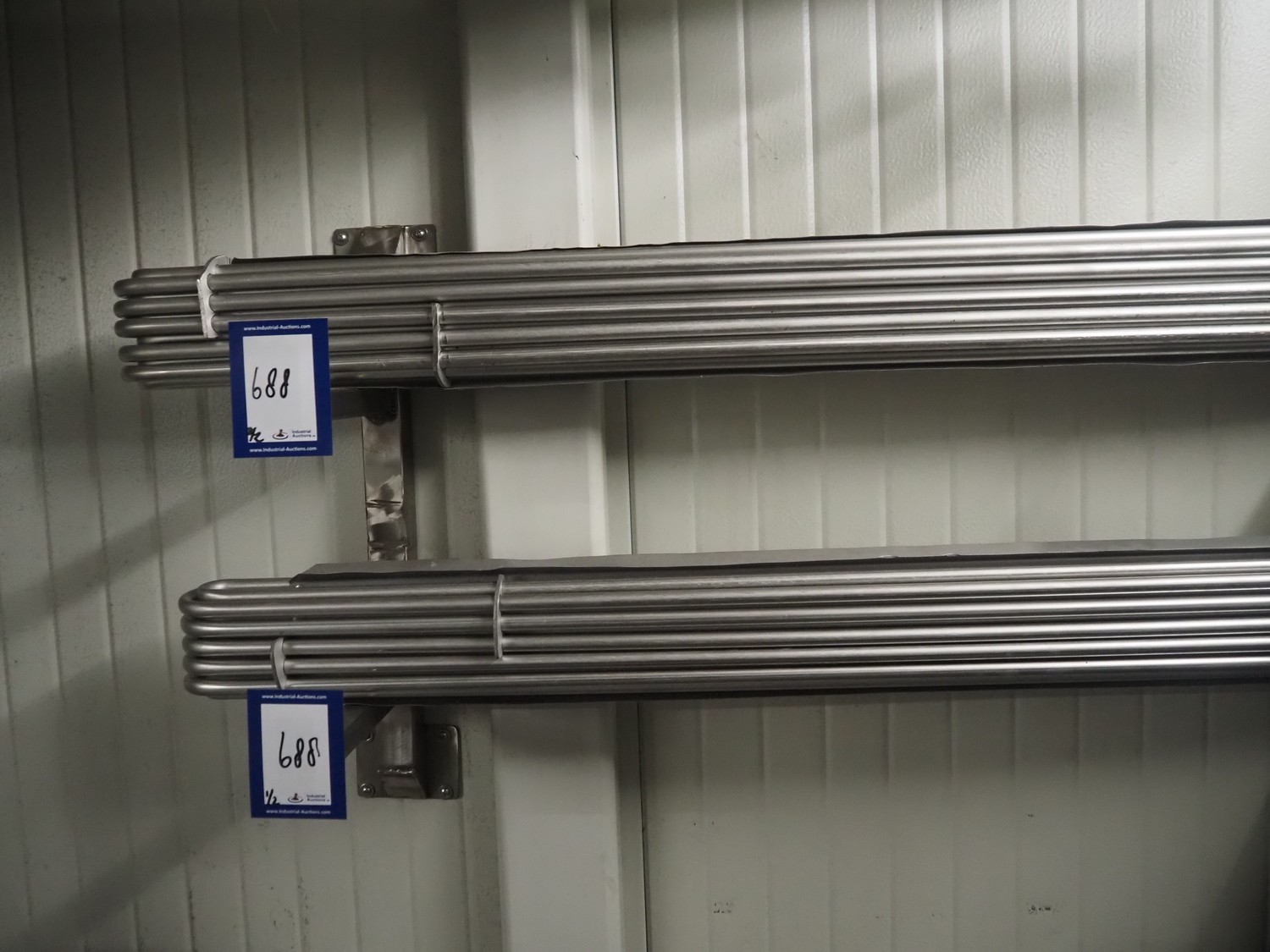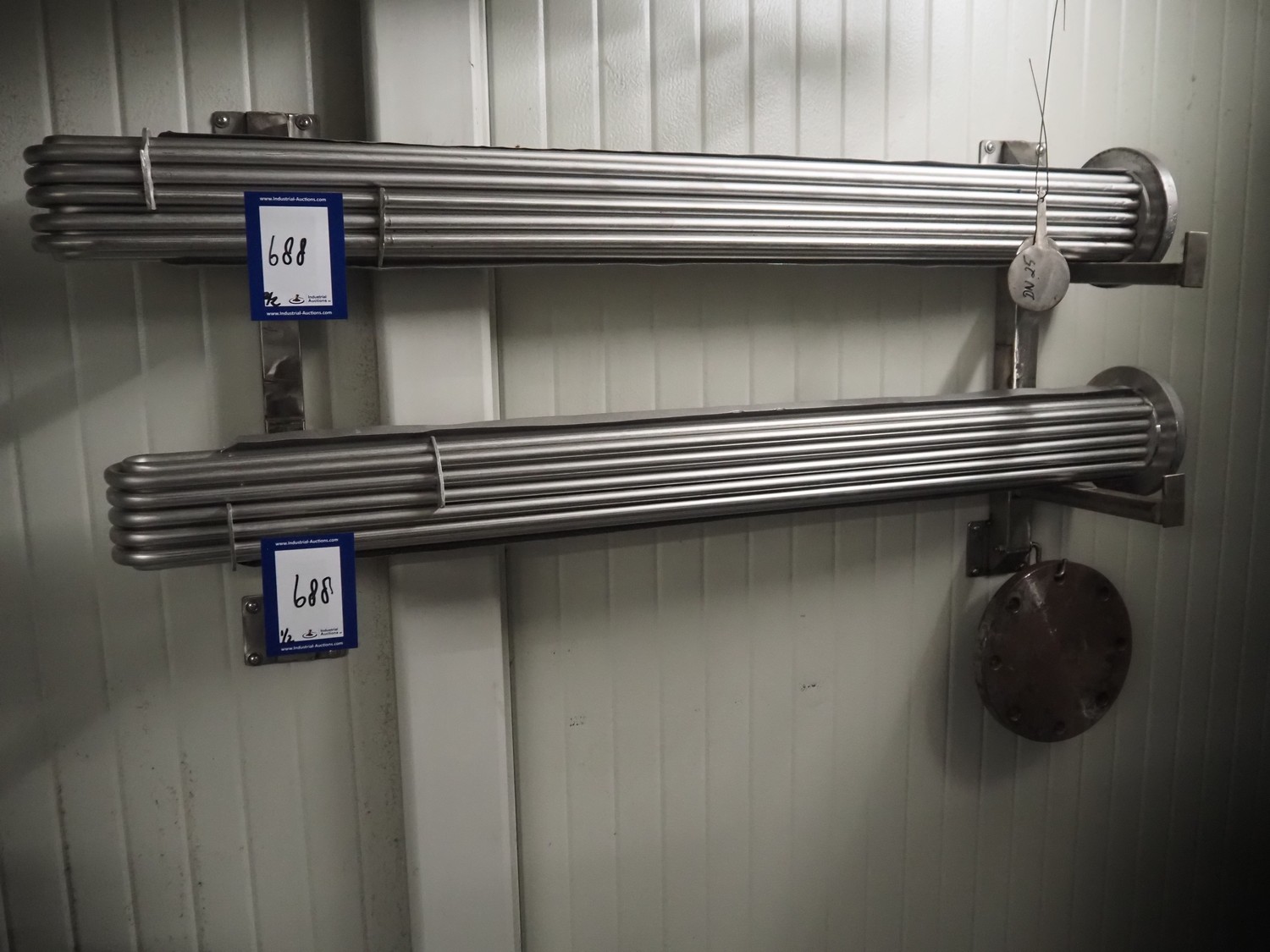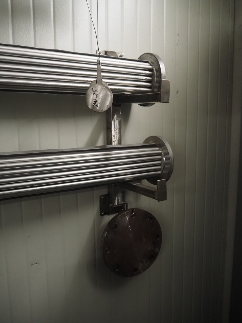 2 s/s heat exchanger tubes, dimensions: (2x) 1250 mm x 180 mm x 180 mm.