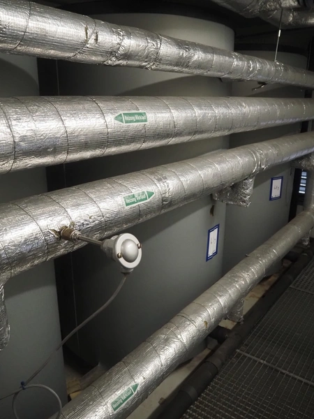 3 isolated tanks for warm water, dimensions: (3x) Ø 1100 mm x 1900 mm.