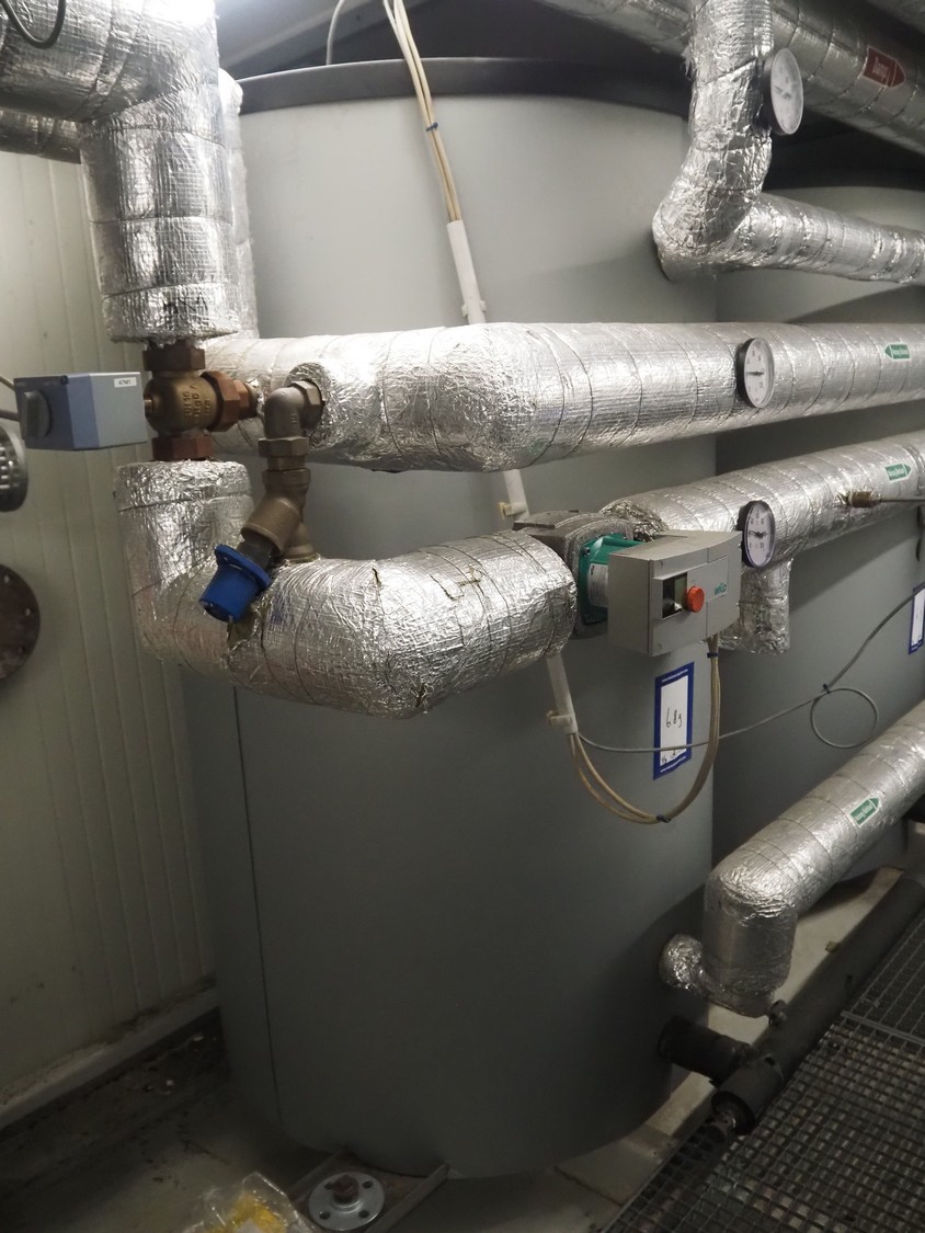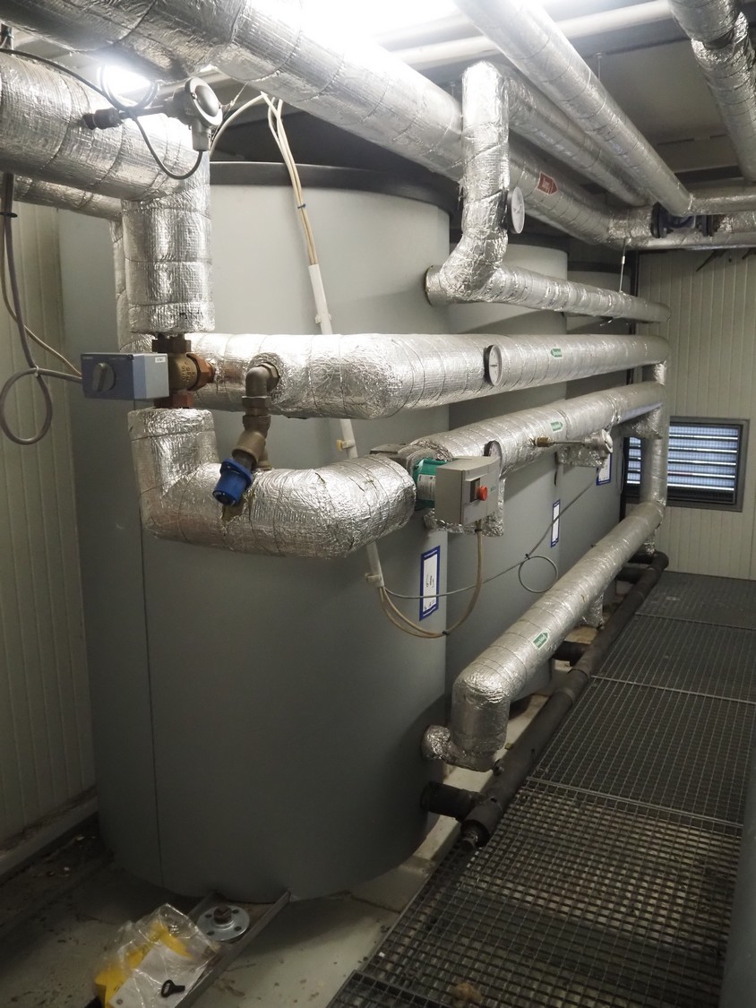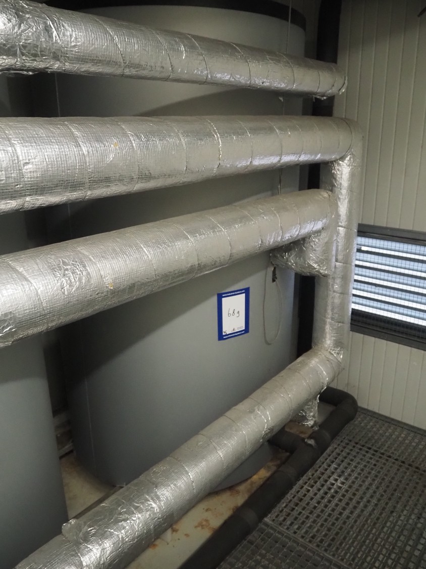 3 isolated tanks for warm water, dimensions: (3x) Ø 1100 mm x 1900 mm.