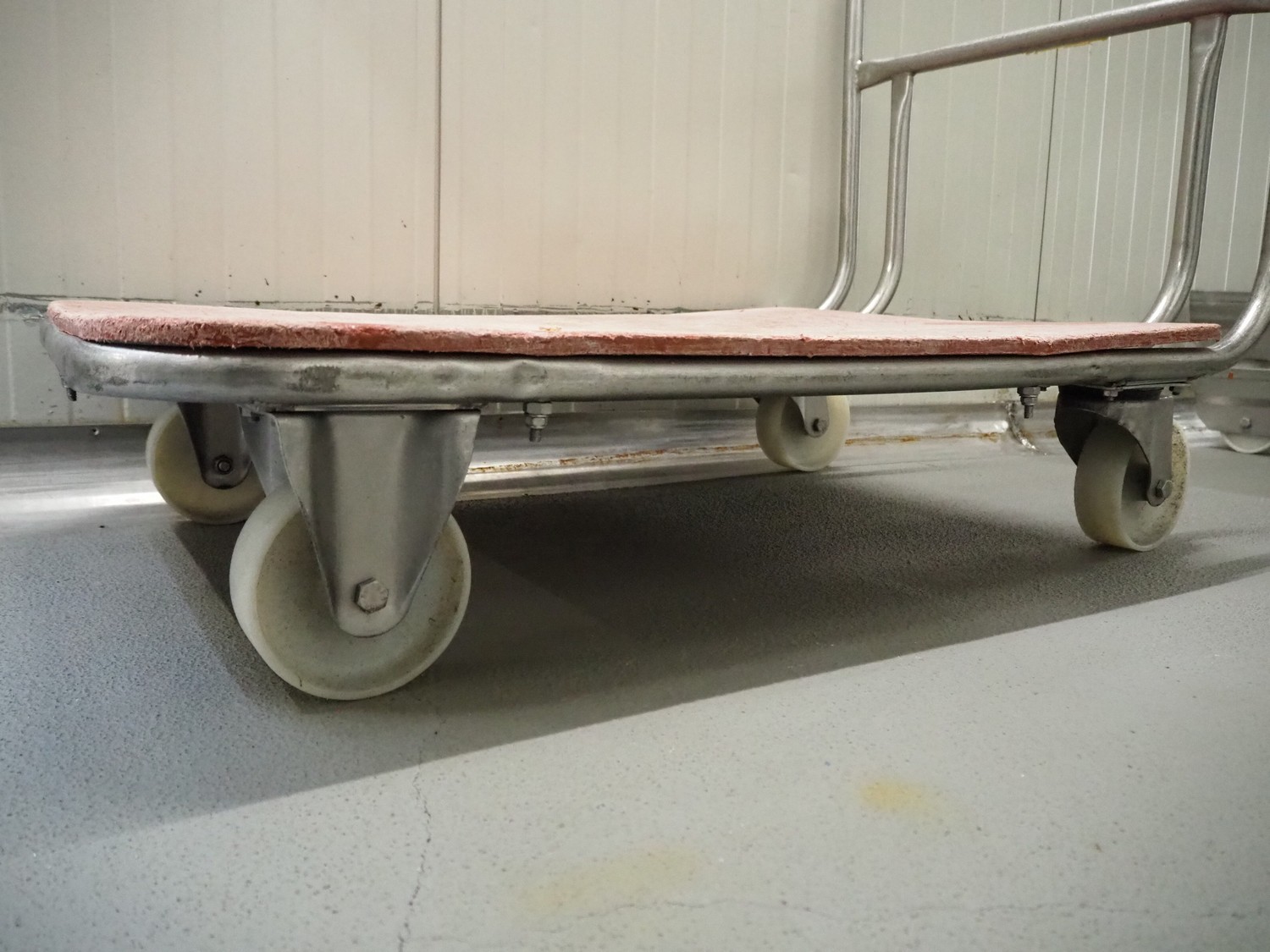 S/s trolley, dimensions: 1250 mm x 700 mm x 950 mm.