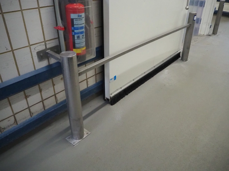 S/s protection frame, dimensions: 2450 mm x 120 mm x 800 mm, s/s protection pole, diameter: 120 mm, height: 800 mm.