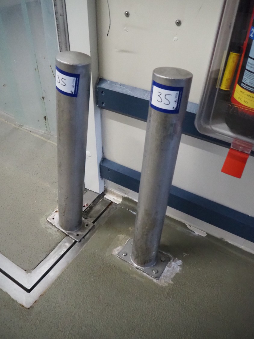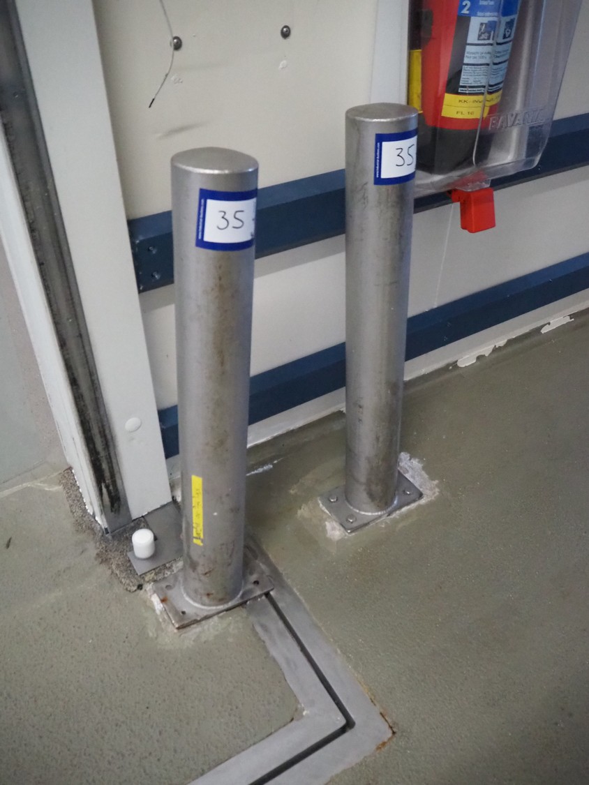 S/s protection frame, dimensions: 1650 mm x 120 mm x 800 mm, 2 s/s protection poles, diameter: (2x) 120 mm, height: (2x) 800 mm.
