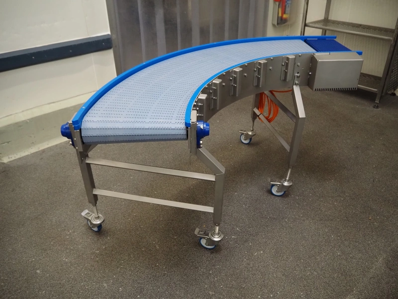 Terbahl Edelstahlverarbeitung GmbH 90˚ mobile curve conveyor, type: 103148, year of construction: 2023, s/s frame, plastic belt, belt width: 400 mm, total dimensions: 2700 mm x 1700 mm x 900 mm.