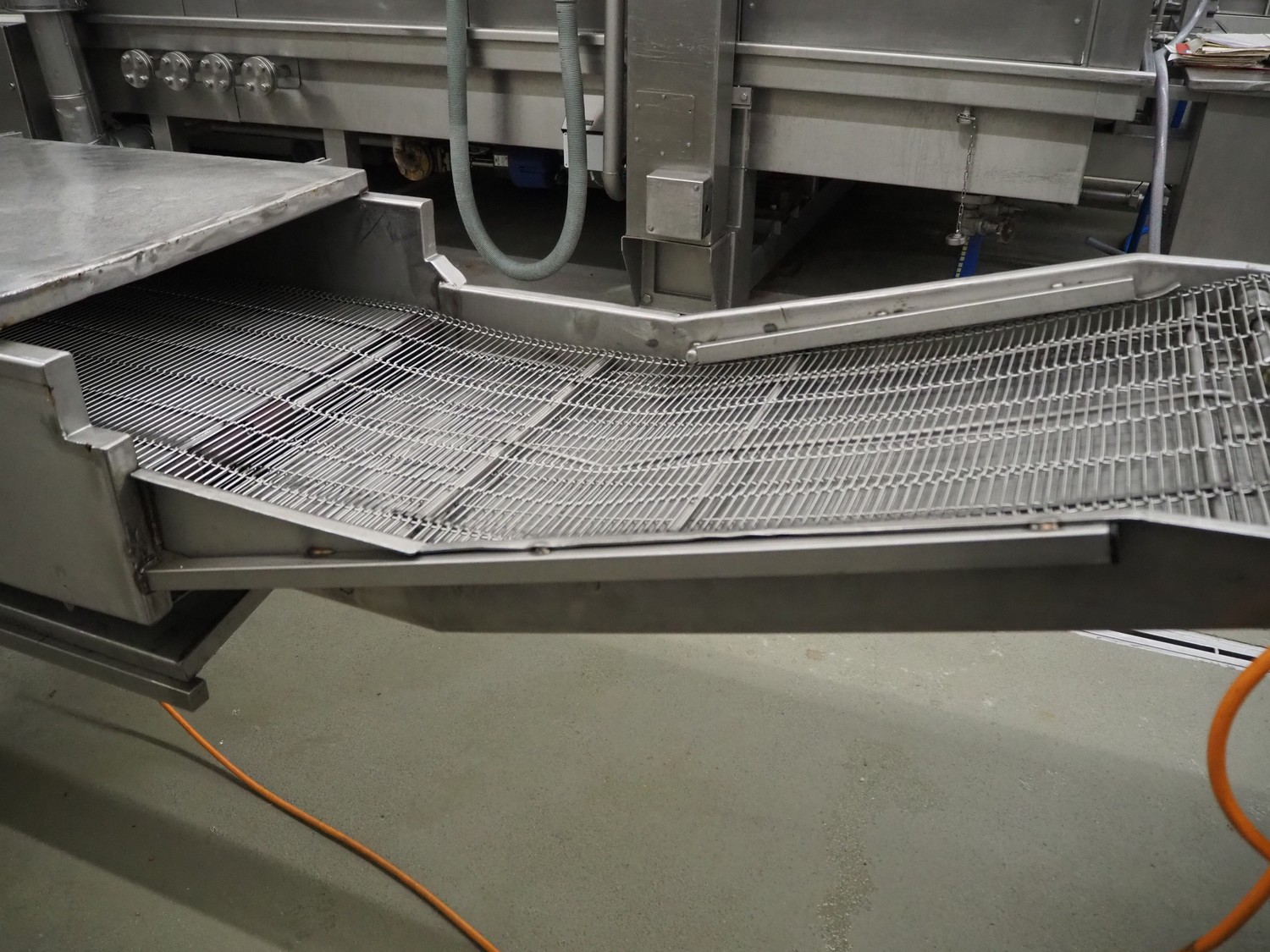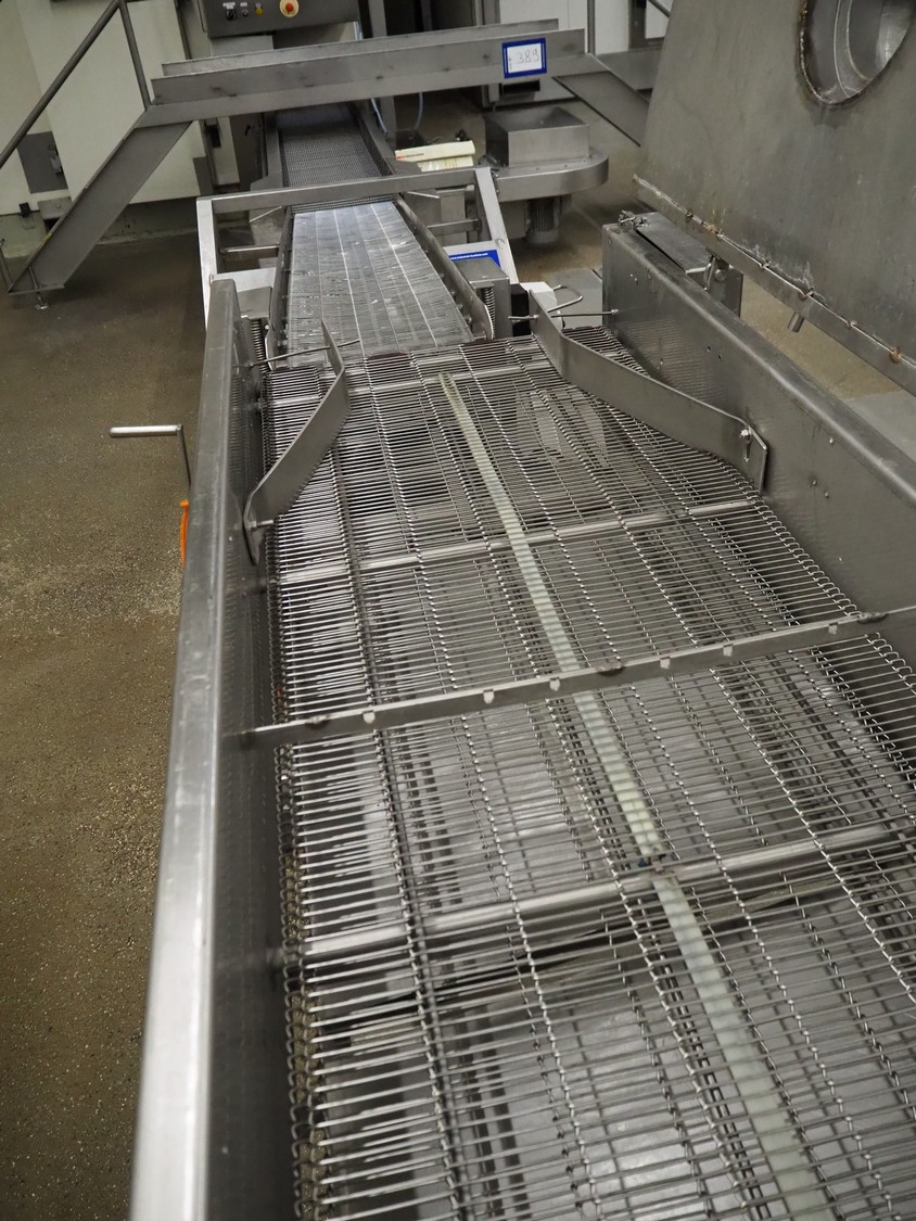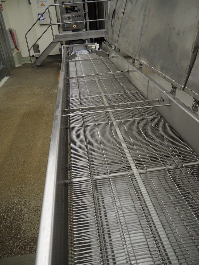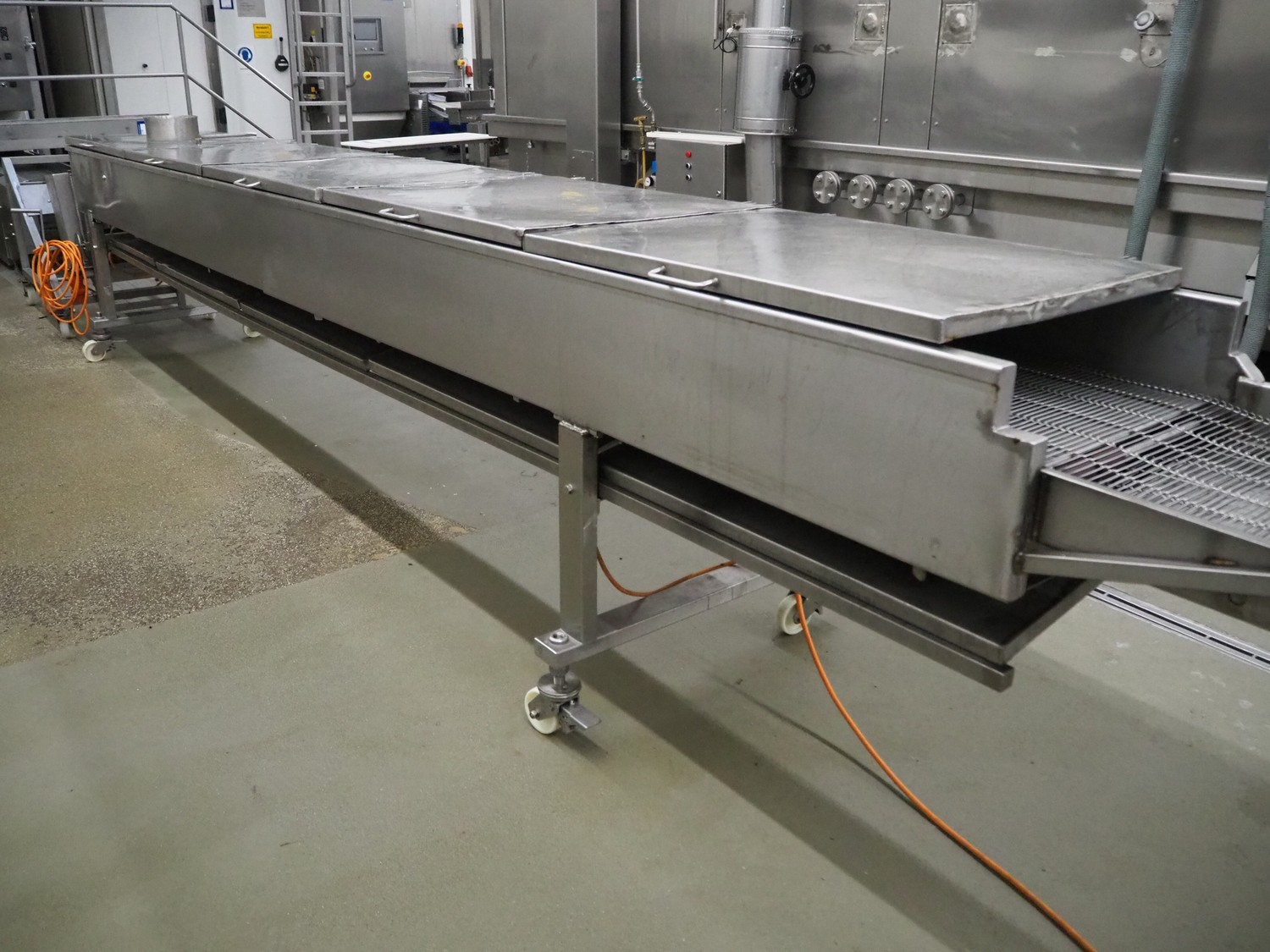 Koppens Machinefabriek B.V. mobile s/s mesh belt with covers, model: NGT 5000/600, serial number: 12, 380 V, 3 Ph, 50 Hz, s/s mesh belt, belt width: 600 mm, total dimensions: 6900 mm x 900 mm x 1150 mm.