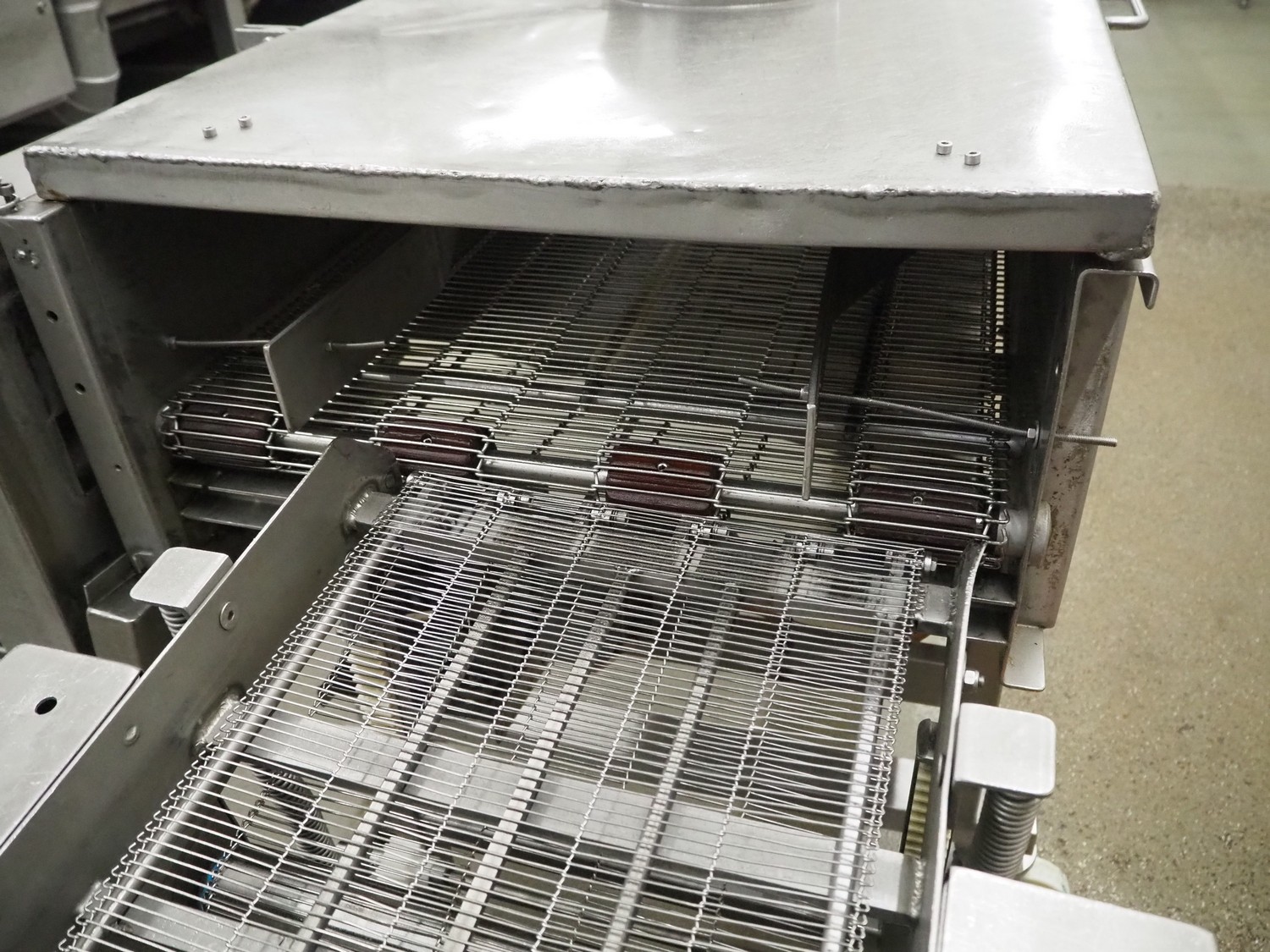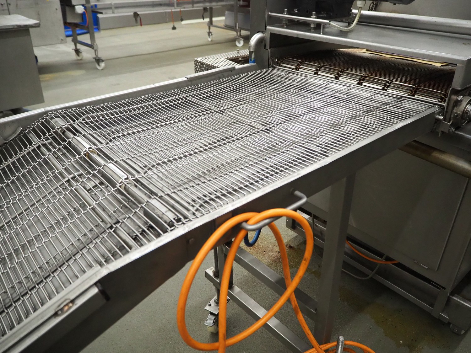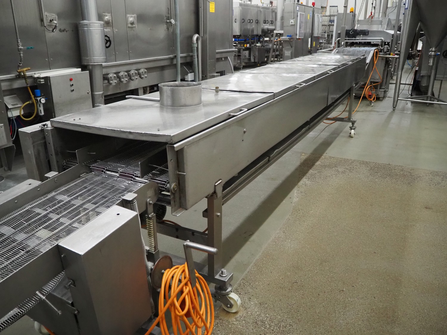 Koppens Machinefabriek B.V. mobile s/s mesh belt with covers, model: NGT 5000/600, serial number: 12, 380 V, 3 Ph, 50 Hz, s/s mesh belt, belt width: 600 mm, total dimensions: 6900 mm x 900 mm x 1150 mm.