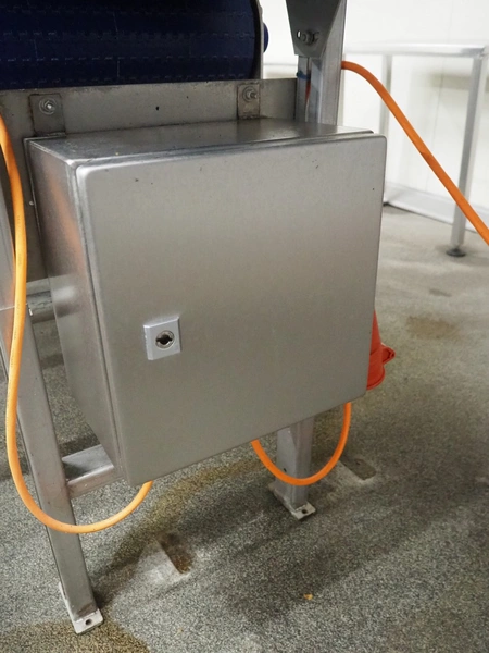 Transport belt, s/s frame, plastic belt, belt width: 340 mm, total dimensions: 5220 mm x 650 mm x 1150 mm.