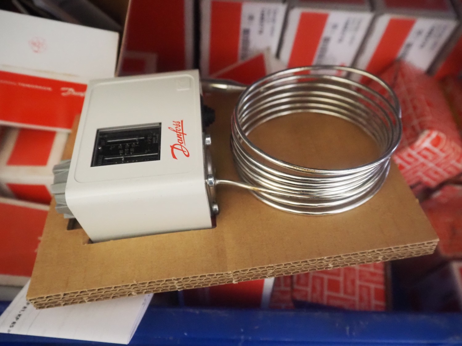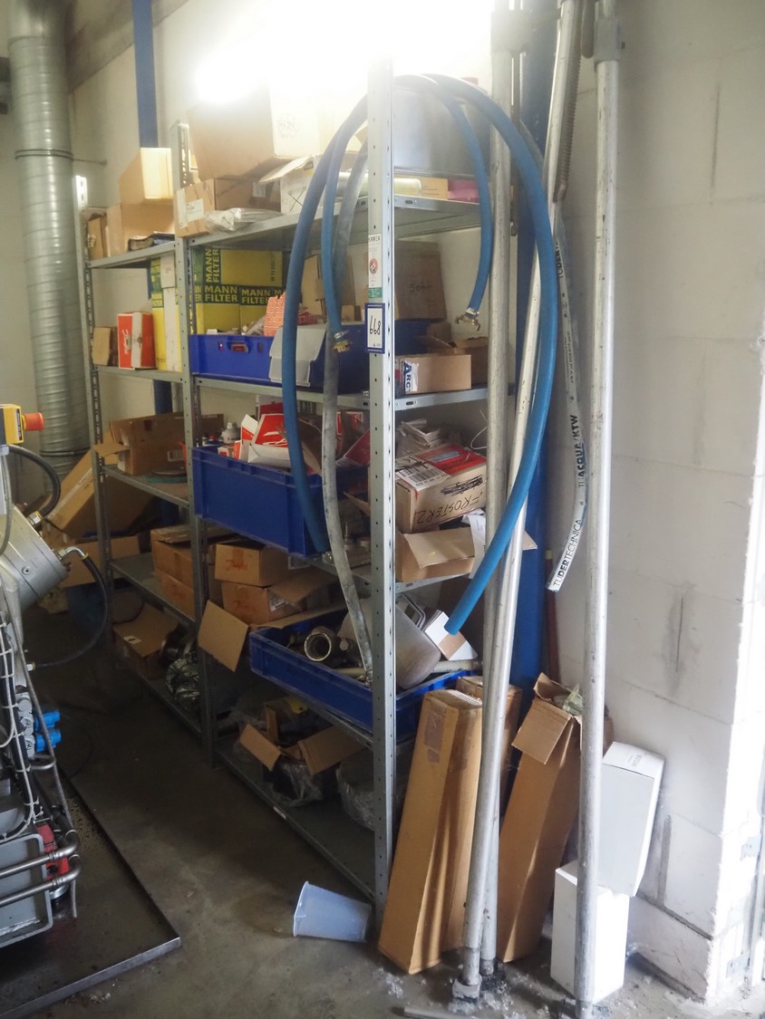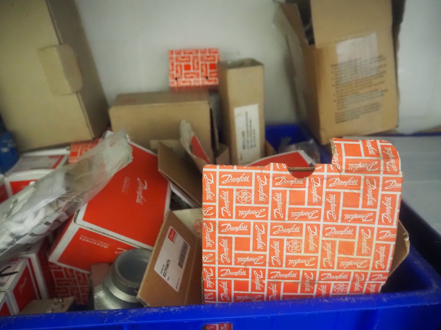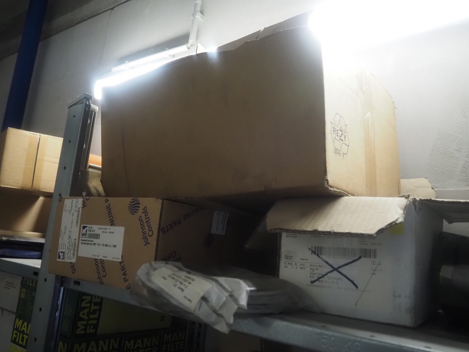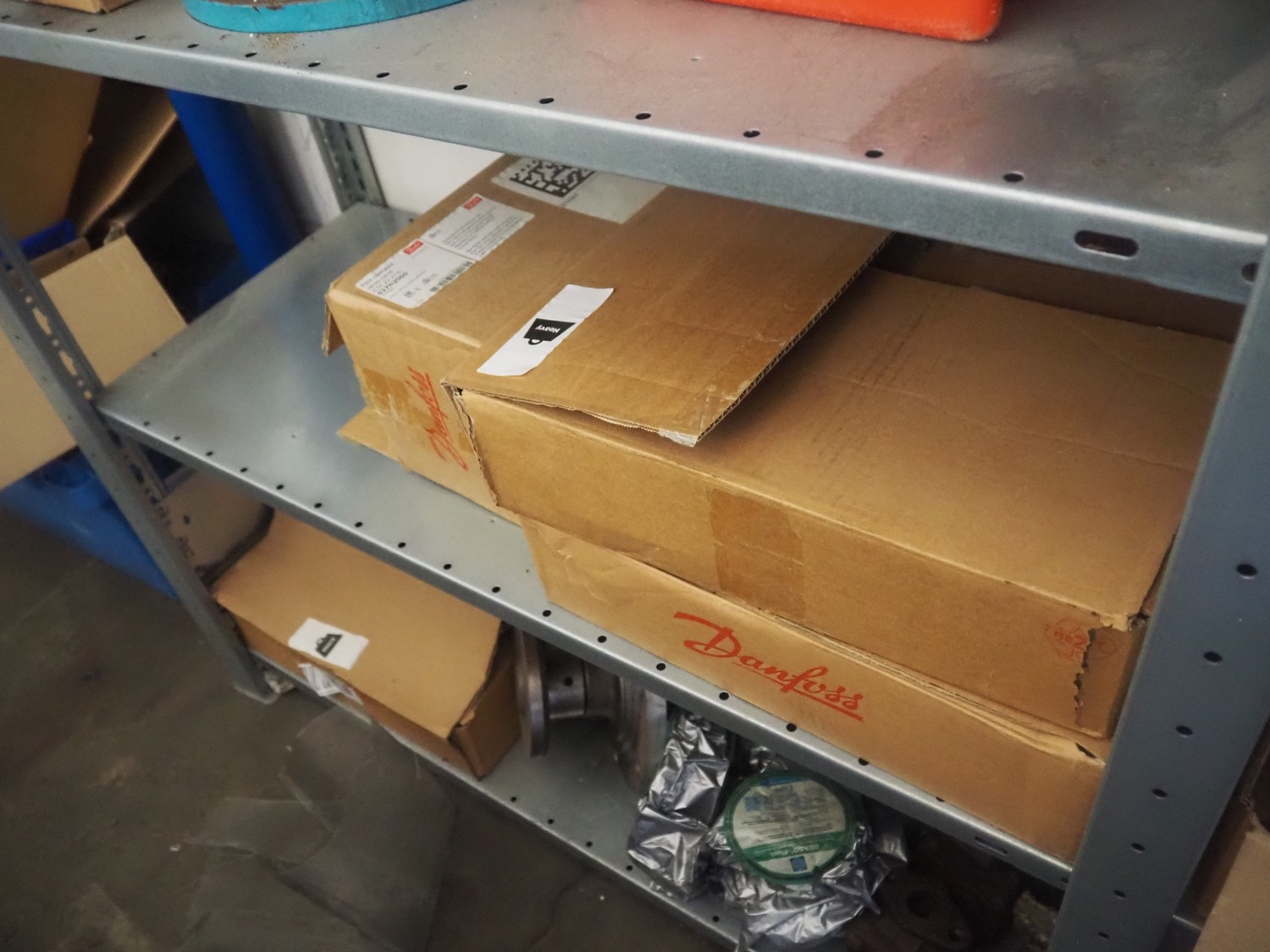 Aluminium rack with large amount of different parts, among others: Danfoss thermometers and Mann filters.