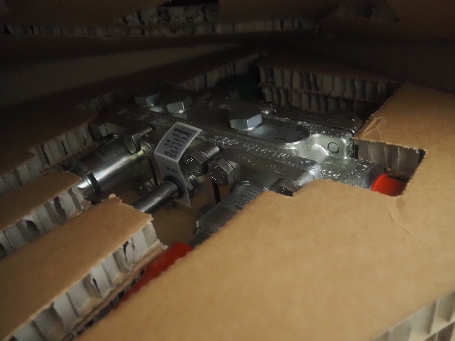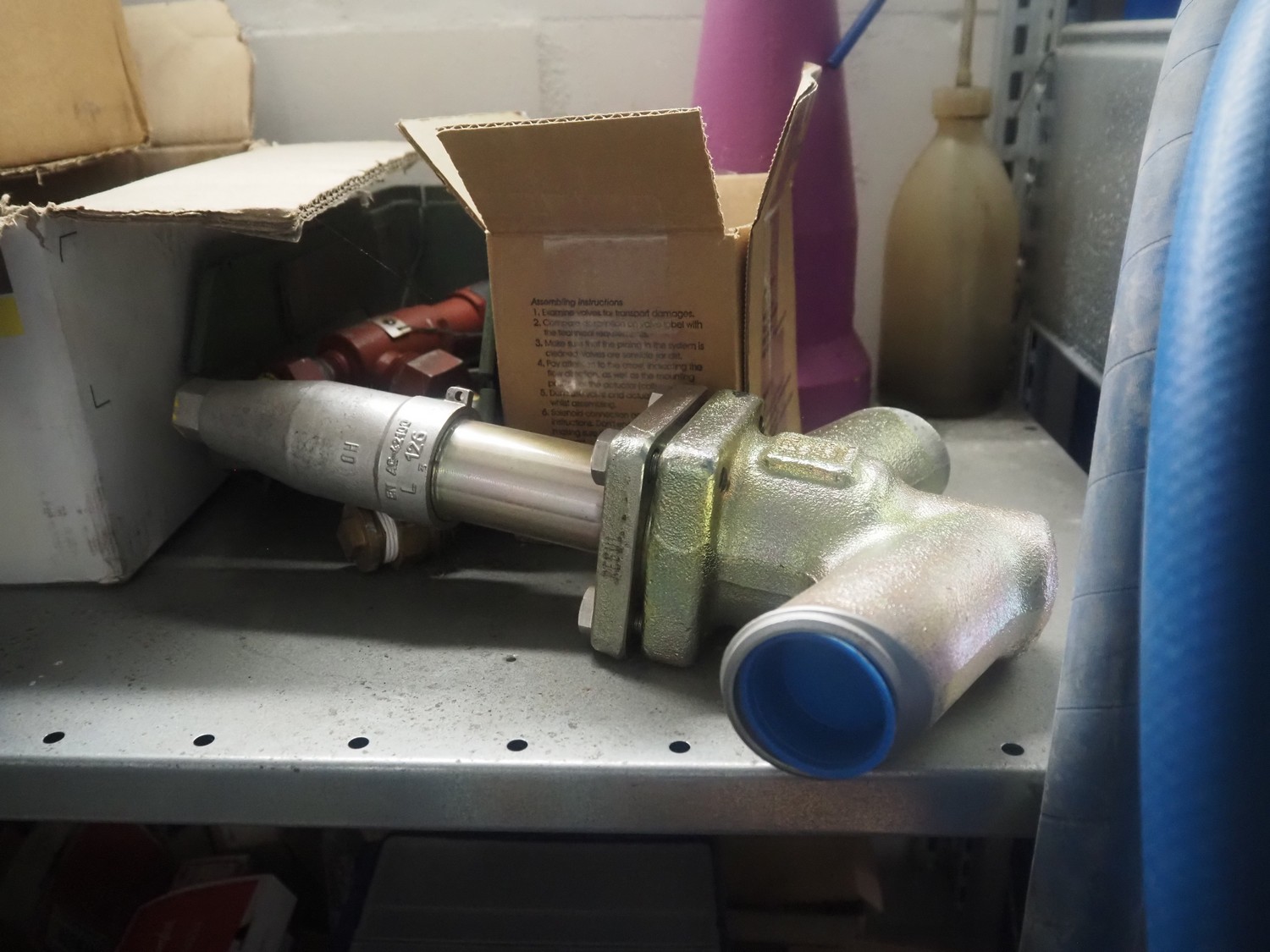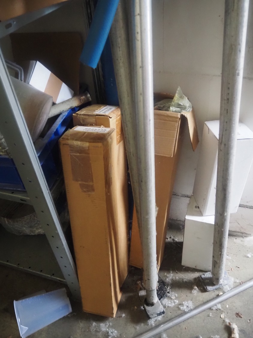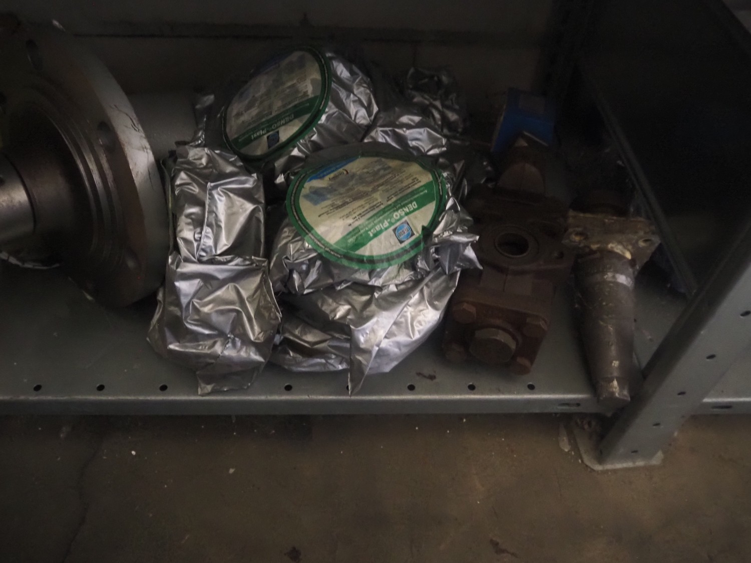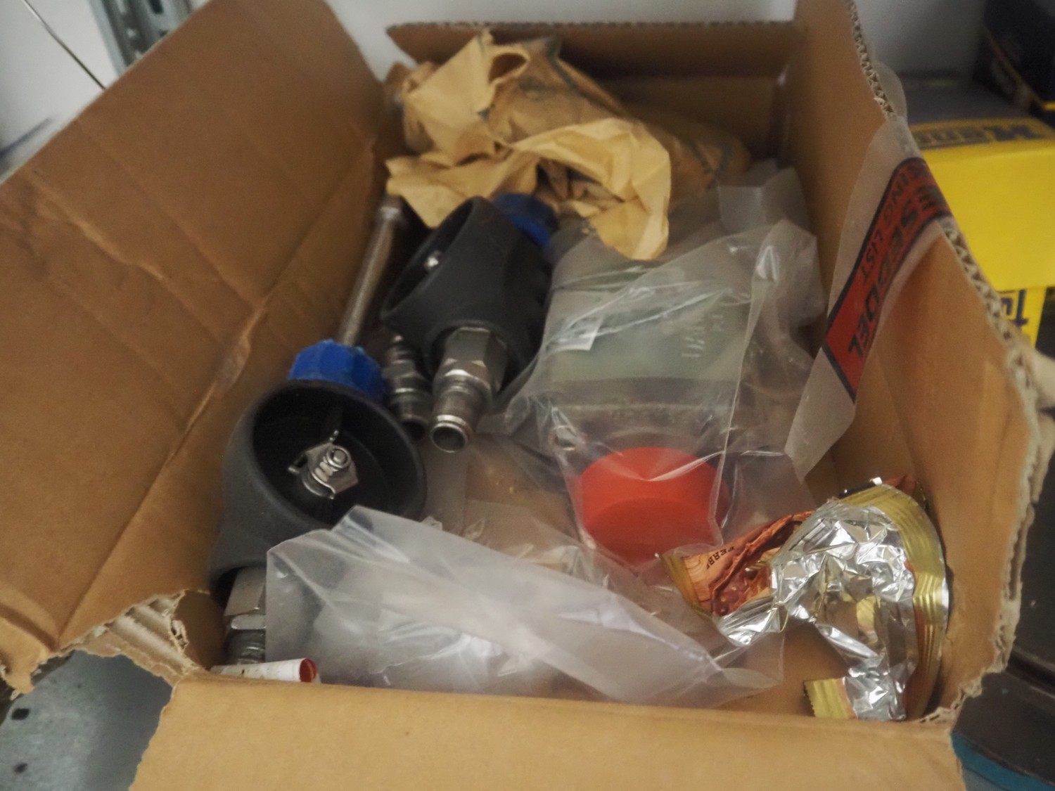 Aluminium rack with large amount of different parts, among others: Danfoss thermometers and Mann filters.