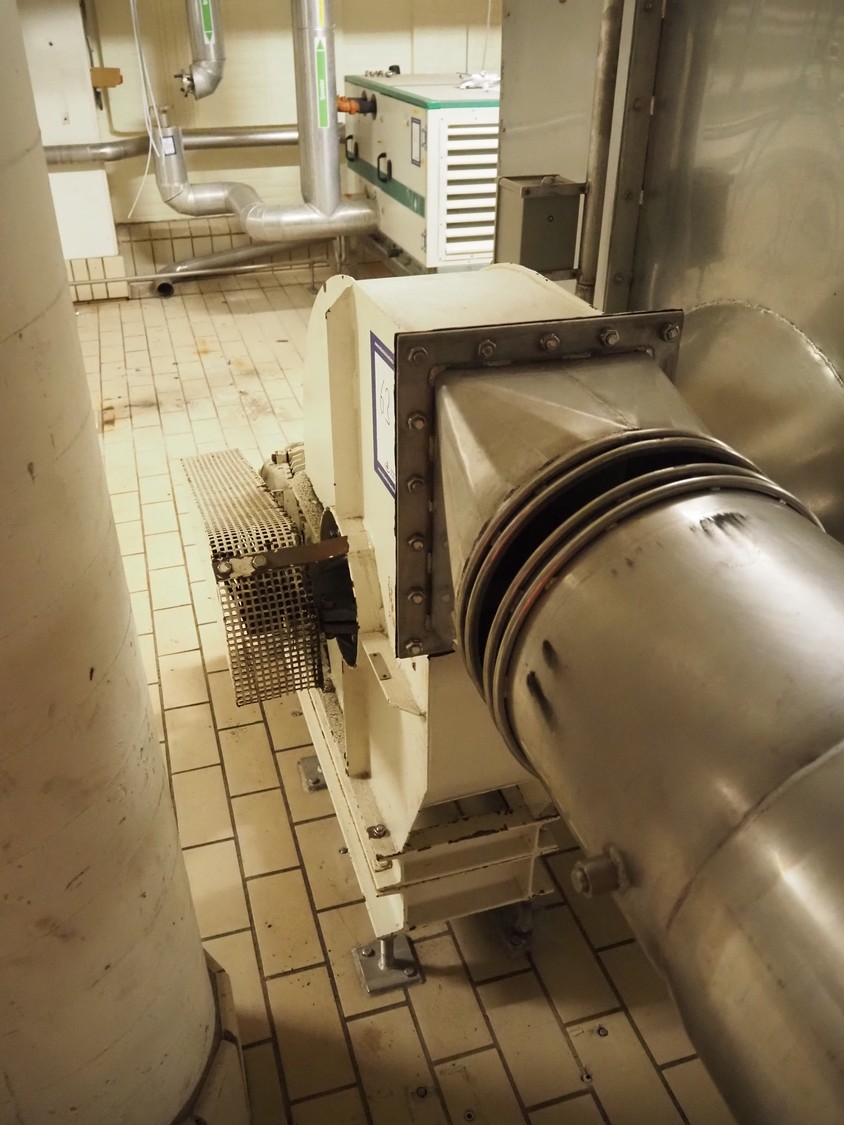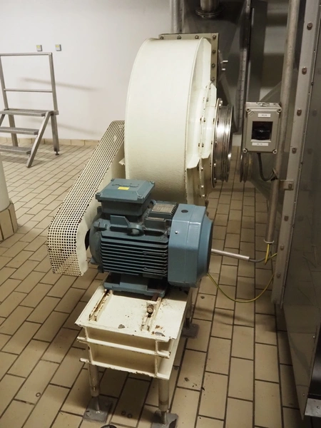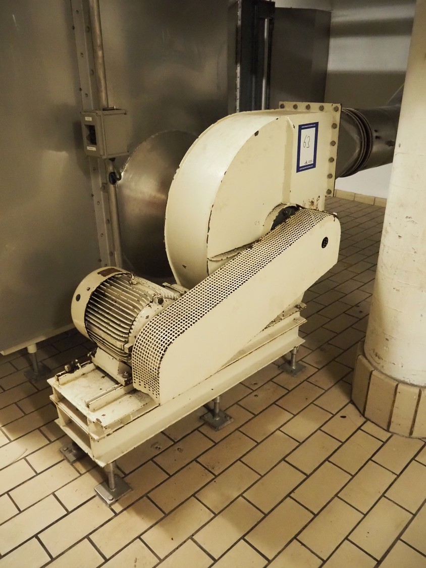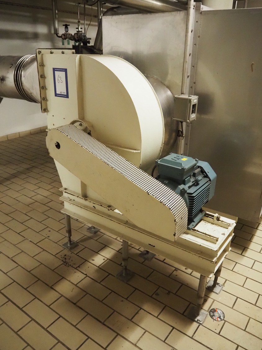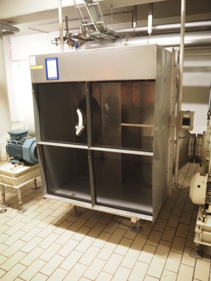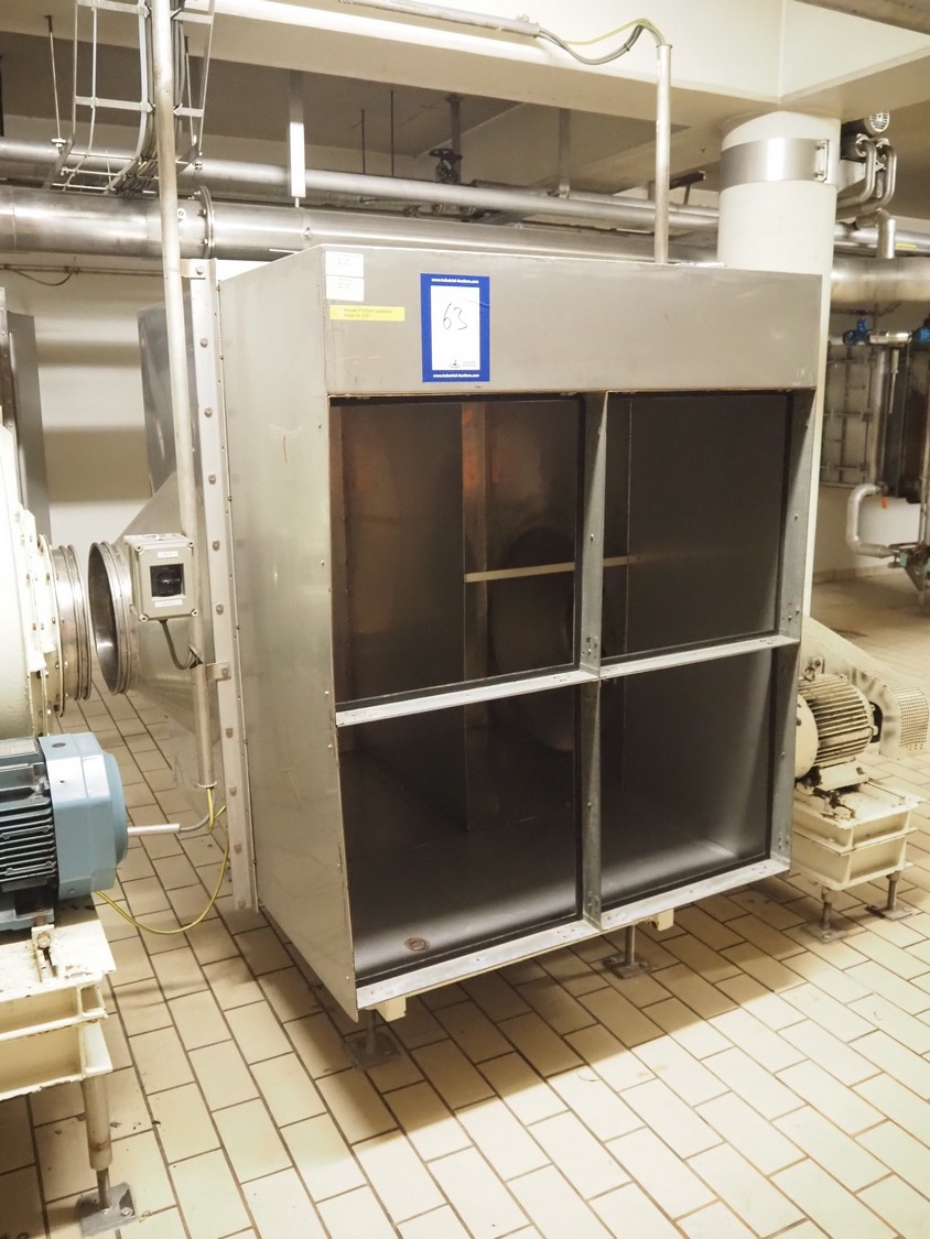S/s filter cabinet, dimensions: 1700 mm x 1550 mm x 1990 mm and 2 intake fans with ABB motor, 11/12.5 kW, dimensions: (2x) 1300 mm x 700 mm x 1560 mm.