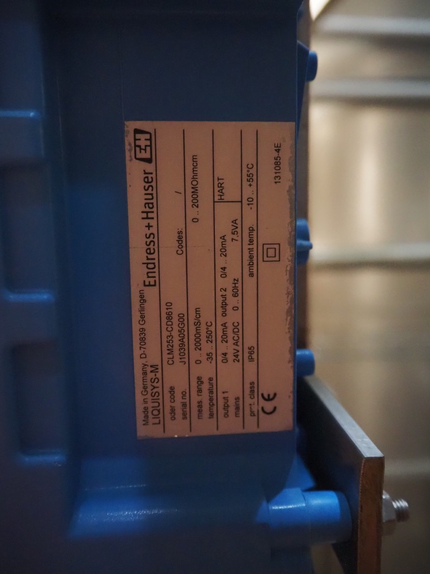 Endress+Hauser conductivity transmitter, type: Liquisys-M CLM253, measuring range: 0-2000mS/cm, temperature range: 35°C-250°C, dimensions: 150 mm x 110 mm x 250 mm.