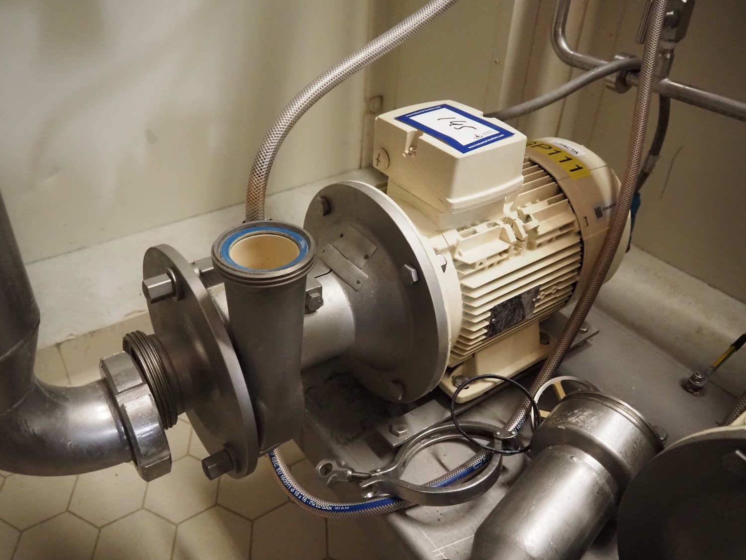 Fristam centrifugal pump, dimensions: 600 mm x 250 mm x 350 mm.