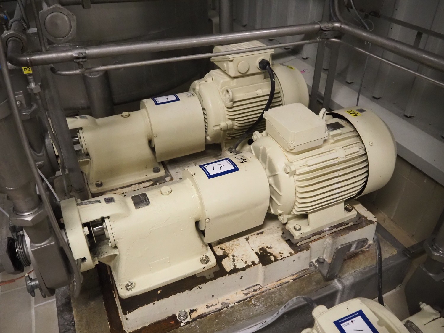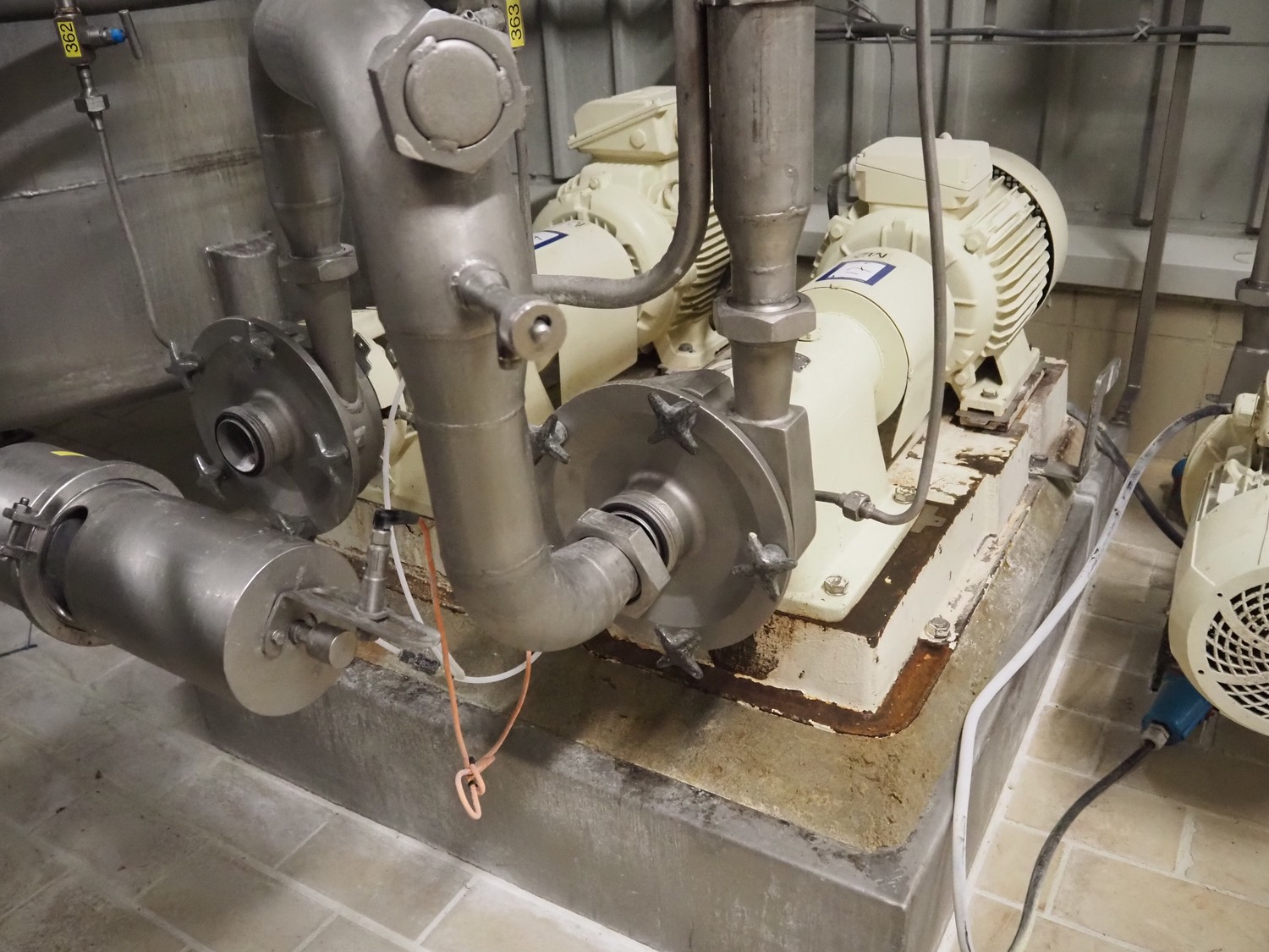 2 Fristam centrifugal pumps, type: FP1732 L and FP1742/195, serial number: 132122035 and 14211/016, dimensions: 1150 mm x 300 mm x 500 mm.