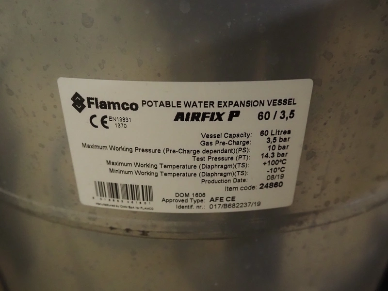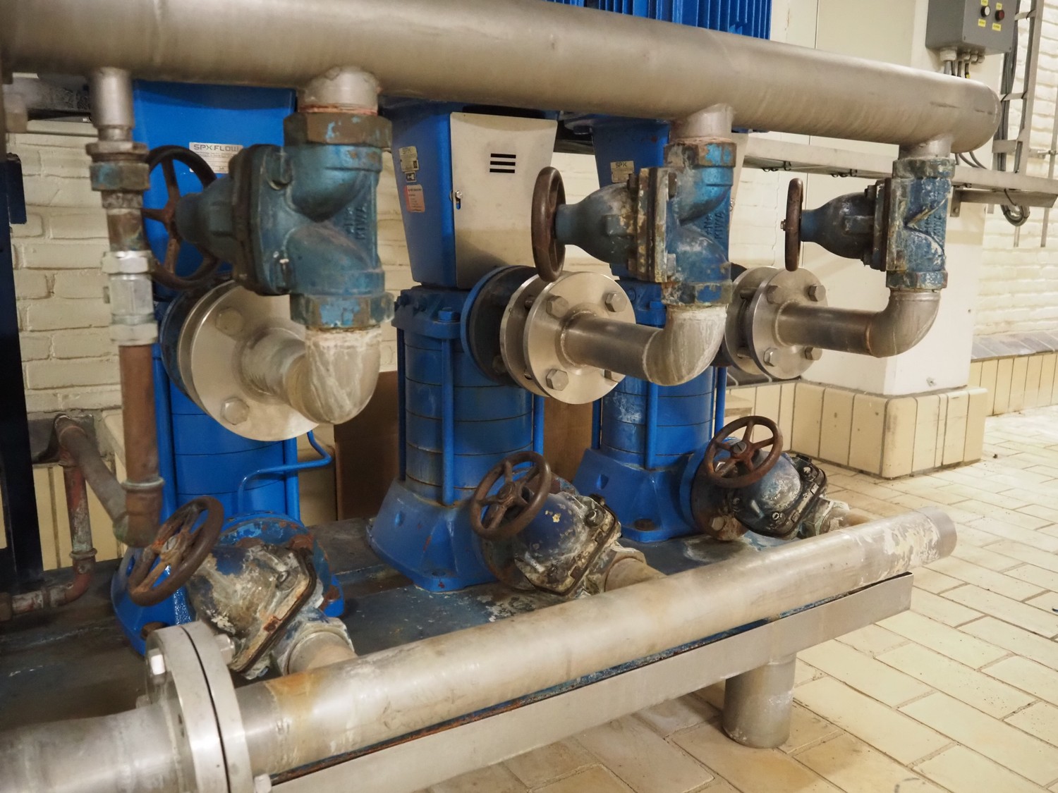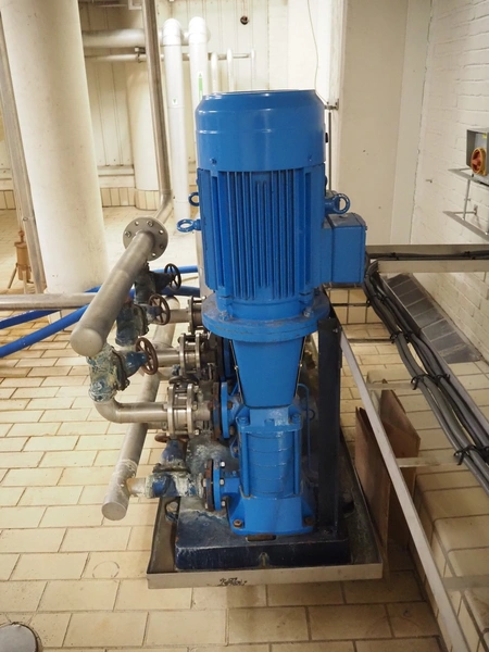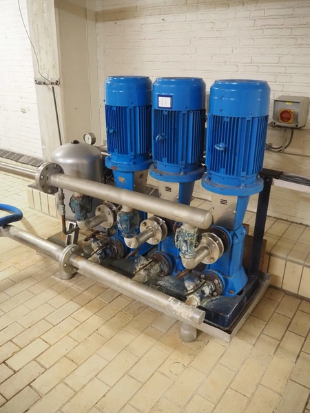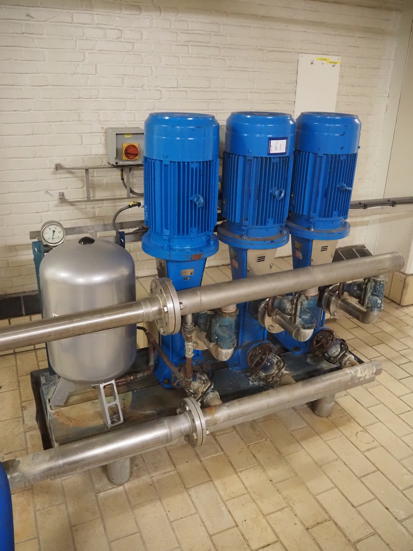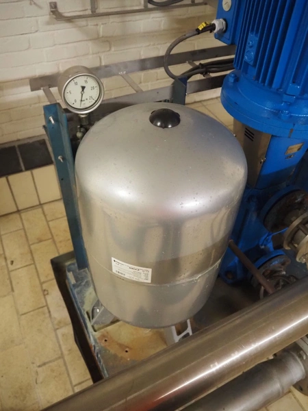 SPX/Johnson Pump multi-stage centrifugal pump system consisting of 3 SPX/Johnson Pump multi-stage centrifugal pumps, type: MCVS 14B*4-5, serial number: 15-3071212A, 15-3071213A, 20-028569, Flamco potable water expansion vessel, type: AIRFIX P, volume: 60 liter, total dimensions: 1700 mm x 800 mm x 1520 mm.