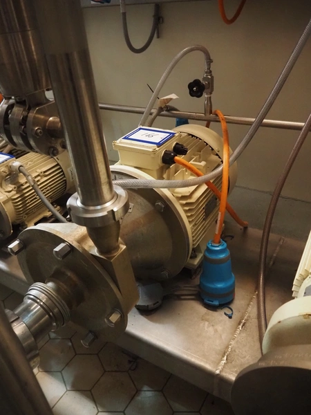 Fristam centrifugal pump, type: FP 742/195 VB, serial number: 0444730120, year of construction: 2021, Q: 15.5 m³/h, H: 40 m, P: 5.5 kW, n: 2900 l/min, dimensions: 700 mm x 400 mm x 450 mm.