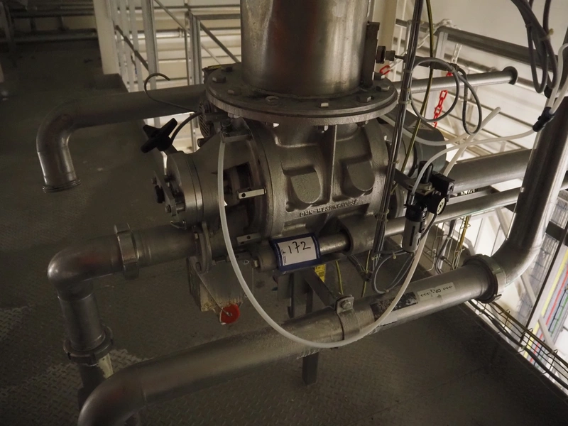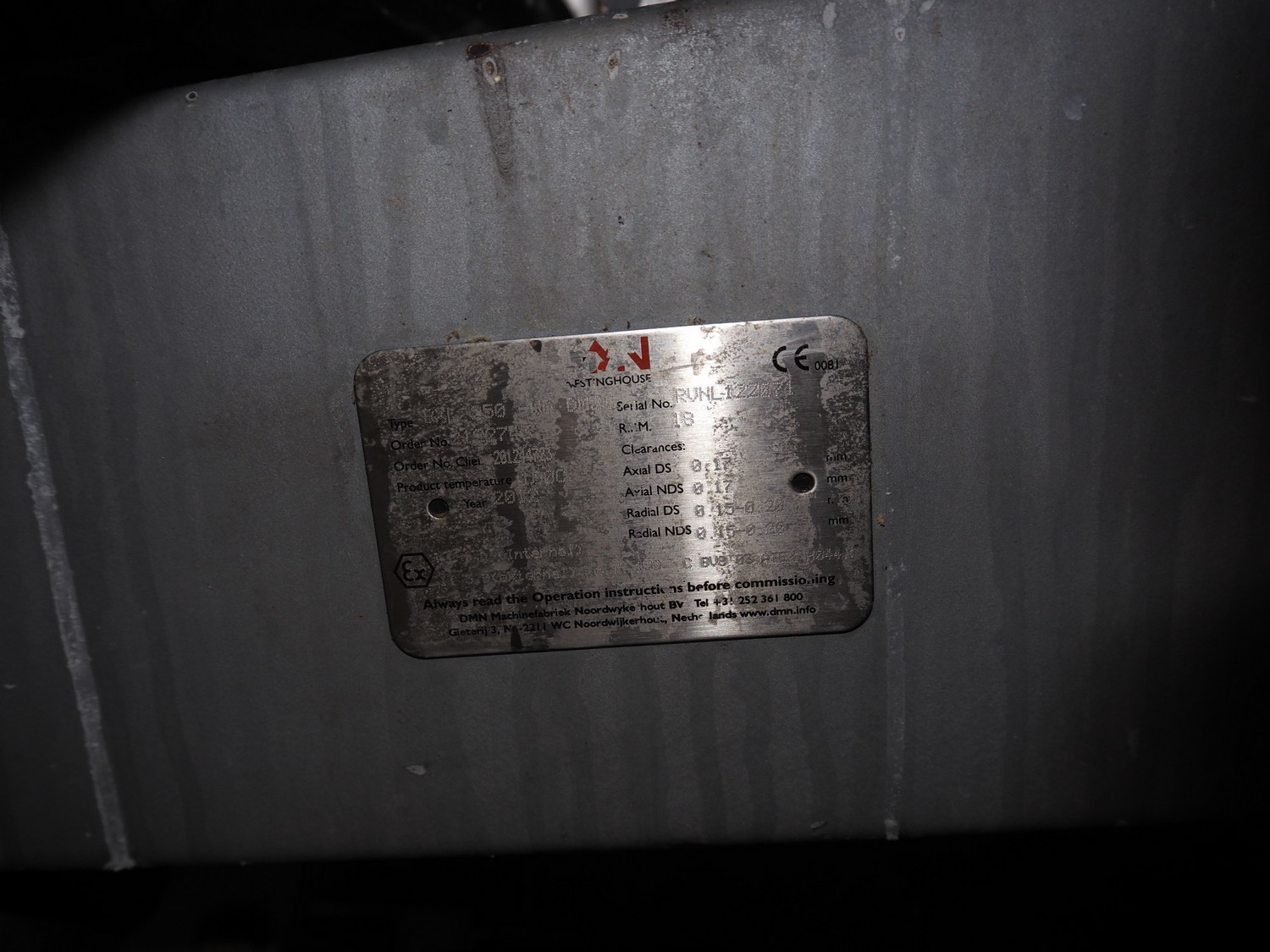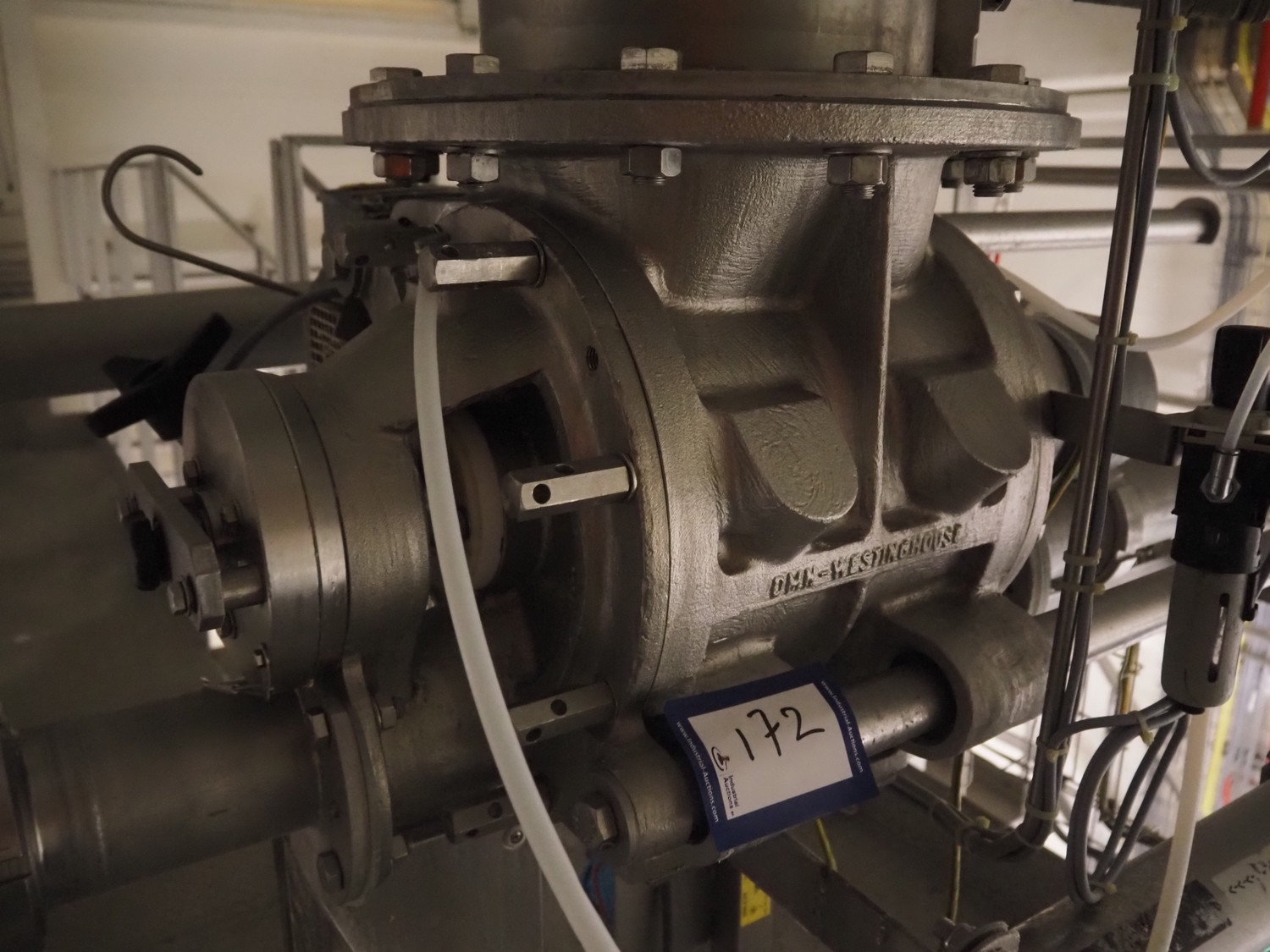 DMN Westinghouse dairy blow through rotary valve, type: BXL 250 -WD DMZC, serial number: RVNL122071, year of construction: 2012, Axial DS: 0.17 mm, Axial NDS: 0.17 mm, Radial DS: 0.15-0.20 mm, Radial NDS: 0.15-0.20 mm, product temperature: 100 °C, 18 rpm, dimensions: 1150 mm x 800 mm x 400 mm.