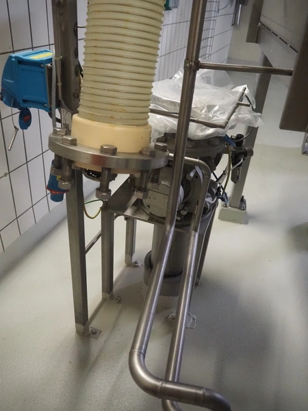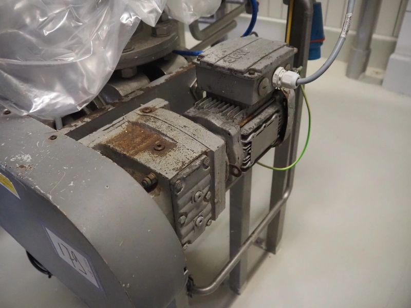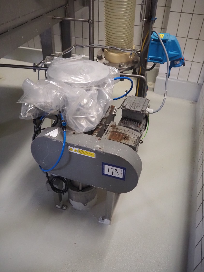 DMN Westinghouse dairy blow through rotary valve, type: AL 150 DAI D, serial number: RVNL122793, year of construction: 2012, Axial DS: 0.15 mm, Axial NDS: 0.14 mm, Radial DS: 0.13-0.16 mm, Radial NDS: 0.13-0.16 mm, product temperature: 100 °C, 23 rpm, dimensions: 500 mm x 500 mm x 300 mm.