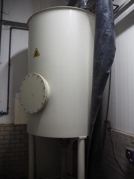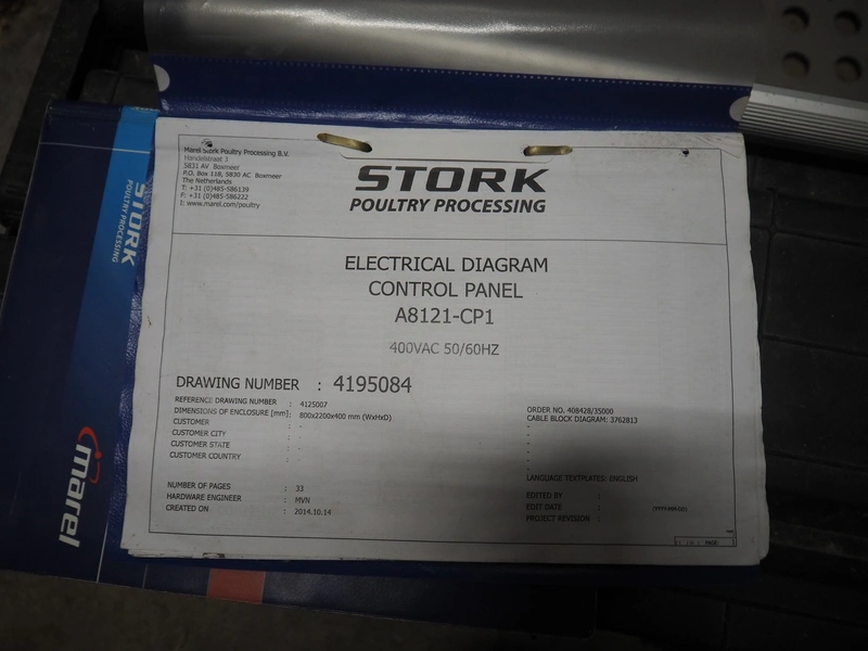 Marel Stork Poultry Processing B.V. gas stunning tunnel, model: CAS-700 A8101, type: 3791381, serial number: 10129014, year of construction: 2014 (revised), plastic belt, belt width: 690 mm, total dimensions: 15500 mm x 1650 mm x 2300 mm.