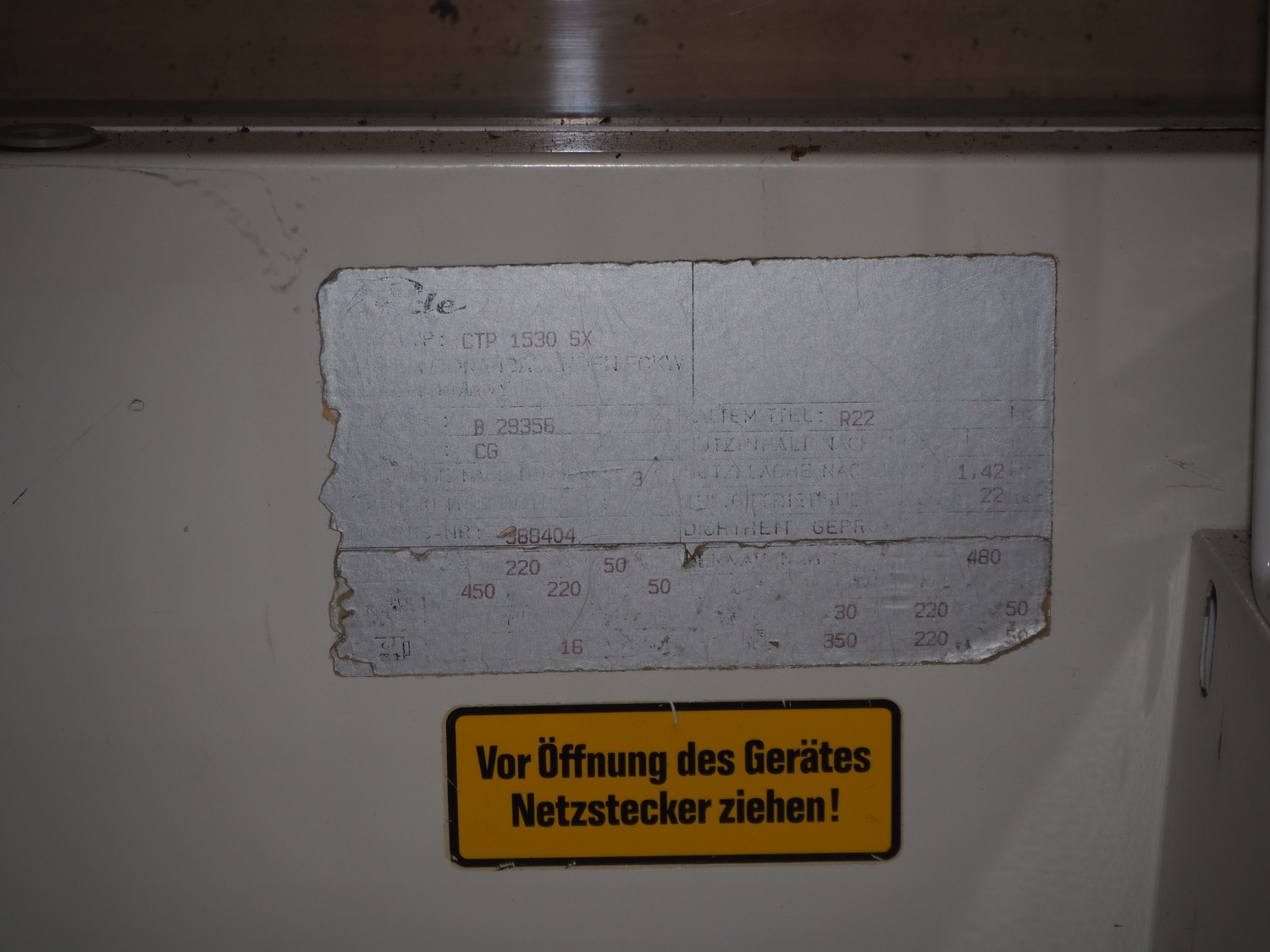 Linde AG refrigerated showcase, type: CTP 1530 SX, production number: 388404 230 V, 50 Hz, 16 A, 480 W, pressure: 22 bar, refrigerant: inside dimensions: 1350 mm x 780 mm x 220 mm, total dimensions: 1500 mm x 1000 mm x 1000 mm.