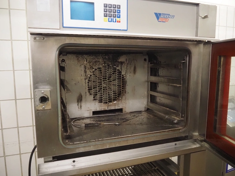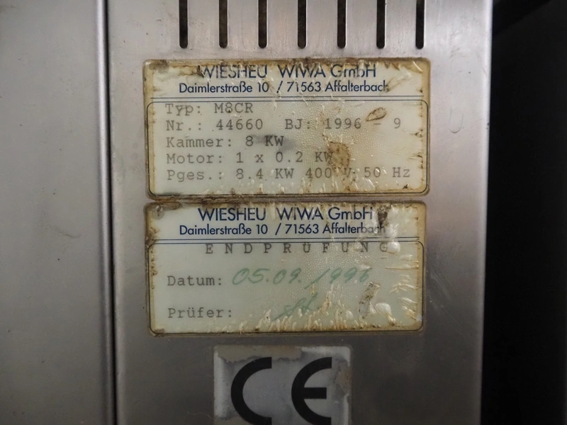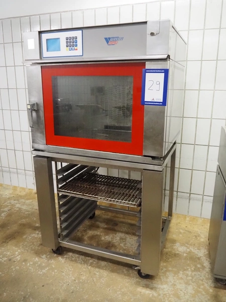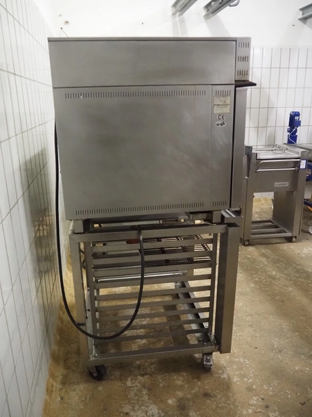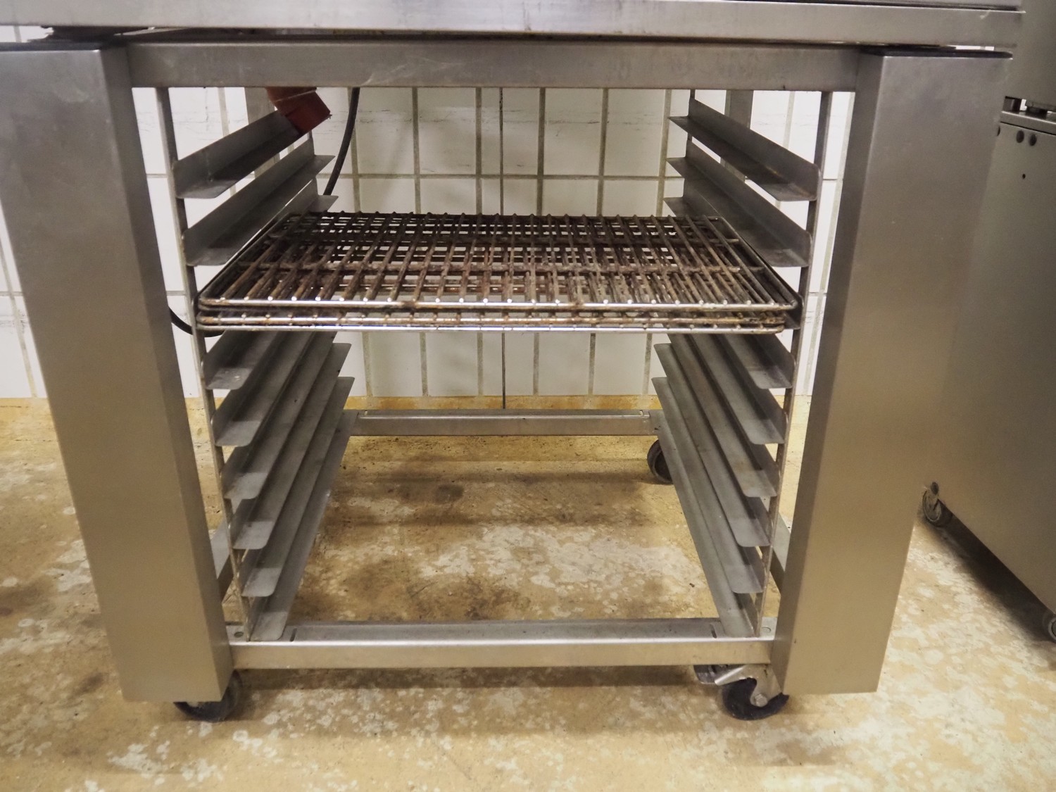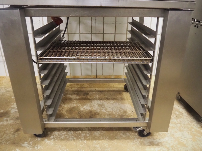 Wiesheu GmbH mobile oven, type: M8CR, number: 44660, year of construction: 1996-9, 400 V, 50 Hz, 8.4 kW, 2 floors, floor dimensions: (2x) 400 mm x 630 mm, dimensions: 930 mm x 820 mm x 1700 mm.