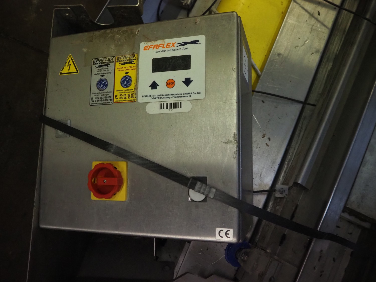 Efaflex electric shutter door, door width: 1600 mm, total dimensions: 2600 mm x 800 mm x 600 mm.