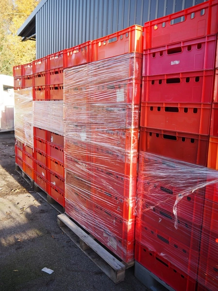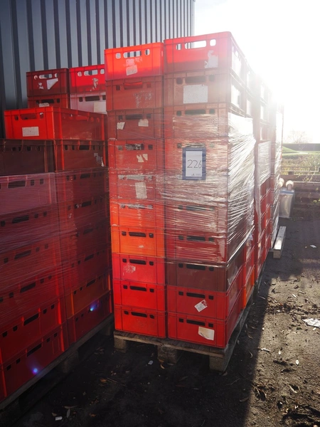 Approximately 250 plastic E2 crates on 10 pallets, dimensions crates: 600 mm x 400 mm x 200 mm. Lot located in Winsen (DE), viewing and pick up in consultation with Industrial Auctions B.V.