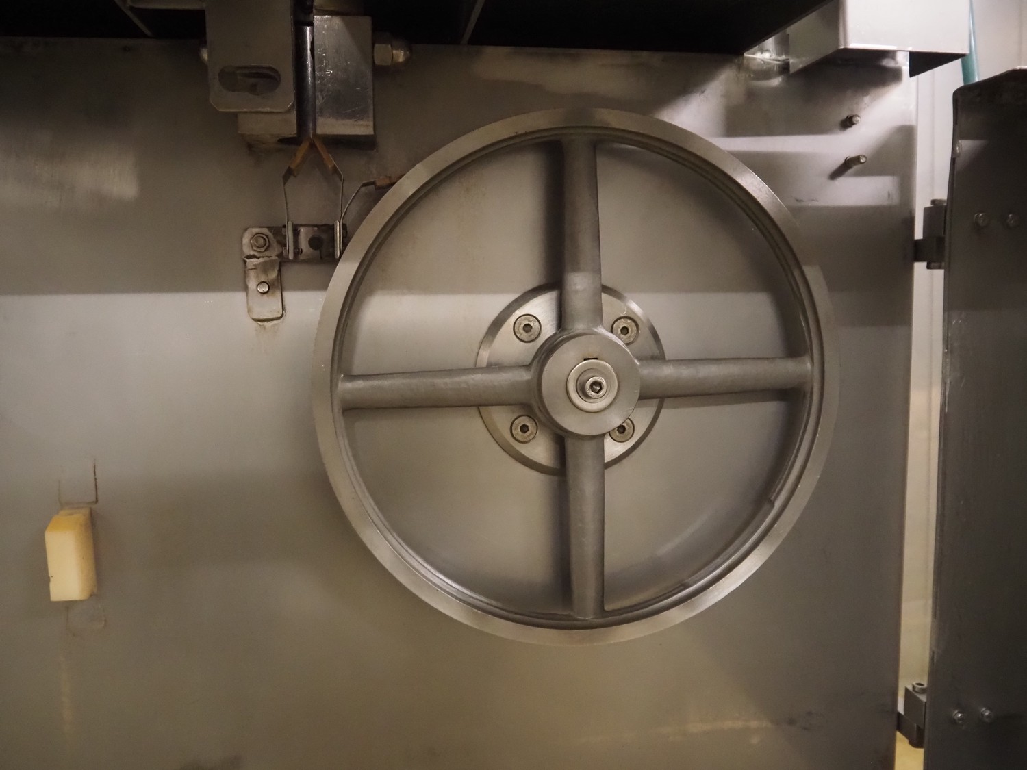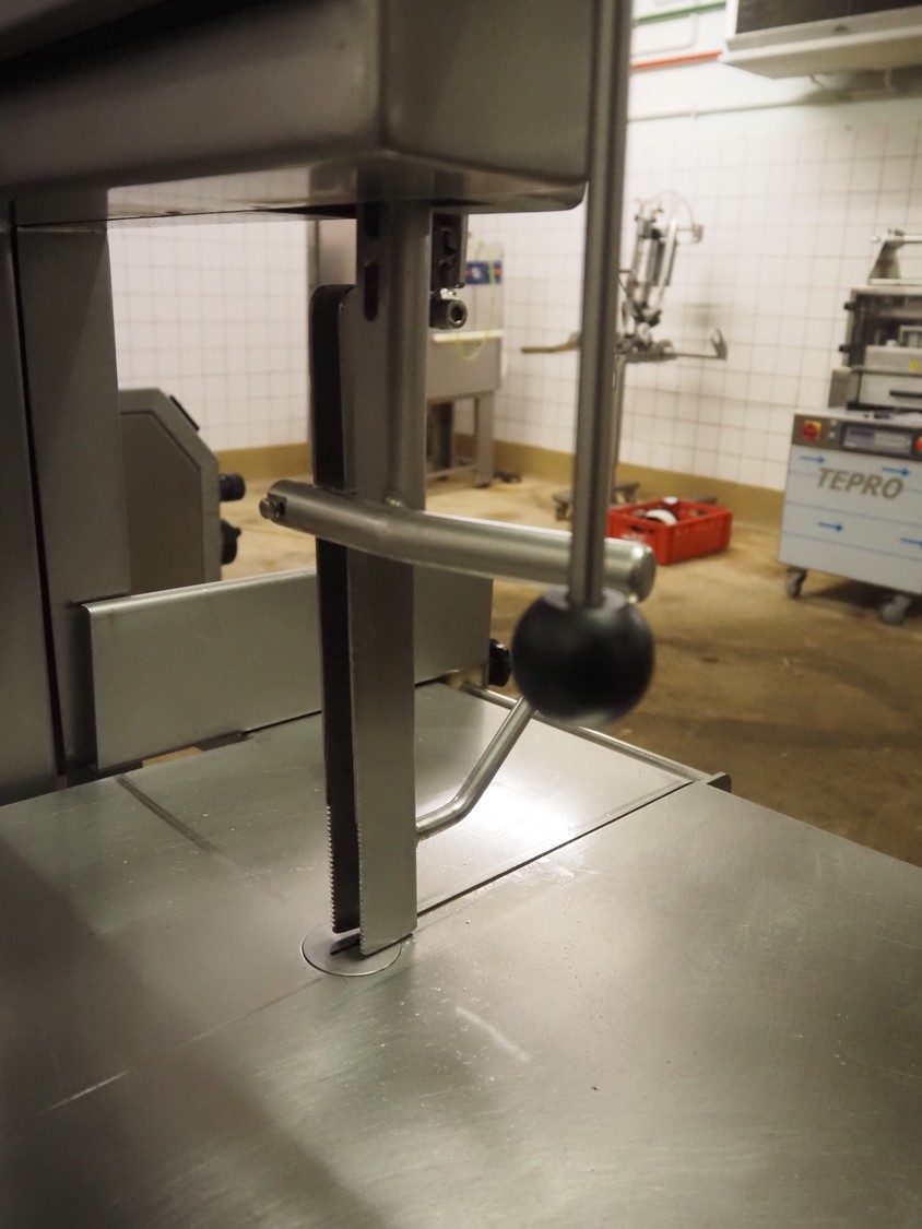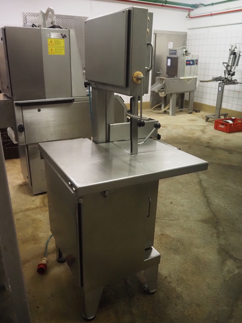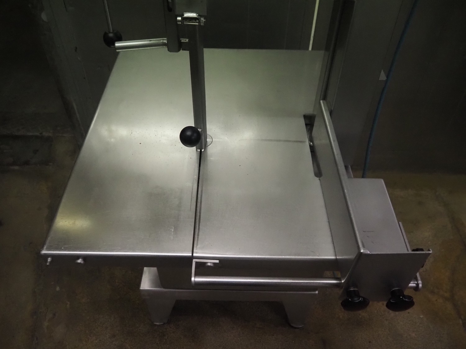 Reich s/s bandsaw, dimensions table: 760 mm x 700 mm, total dimensions: 850 mm x 710 mm x 1640 mm. Missing saw.
