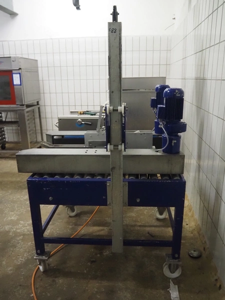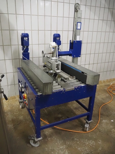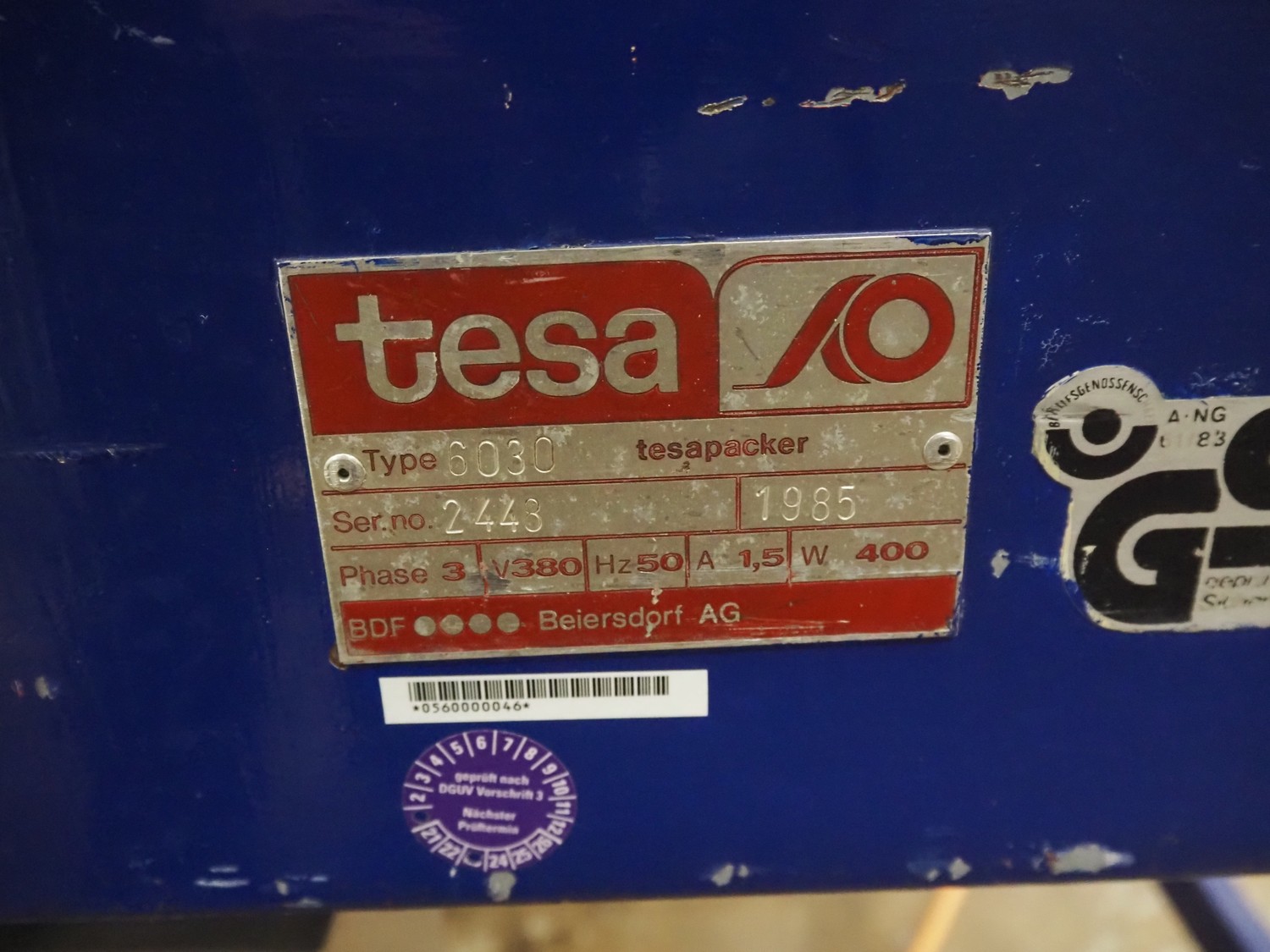 Tesa mobile box closing machine, type: 6030, serial number: 2448, year of construction: 1985, 380 V, 3 Ph, 50 Hz, 1.5 A, 400 W, clearance: 410 mm, total dimensions: 1080 mm x 950 mm x 1720 mm.