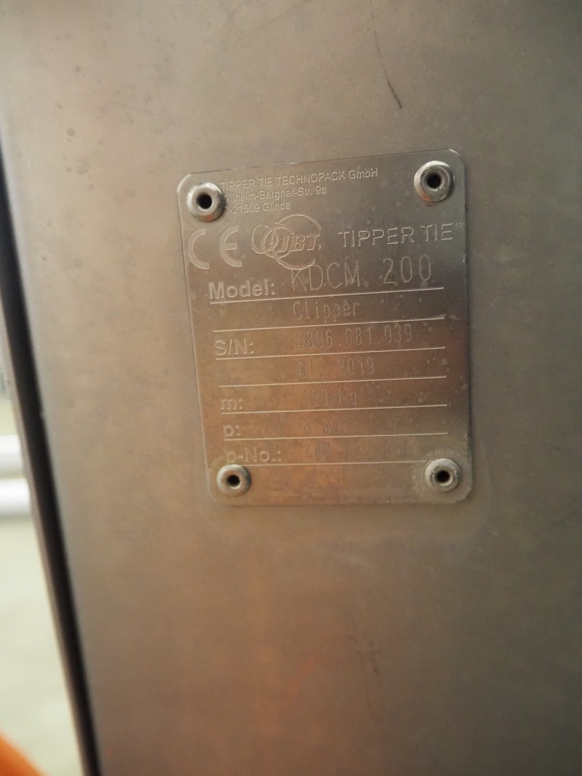 Tipper Tie Technopack GmbH mobile double clipper, model: KDCM 200, serial number: 4806.681.039, year of construction: 2019, weight: 100 Kg, dimensions: 1460 mm x 950 mm x 1900 mm.