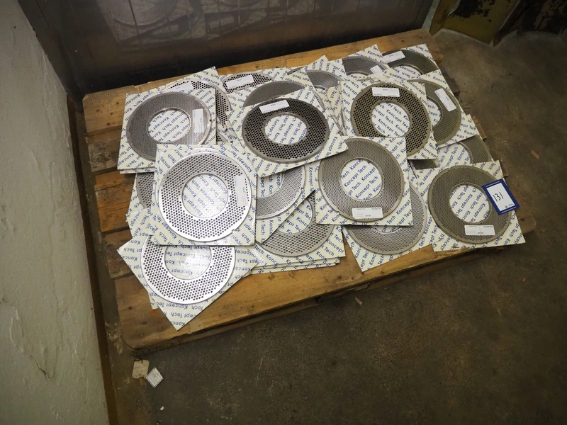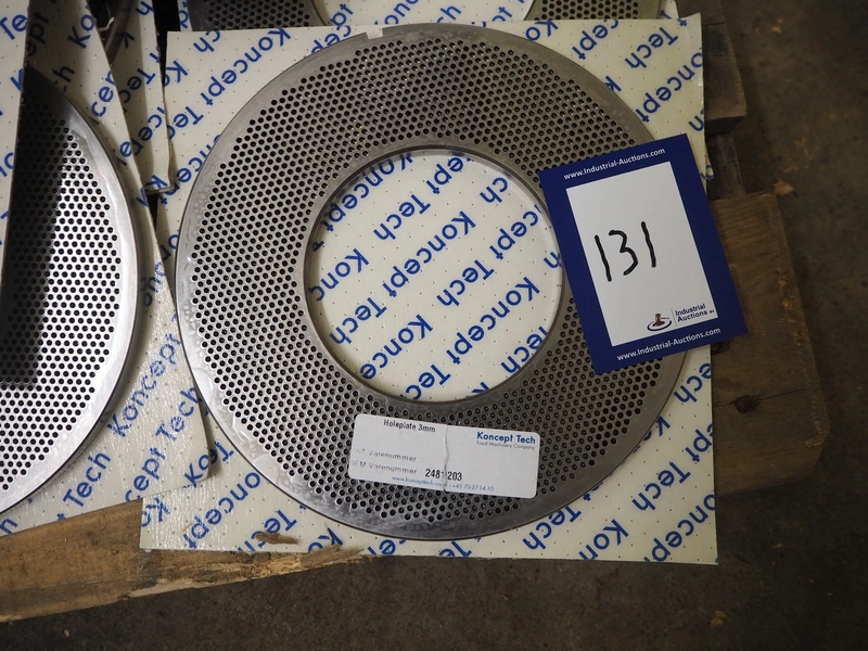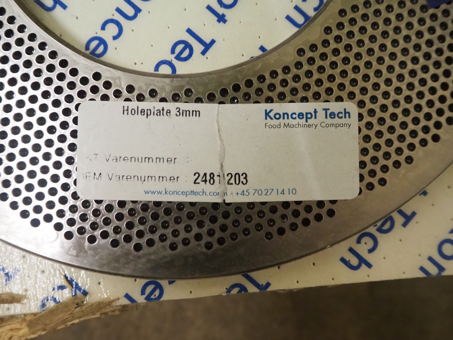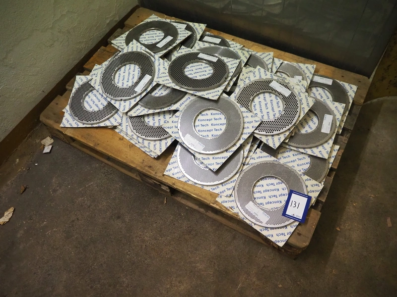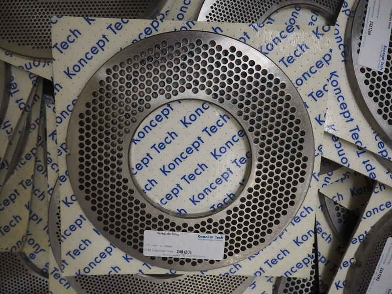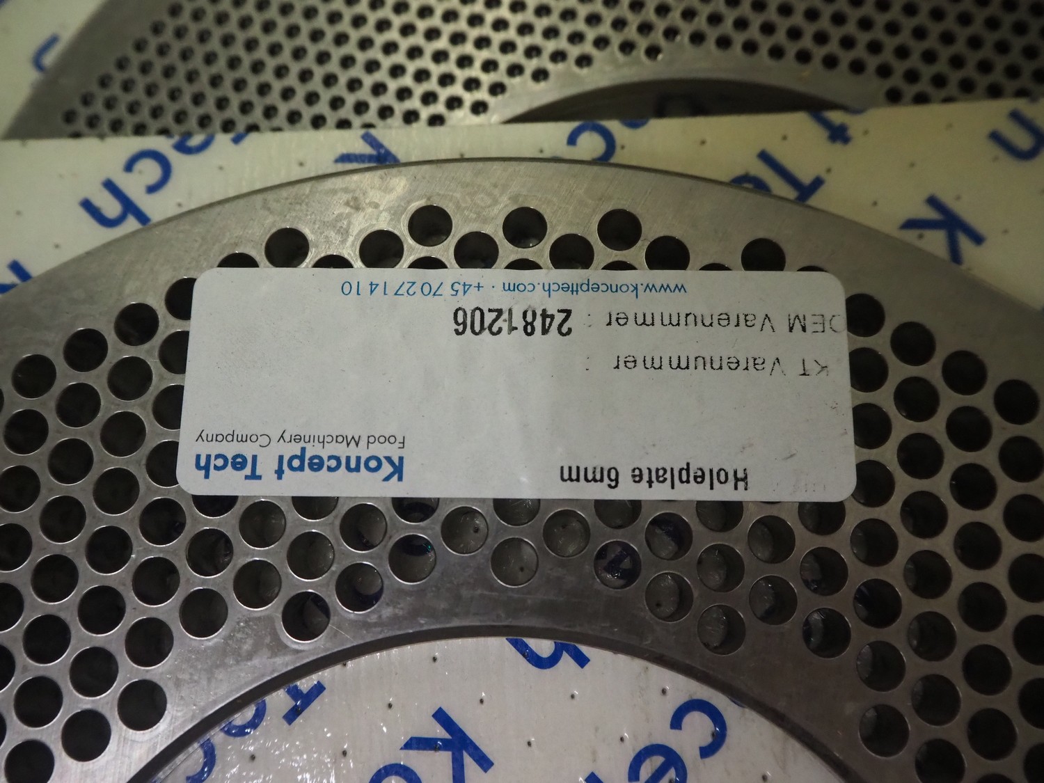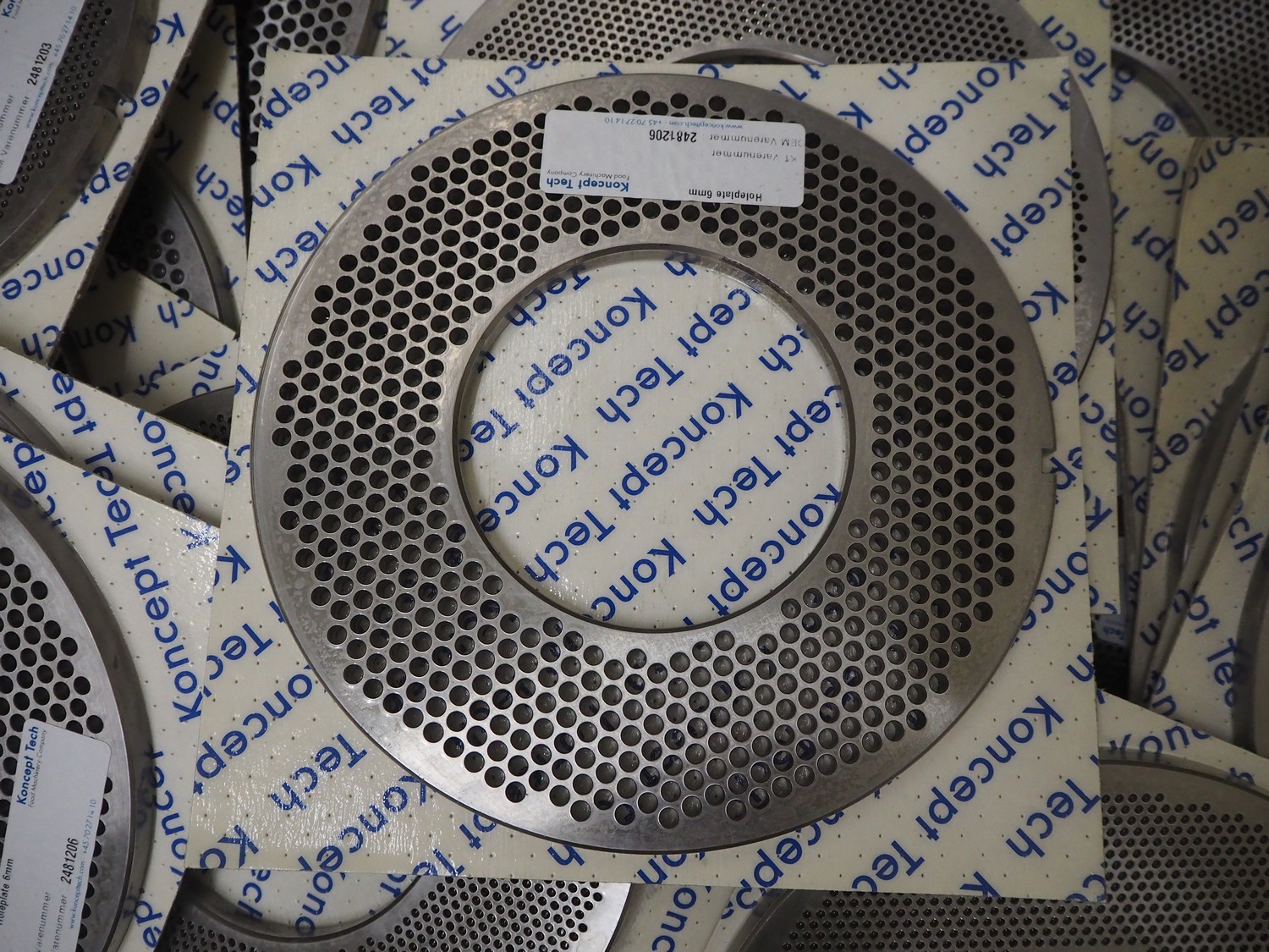 Pallet with Koncept Tech hole plates for micro cutter, hole plates: 3 mm / 6 mm, diameter plates: 248 mm.