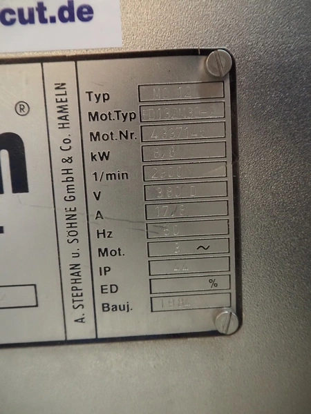 Stephan micro cutter, type: MC 12, machine number: 35492, year of construction: 1984, 380 V, 3 Ph, 50 Hz, 17.8 A, 8.8 kW, dimensions: 700 mm x 620 mm x 950 mm. Lot located in Winsen (DE), viewing and pick up in consultation with Industrial Auctions B.V.
