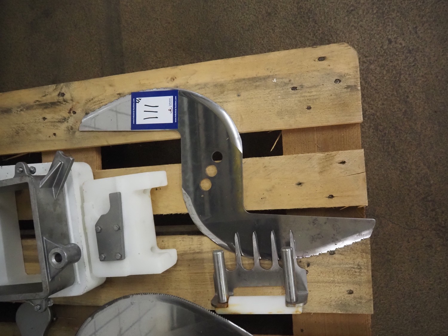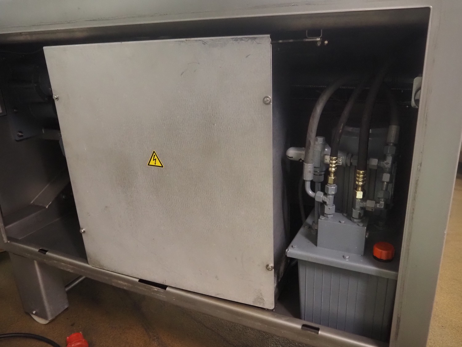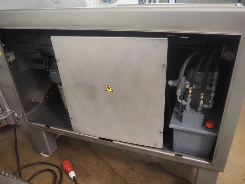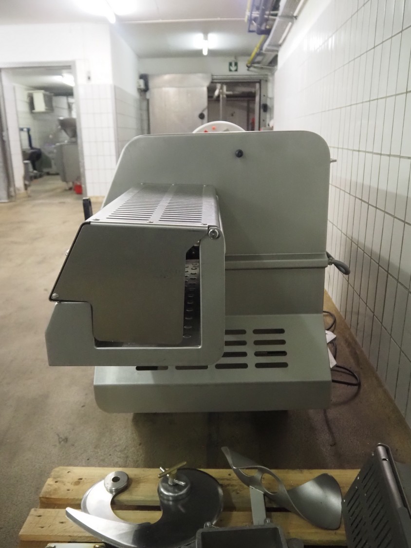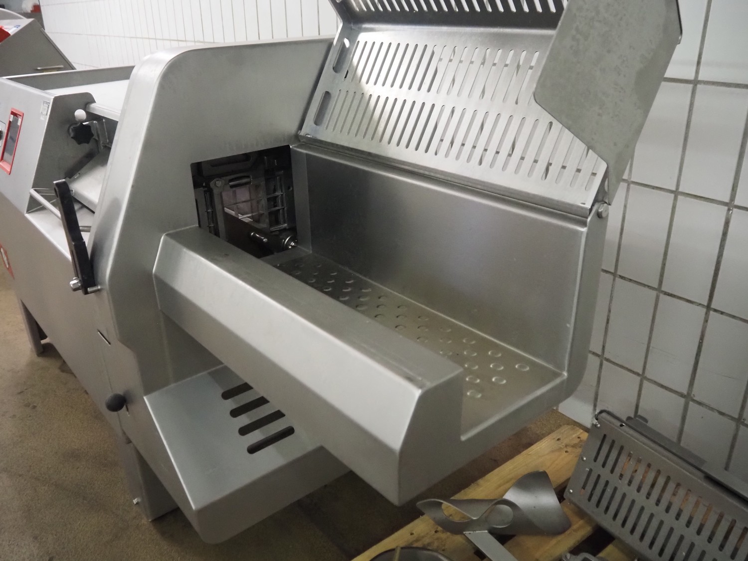Treif Maschinenbau GmbH mobile dicer, model: HUSKY E, machine number: 471001.70021.101366, year of construction: 2006, 380/480 V, 3 Ph, 50/60 Hz, 16 A, 2 kW, weight: 389 kg, dimensions chamber: 95 mm x 95 mm, total dimensions: 2260 mm x 850 mm x 1200 mm. Including pallet with parts.