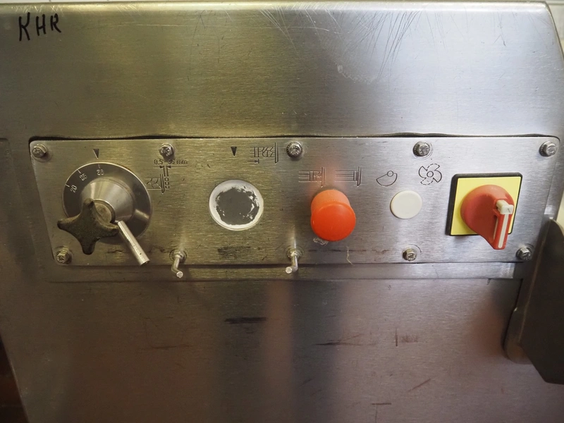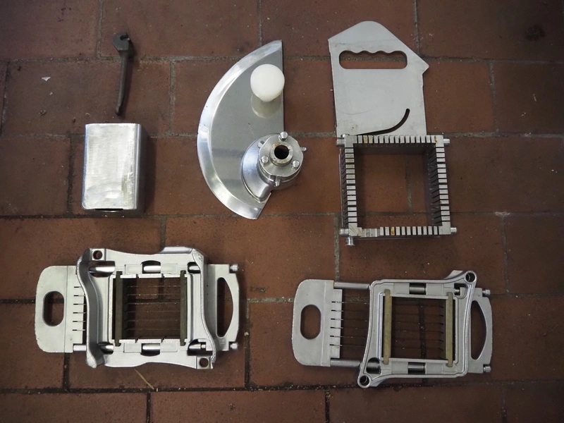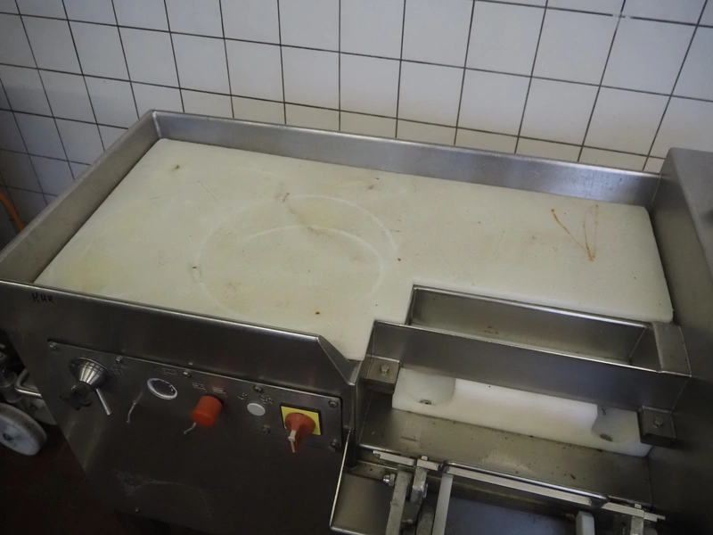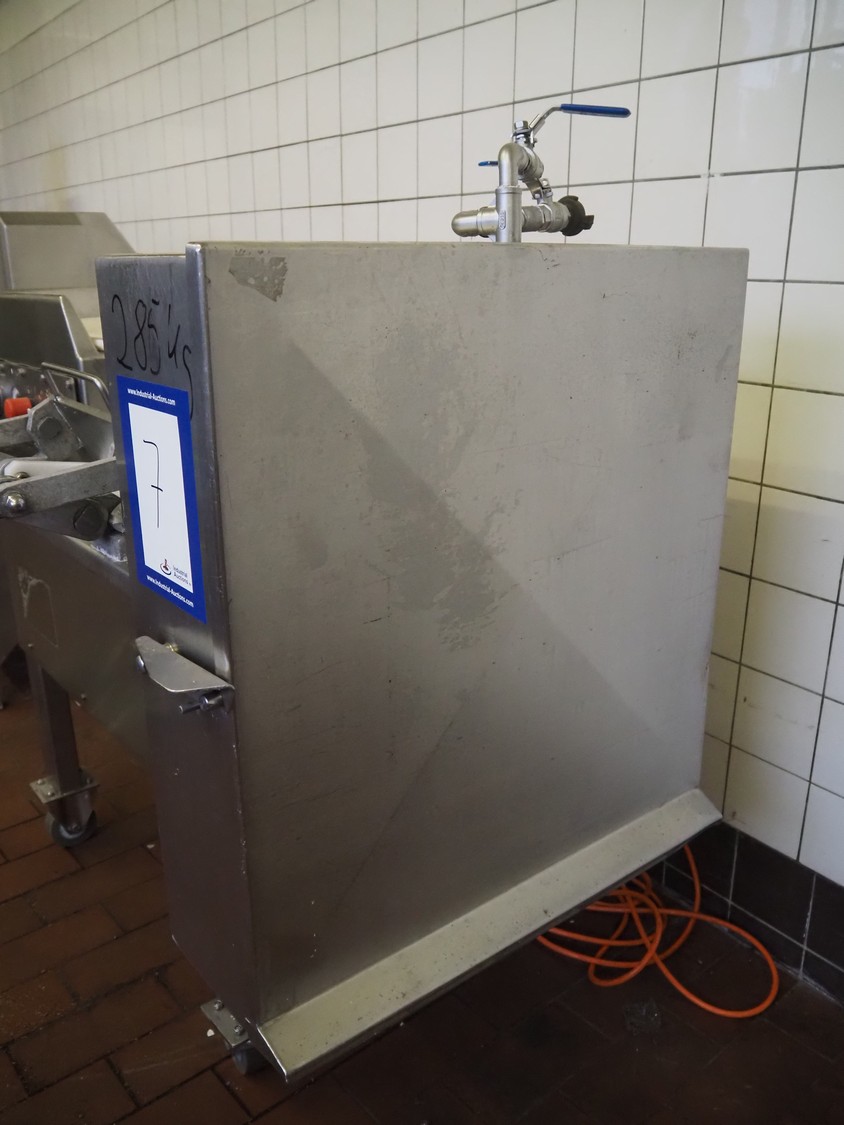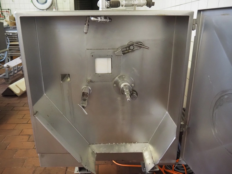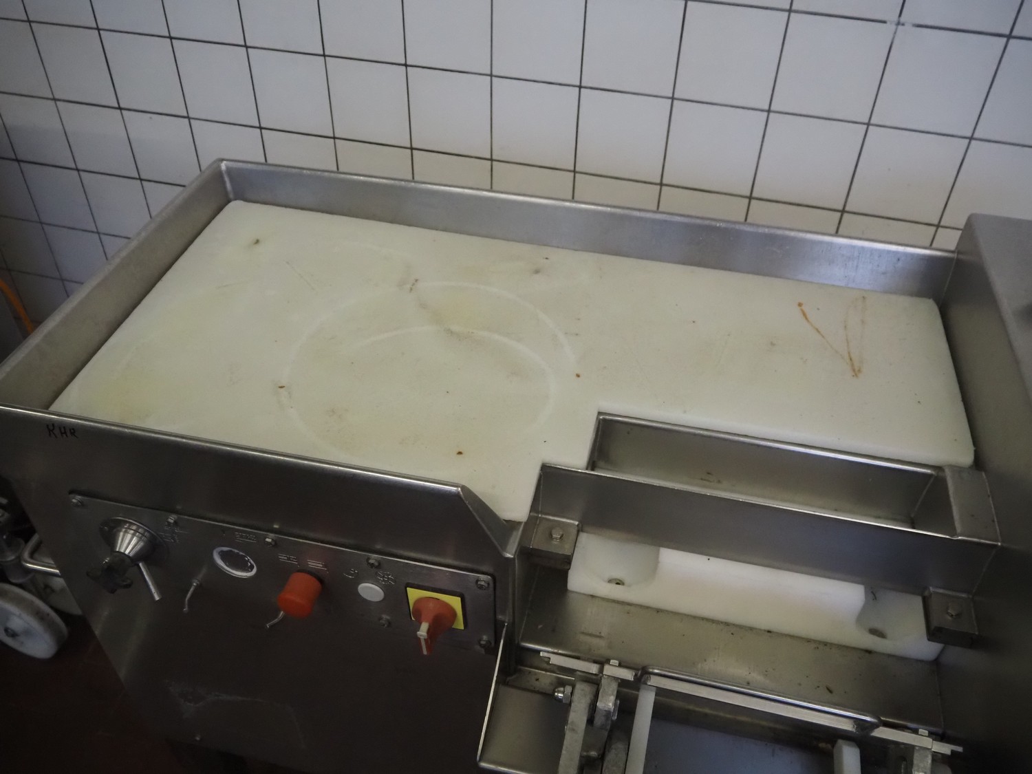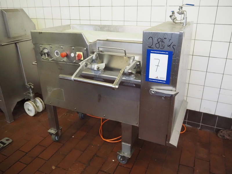 Treif Maschinenbau GmbH mobile dicer, type: 1520, machine number: 152002.68131.0829, year of construction: 1994, 220/380 V, 3 Ph, 50 Hz, 6/16 A, dimensions chamber: 85 mm x 85 mm, weight: 285 kg, total dimensions: 1300 mm x 700 mm x 1300 mm.