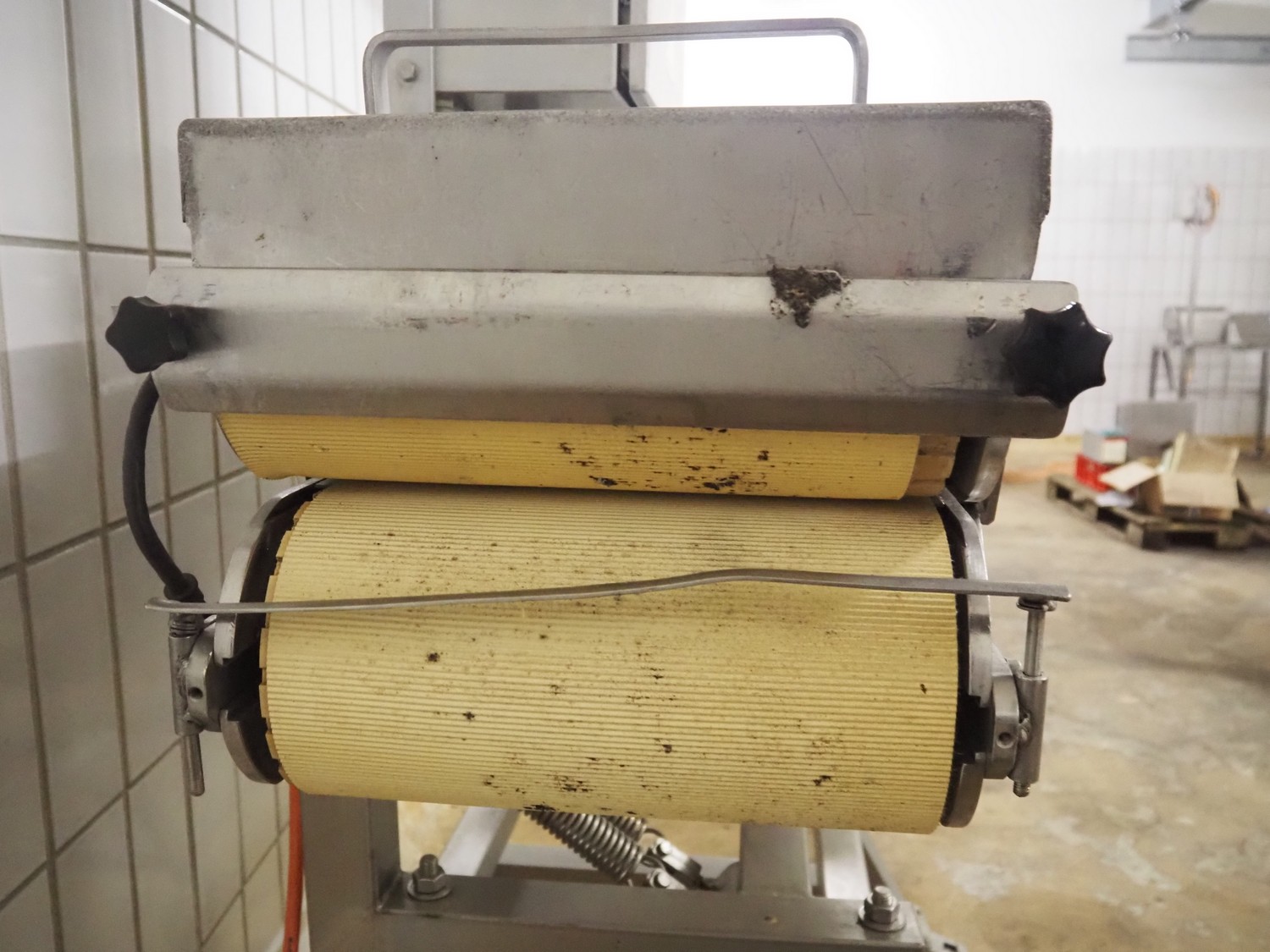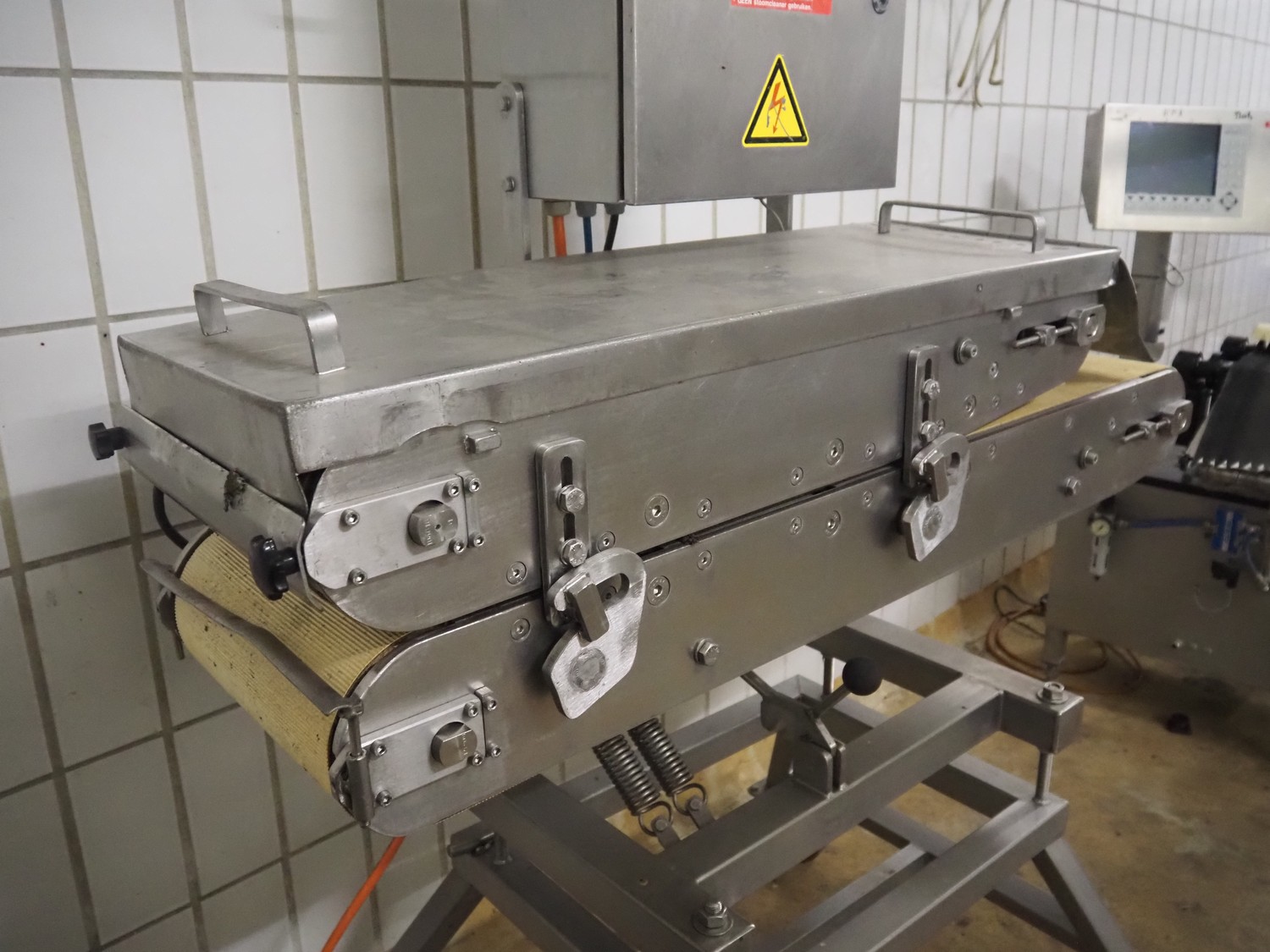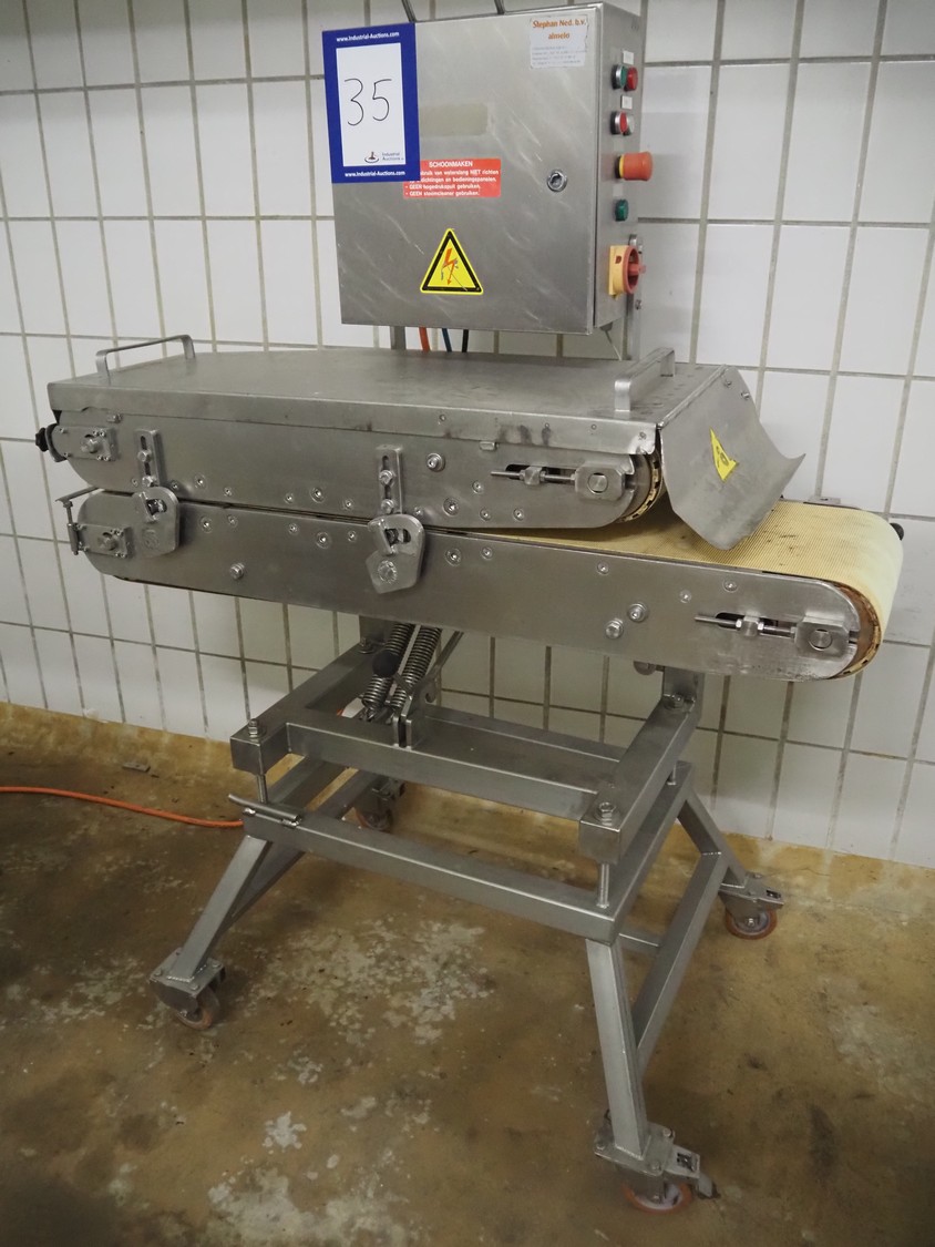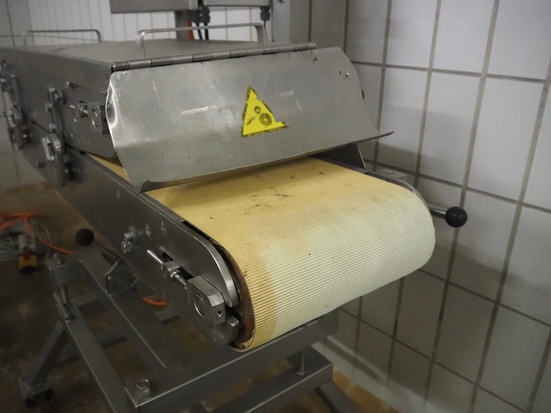 Stephan mobile flattener, type: SPL-29188, number: 96016, 380 V, 50 Hz, plastic belt, belt width: 300 mm, total dimensions: 1300 mm x 750 mm x 1660 mm.
