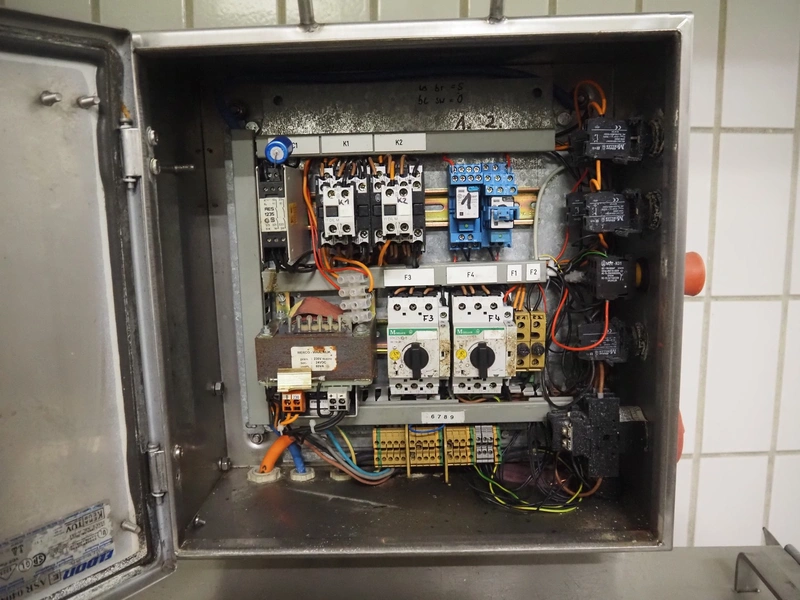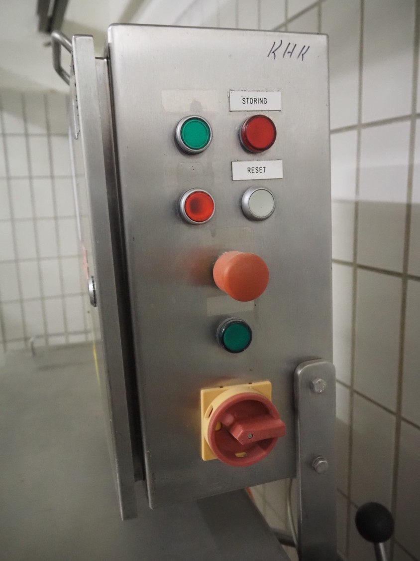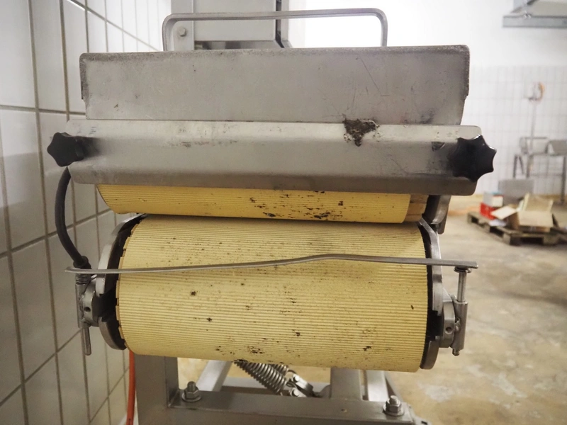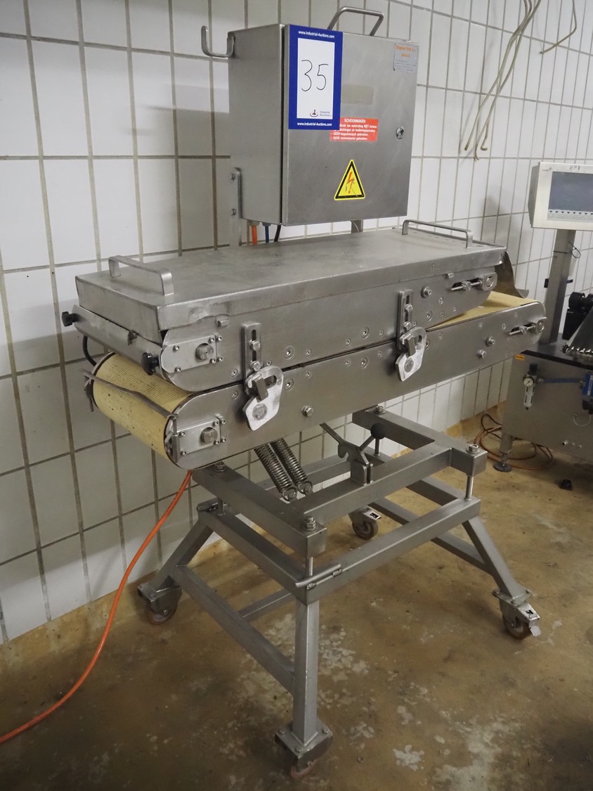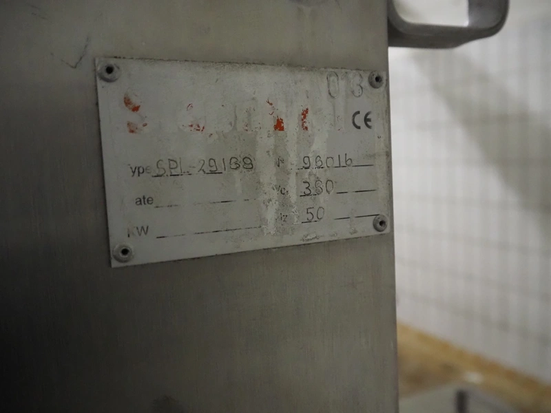 Stephan mobile flattener, type: SPL-29188, number: 96016, 380 V, 50 Hz, plastic belt, belt width: 300 mm, total dimensions: 1300 mm x 750 mm x 1660 mm.