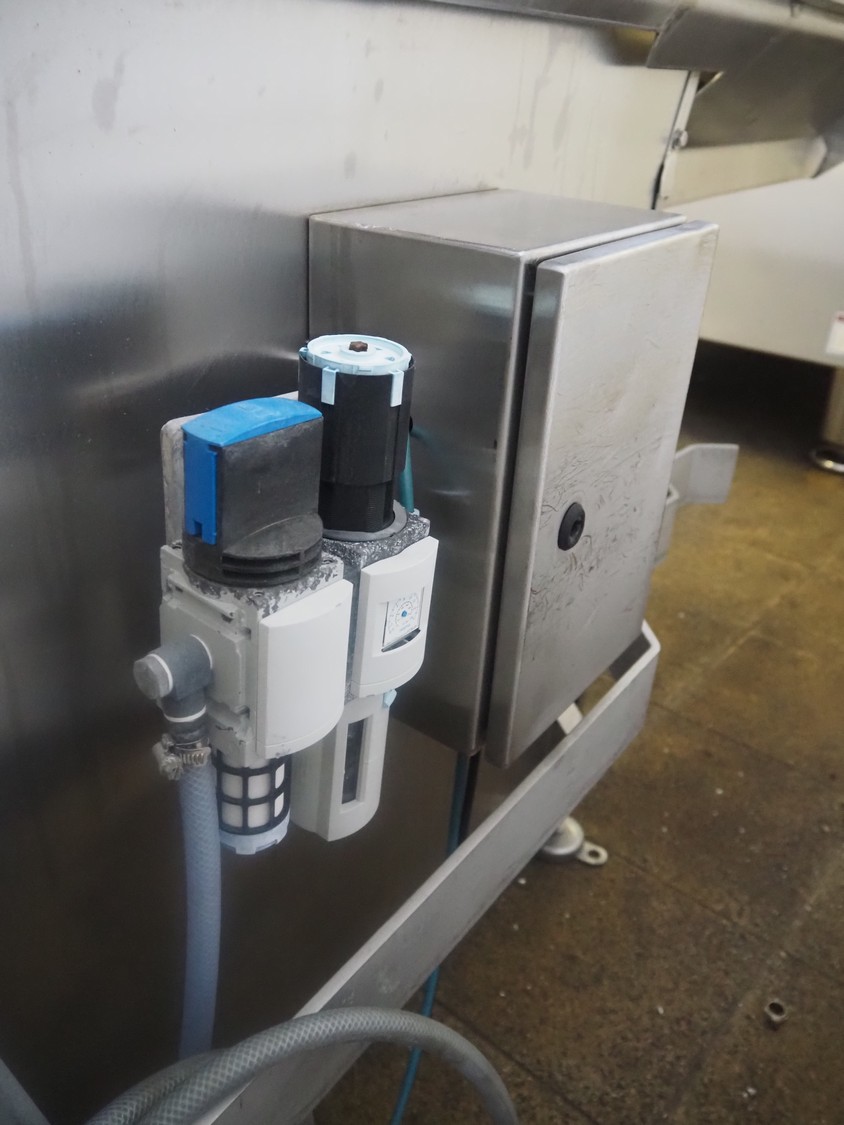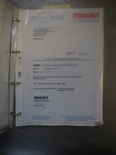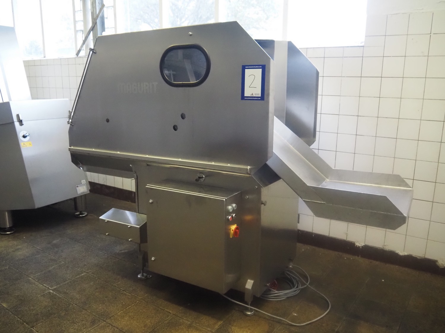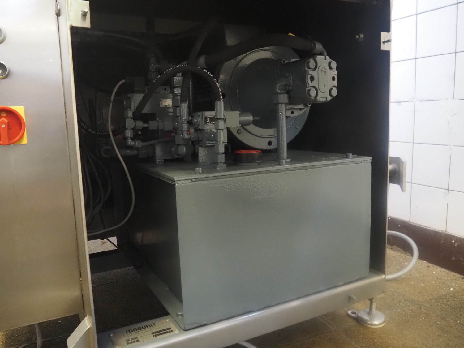 Magurit GmbH frozen block cutter, type: 053, machine number: 4138, year of construction: 1995, 380 V, 55 kW, working width: 500 mm, total dimensions: 2500 mm x 1050 mm x 1800 mm.